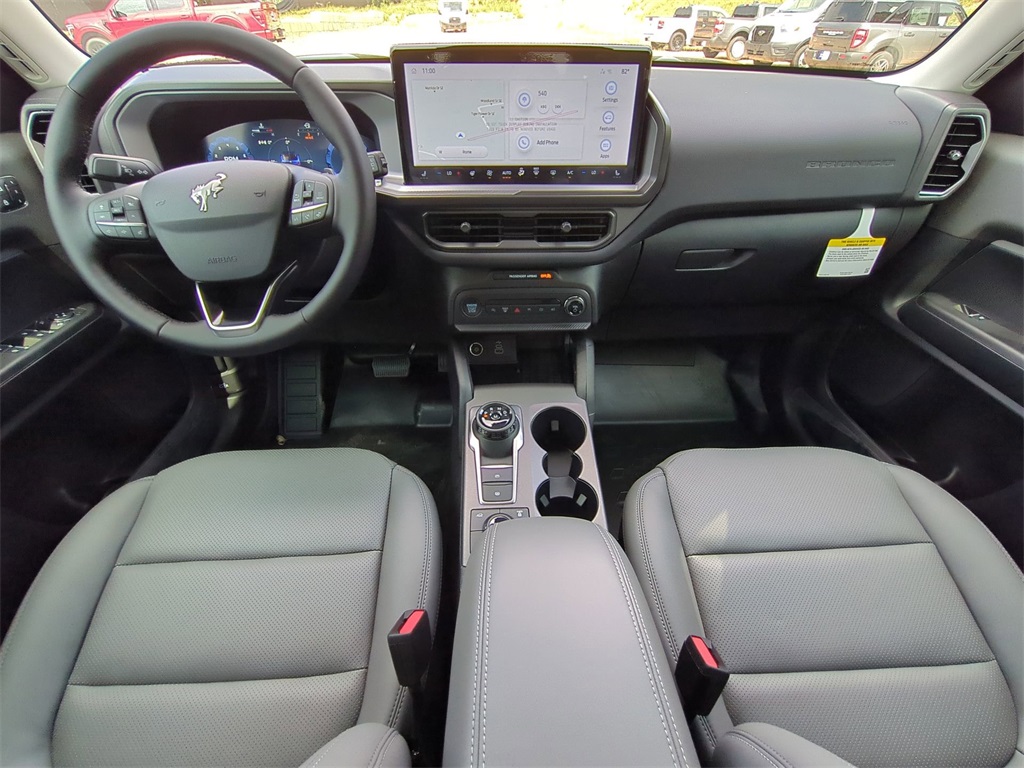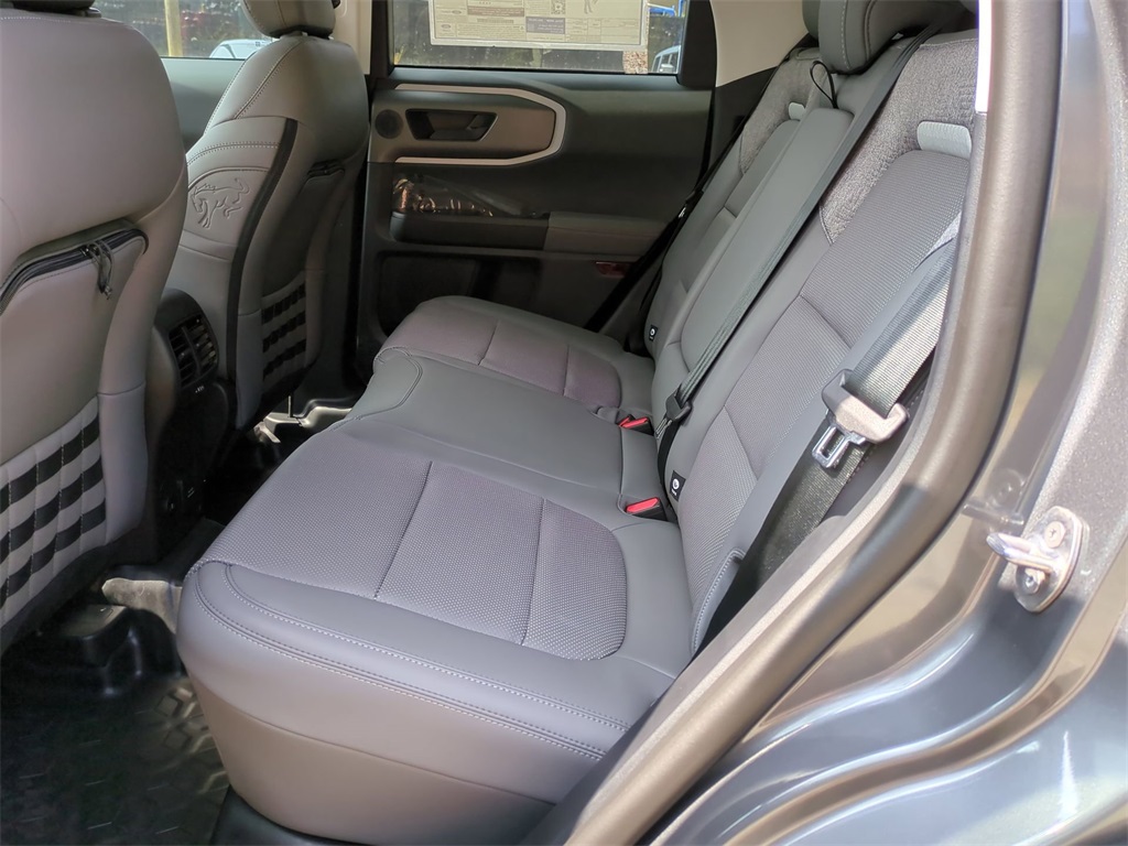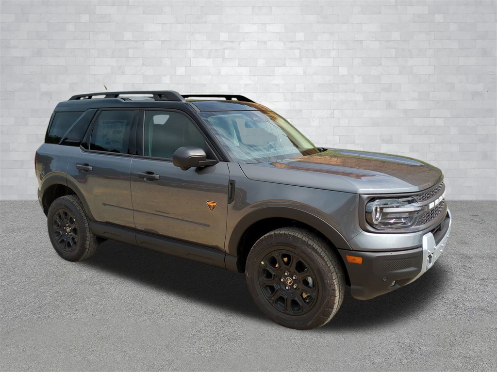 2025 Carbonized Gray Metallic 2025 Ford Bronco Sport Badlands 4WD EcoBoost 2.0L I4 GTDi DOHC Turbocharged VCT 13.2" LCD Centerstack Touchscreen, Auto LED Headlights, Backup Camera, Bluetooth w/ Audio Streaming, Leather Seats, LED Foglights, Remote Start, Sunroof/Moonroof, 4D Sport Utility, EcoBoost 2.0L I4 GTDi DOHC Turbocharged VCT, 8-Speed Automatic, 4WD, Equipment Group 400A. Equipment Group 400A, 4D Sport Utility, EcoBoost 2.0L I4 GTDi DOHC Turbocharged VCT, 8-Speed Automatic, 4WD, 4-Wheel Disc Brakes, 6 Speakers, ABS brakes, Air Conditioning, Alloy wheels, AM/FM radio: SiriusXM, AM/FM Stereo, Auto High-beam Headlights, Auto-dimming Rear-View mirror, Automatic temperature control, Brake assist, Compass, Delay-off headlights, Driver door bin, Driver vanity mirror, Dual front impact airbags, Dual front side impact airbags, Electronic Stability Control, Emergency communication system: SYNC 4 911 Assist, Four wheel independent suspension, Front anti-roll bar, Front Bucket Seats, Front Center Armrest, Front fog lights, Front reading lights, Fully automatic headlights, Garage door transmitter, Heated door mirrors, Heated front seats, Heated steering wheel, Illuminated entry, Knee airbag, Leather Trimmed Front Bucket Seats, Low tire pressure warning, Memory seat, Occupant sensing airbag, Outside temperature display, Overhead airbag, Overhead console, Panic alarm, Passenger door bin, Passenger vanity mirror, Power door mirrors, Power driver seat, Power passenger seat, Power steering, Power windows, Radio data system, Rear anti-roll bar, Rear reading lights, Rear seat center armrest, Rear window defroster, Rear window wiper, Remote keyless entry, Security system, SiriusXM, Speed control, Speed-sensing steering, Speed-Sensitive Wipers, Split folding rear seat, Steering wheel mounted audio controls, SYNC 4 w/Enhanced Voice Recognition, Tachometer, Telescoping steering wheel, Tilt steering wheel, Traction control, Trip computer, Variably intermittent wipers, and Wheels: 17" Matte Black-Painted Aluminum Courtesy Ford and Lincoln of Rome 101 Hwy 411 E Rome, Ga 30161 ROMEFORDLINC.COM 706.235.4453.