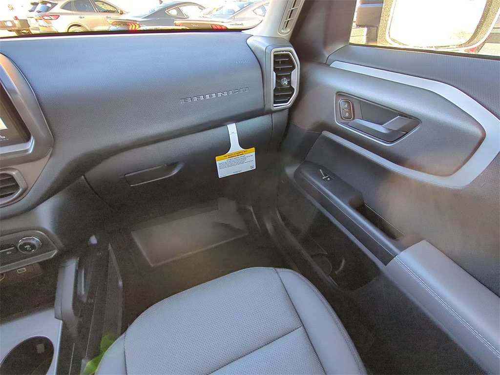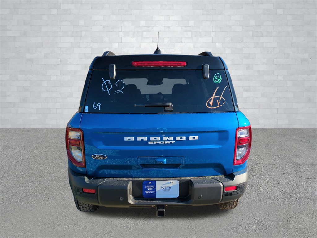 2025 Velocity Blue Metallic 2025 Ford Bronco Sport Badlands 4WD EcoBoost 2.0L I4 GTDi DOHC Turbocharged VCT 4-Wheel Disc Brakes, 6 Speakers, ABS brakes, Air Conditioning, Alloy wheels, AM/FM radio: SiriusXM, AM/FM Stereo, Auto High-beam Headlights, Auto-dimming Rear-View mirror, Automatic temperature control, Brake assist, Compass, Delay-off headlights, Driver door bin, Driver vanity mirror, Dual front impact airbags, Dual front side impact airbags, Electronic Stability Control, Emergency communication system: SYNC 4 911 Assist, Four wheel independent suspension, Front anti-roll bar, Front Bucket Seats, Front Center Armrest, Front fog lights, Front reading lights, Fully automatic headlights, Garage door transmitter, Heated door mirrors, Heated front seats, Heated steering wheel, Illuminated entry, Knee airbag, Leather Trimmed Front Bucket Seats, Low tire pressure warning, Memory seat, Occupant sensing airbag, Outside temperature display, Overhead airbag, Overhead console, Panic alarm, Passenger door bin, Passenger vanity mirror, Power door mirrors, Power driver seat, Power passenger seat, Power steering, Power windows, Radio data system, Rear anti-roll bar, Rear reading lights, Rear seat center armrest, Rear window defroster, Rear window wiper, Remote keyless entry, Security system, SiriusXM, Speed control, Speed-sensing steering, Speed-Sensitive Wipers, Split folding rear seat, Steering wheel mounted audio controls, SYNC 4 w/Enhanced Voice Recognition, Tachometer, Telescoping steering wheel, Tilt steering wheel, Traction control, Trip computer, Variably intermittent wipers, and Wheels: 17" Matte Black-Painted Aluminum Courtesy Ford and Lincoln of Rome 101 Hwy 411 E Rome, Ga 30161 ROMEFORDLINC.COM 706.235.4453.