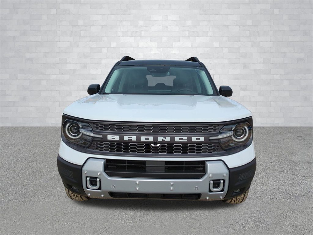 2025 Oxford White 2025 Ford Bronco Sport Badlands 4WD EcoBoost 2.0L I4 GTDi DOHC Turbocharged VCT 4-Wheel Disc Brakes, 6 Speakers, ABS brakes, Air Conditioning, Alloy wheels, AM/FM radio: SiriusXM, AM/FM Stereo, Auto High-beam Headlights, Auto-dimming Rear-View mirror, Automatic temperature control, Brake assist, Compass, Delay-off headlights, Driver door bin, Driver vanity mirror, Dual front impact airbags, Dual front side impact airbags, Electronic Stability Control, Emergency communication system: SYNC 4 911 Assist, Four wheel independent suspension, Front anti-roll bar, Front Bucket Seats, Front Center Armrest, Front fog lights, Front reading lights, Fully automatic headlights, Garage door transmitter, Heated door mirrors, Heated front seats, Heated steering wheel, Illuminated entry, Knee airbag, Leather Trimmed Front Bucket Seats, Low tire pressure warning, Memory seat, Occupant sensing airbag, Outside temperature display, Overhead airbag, Overhead console, Panic alarm, Passenger door bin, Passenger vanity mirror, Power door mirrors, Power driver seat, Power passenger seat, Power steering, Power windows, Radio data system, Rear anti-roll bar, Rear reading lights, Rear seat center armrest, Rear window defroster, Rear window wiper, Remote keyless entry, Security system, SiriusXM, Speed control, Speed-sensing steering, Speed-Sensitive Wipers, Split folding rear seat, Steering wheel mounted audio controls, SYNC 4 w/Enhanced Voice Recognition, Tachometer, Telescoping steering wheel, Tilt steering wheel, Traction control, Trip computer, Variably intermittent wipers, and Wheels: 17" Matte Black-Painted Aluminum Courtesy Ford and Lincoln of Rome 101 Hwy 411 E Rome, Ga 30161 ROMEFORDLINC.COM 706.235.4453.