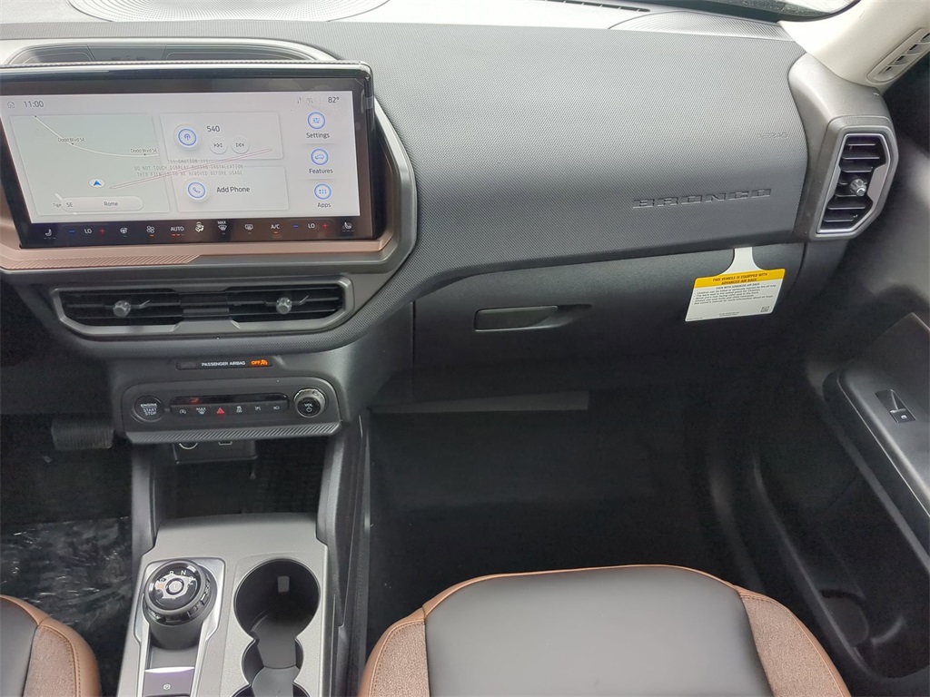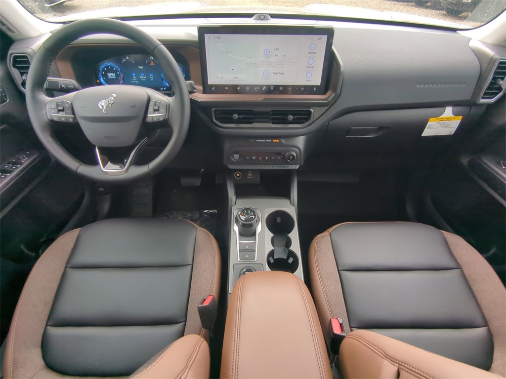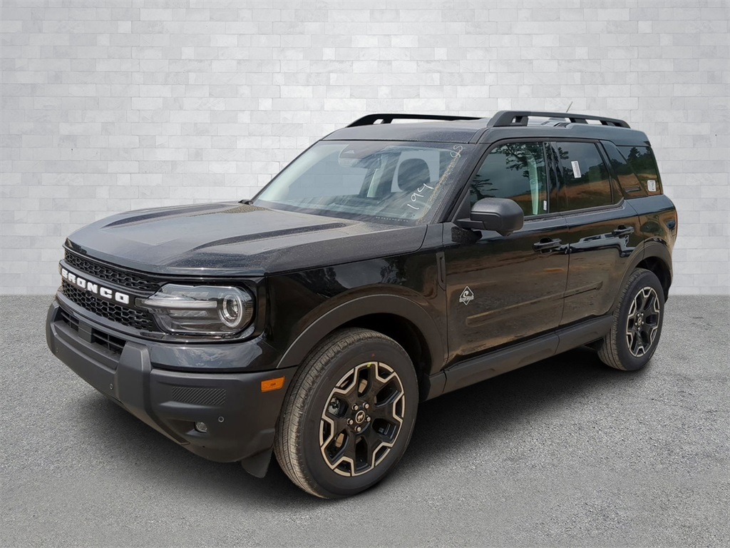 2025 Shadow Black 2025 Ford Bronco Sport Outer Banks 4WD 1.5L EcoBoost Auto LED Headlights, Backup Camera, LED Foglights, Navigation System, Push Button Start, Remote Start, 4D Sport Utility, 1.5L EcoBoost, 8-Speed Automatic, 4WD, B&O Sound System by Bang & Olufsen, Connected Navigation, Equipment Group 300A, HD Radio, Outer Banks Tech Package+. Equipment Group 300A, Outer Banks Tech Package+ (B&O Sound System by Bang & Olufsen, Connected Navigation, and HD Radio), 4D Sport Utility, 1.5L EcoBoost, 8-Speed Automatic, 4WD, 4-Wheel Disc Brakes, 6 Speakers, ABS brakes, Air Conditioning, Alloy wheels, AM/FM radio: SiriusXM, AM/FM Stereo, Auto High-beam Headlights, Auto-dimming Rear-View mirror, Automatic temperature control, Brake assist, Compass, Delay-off headlights, Driver door bin, Driver vanity mirror, Dual front impact airbags, Dual front side impact airbags, Electronic Stability Control, Emergency communication system: SYNC 4 911 Assist, Four wheel independent suspension, Front anti-roll bar, Front Bucket Seats, Front Center Armrest, Front Driver/Passenger Seat Back Map Pockets, Front dual zone A/C, Front fog lights, Front reading lights, Fully automatic headlights, Garage door transmitter, Heated door mirrors, Heated front seats, Heated steering wheel, Illuminated entry, Knee airbag, Low tire pressure warning, Memory seat, Occupant sensing airbag, Outside temperature display, Overhead airbag, Overhead console, Panic alarm, Passenger door bin, Passenger vanity mirror, Power door mirrors, Power driver seat, Power passenger seat, Power steering, Power windows, Premium Trimmed Front Bucket Seats w/Ebony/Roast, Radio data system, Rain sensing wipers, Rear anti-roll bar, Rear Parking Sensors, Rear reading lights, Rear seat center armrest, Rear window defroster, Rear window wiper, Remote keyless entry, Security system, SiriusXM, Speed control, Speed-sensing steering, Speed-Sensitive Wipers, Split folding rear seat, Steering wheel mounted audio controls, SYNC 4 w/Enhanced Voice Recognition, Tachometer, Telescoping steering wheel, Tilt steering wheel, Traction control, Trip computer, Variably intermittent wipers, and Wheels: 18" Ebony Black-Painted Aluminum Courtesy Ford and Lincoln of Rome 101 Hwy 411 E Rome, Ga 30161 ROMEFORDLINC.COM 706.235.4453.