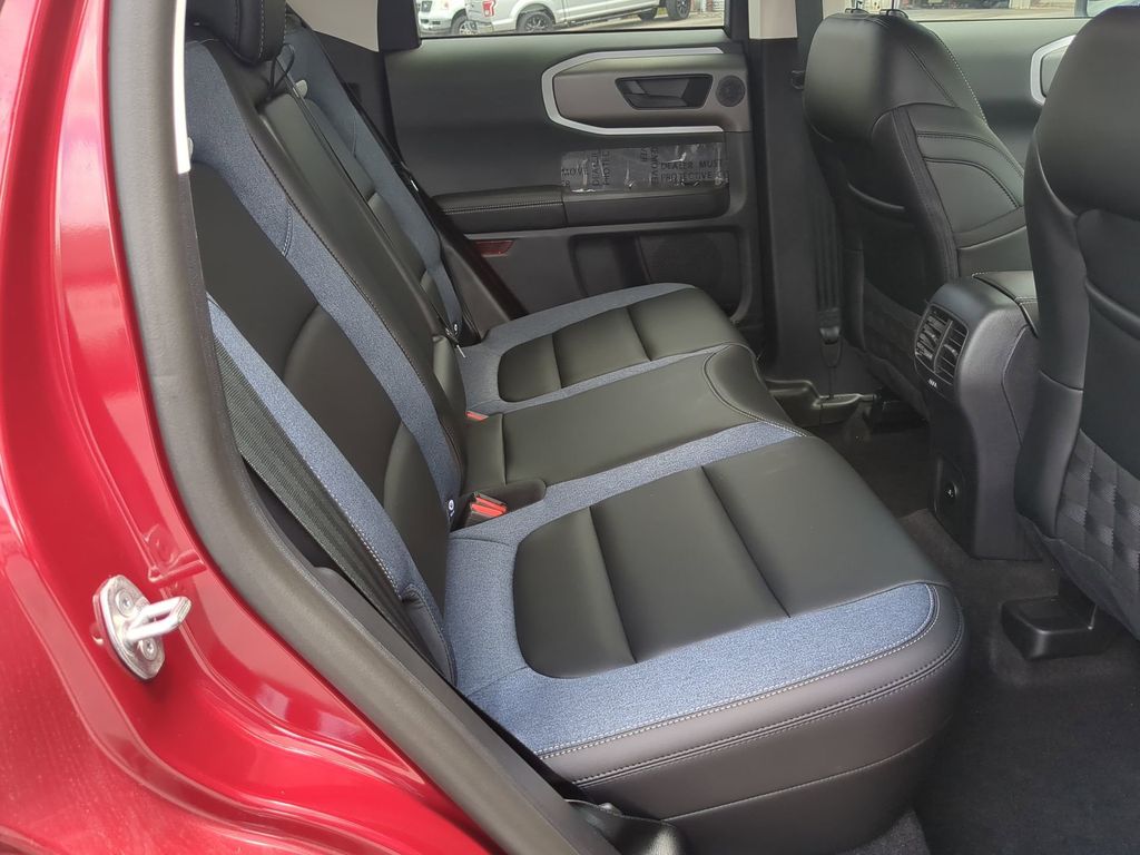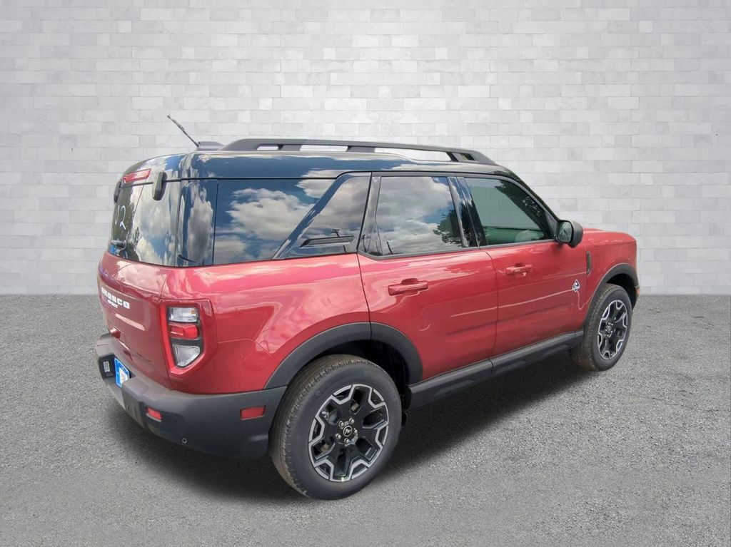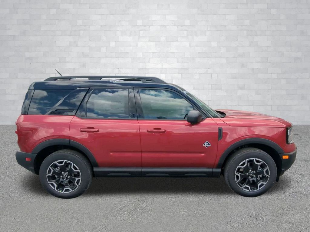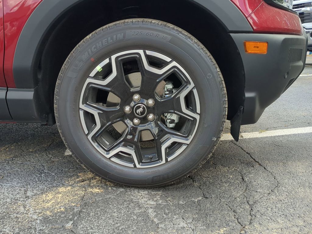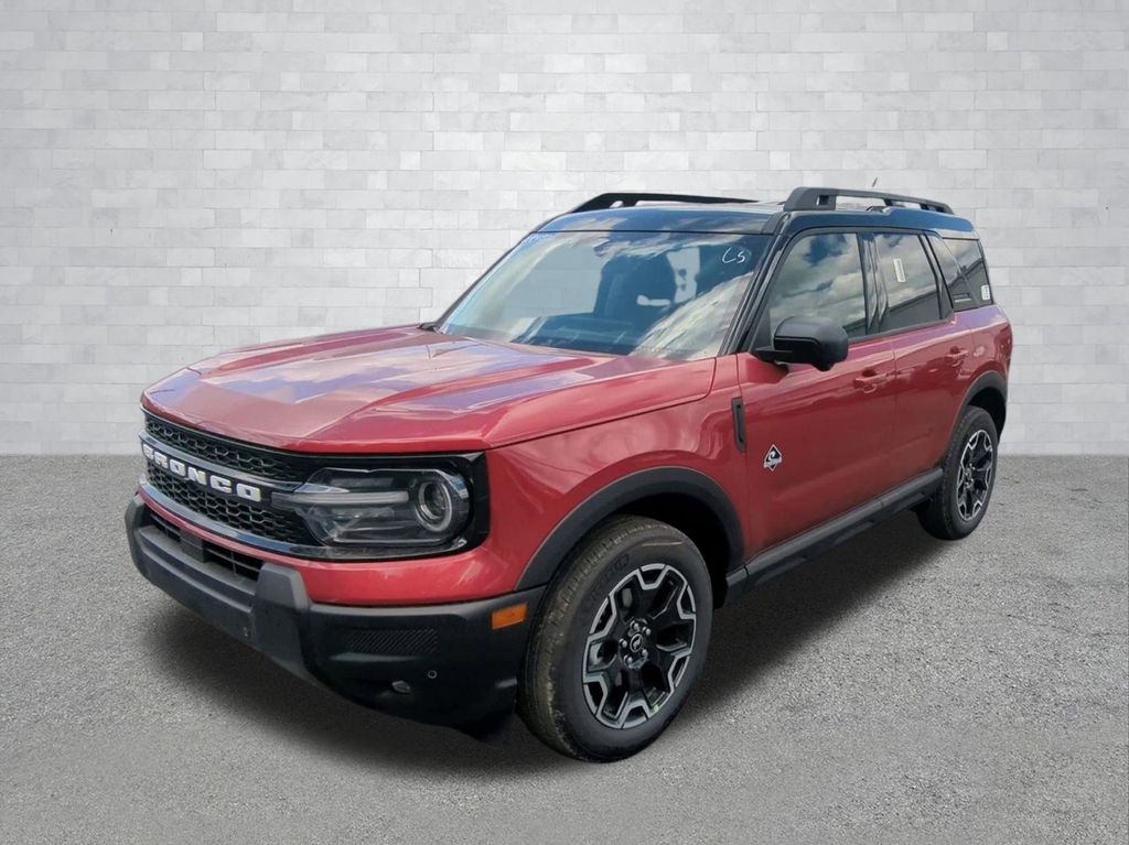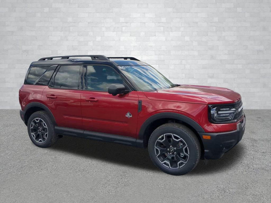 2025 Ruby Red Metallic Tinted Clearcoat 2025 Ford Bronco Sport Outer Banks 4WD 1.5L EcoBoost 13.2" LCD Centerstack Touchscreen, Auto LED Headlights, Backup Camera, Premium Sound Package, Push Button Start, Remote Start, 4D Sport Utility, 1.5L EcoBoost, 8-Speed Automatic, 4WD, B&O Sound System by Bang & Olufsen, Connected Navigation, Equipment Group 300A, HD Radio, Outer Banks Tech Package+. Equipment Group 300A, Outer Banks Tech Package+ (B&O Sound System by Bang & Olufsen, Connected Navigation, and HD Radio), 4D Sport Utility, 1.5L EcoBoost, 8-Speed Automatic, 4WD, 4-Wheel Disc Brakes, 6 Speakers, ABS brakes, Air Conditioning, Alloy wheels, AM/FM radio: SiriusXM, AM/FM Stereo, Auto High-beam Headlights, Auto-dimming Rear-View mirror, Automatic temperature control, Brake assist, Compass, Delay-off headlights, Driver door bin, Driver vanity mirror, Dual front impact airbags, Dual front side impact airbags, Electronic Stability Control, Emergency communication system: SYNC 4 911 Assist, Four wheel independent suspension, Front anti-roll bar, Front Bucket Seats, Front Center Armrest, Front Driver/Passenger Seat Back Map Pockets, Front dual zone A/C, Front fog lights, Front reading lights, Fully automatic headlights, Garage door transmitter, Heated door mirrors, Heated front seats, Heated steering wheel, Illuminated entry, Knee airbag, Low tire pressure warning, Memory seat, Occupant sensing airbag, Outside temperature display, Overhead airbag, Overhead console, Panic alarm, Passenger door bin, Passenger vanity mirror, Power door mirrors, Power driver seat, Power passenger seat, Power steering, Power windows, Premium Trimmed Front Bucket Seats w/Ebony/Roast, Radio data system, Rain sensing wipers, Rear anti-roll bar, Rear Parking Sensors, Rear reading lights, Rear seat center armrest, Rear window defroster, Rear window wiper, Remote keyless entry, Security system, SiriusXM, Speed control, Speed-sensing steering, Speed-Sensitive Wipers, Split folding rear seat, Steering wheel mounted audio controls, SYNC 4 w/Enhanced Voice Recognition, Tachometer, Telescoping steering wheel, Tilt steering wheel, Traction control, Trip computer, Variably intermittent wipers, and Wheels: 18" Ebony Black-Painted Aluminum Courtesy Ford and Lincoln of Rome 101 Hwy 411 E Rome, Ga 30161 ROMEFORDLINC.COM 706.235.4453.