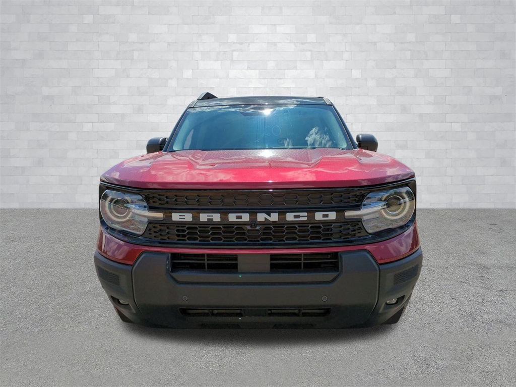 2025 Ruby Red Metallic Tinted Clearcoat 2025 Ford Bronco Sport Outer Banks 4WD 1.5L EcoBoost Equipment Group 300A, Outer Banks Tech Package+ (B&O Sound System by Bang & Olufsen, Connected Navigation, and HD Radio), 360-Degree Camera w/Trail & Split View, 4-Wheel Disc Brakes, 6 Speakers, ABS brakes, Air Conditioning, Alloy wheels, AM/FM radio: SiriusXM, AM/FM Stereo, Auto High-beam Headlights, Auto-dimming Rear-View mirror, Automatic temperature control, Brake assist, Compass, Delay-off headlights, Driver door bin, Driver vanity mirror, Dual front impact airbags, Dual front side impact airbags, Electronic Stability Control, Emergency communication system: SYNC 4 911 Assist, Four wheel independent suspension, Front anti-roll bar, Front Bucket Seats, Front Center Armrest, Front Driver/Passenger Seat Back Map Pockets, Front dual zone A/C, Front fog lights, Front Parking Sensors, Front reading lights, Fully automatic headlights, Garage door transmitter, Heated door mirrors, Heated front seats, Heated steering wheel, Illuminated entry, Knee airbag, Low tire pressure warning, Memory seat, Occupant sensing airbag, Outside temperature display, Overhead airbag, Overhead console, Panic alarm, Passenger door bin, Passenger vanity mirror, Power door mirrors, Power driver seat, Power passenger seat, Power steering, Power windows, Premium Trimmed Front Bucket Seats w/Ebony/Roast, Radio data system, Rain sensing wipers, Rear anti-roll bar, Rear Parking Sensors, Rear reading lights, Rear seat center armrest, Rear window defroster, Rear window wiper, Remote keyless entry, Reverse Brake Assist, Security system, SiriusXM, Speed control, Speed-sensing steering, Speed-Sensitive Wipers, Split folding rear seat, Steering wheel mounted audio controls, SYNC 4 w/Enhanced Voice Recognition, Tachometer, Telescoping steering wheel, Tilt steering wheel, Traction control, Trip computer, Variably intermittent wipers, and Wheels: 18" Ebony Black-Painted Aluminum Courtesy Ford and Lincoln of Rome 101 Hwy 411 E Rome, Ga 30161 ROMEFORDLINC.COM 706.235.4453.