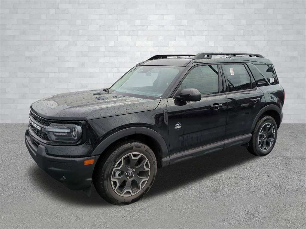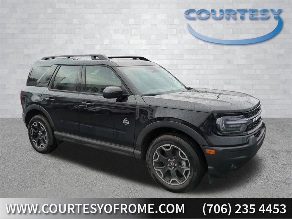 2025 Shadow Black 2025 Ford Bronco Sport Outer Banks 4WD 1.5L EcoBoost Equipment Group 300A, 4-Wheel Disc Brakes, 6 Speakers, ABS brakes, Air Conditioning, Alloy wheels, AM/FM radio: SiriusXM, AM/FM Stereo, Auto High-beam Headlights, Auto-dimming Rear-View mirror, Automatic temperature control, Brake assist, Compass, Delay-off headlights, Driver door bin, Driver vanity mirror, Dual front impact airbags, Dual front side impact airbags, Electronic Stability Control, Emergency communication system: SYNC 4 911 Assist, Four wheel independent suspension, Front anti-roll bar, Front Bucket Seats, Front Center Armrest, Front Driver/Passenger Seat Back Map Pockets, Front dual zone A/C, Front fog lights, Front reading lights, Fully automatic headlights, Garage door transmitter, Heated door mirrors, Heated front seats, Heated steering wheel, Illuminated entry, Knee airbag, Low tire pressure warning, Memory seat, Occupant sensing airbag, Outside temperature display, Overhead airbag, Overhead console, Panic alarm, Passenger door bin, Passenger vanity mirror, Power door mirrors, Power driver seat, Power passenger seat, Power steering, Power windows, Premium Trimmed Front Bucket Seats w/Ebony/Roast, Radio data system, Rain sensing wipers, Rear anti-roll bar, Rear Parking Sensors, Rear reading lights, Rear seat center armrest, Rear window defroster, Rear window wiper, Remote keyless entry, Security system, SiriusXM, Speed control, Speed-sensing steering, Speed-Sensitive Wipers, Split folding rear seat, Steering wheel mounted audio controls, SYNC 4 w/Enhanced Voice Recognition, Tachometer, Telescoping steering wheel, Tilt steering wheel, Traction control, Trip computer, Variably intermittent wipers, and Wheels: 18" Ebony Black-Painted Aluminum Courtesy Ford and Lincoln of Rome 101 Hwy 411 E Rome, Ga 30161 ROMEFORDLINC.COM 706.235.4453.
