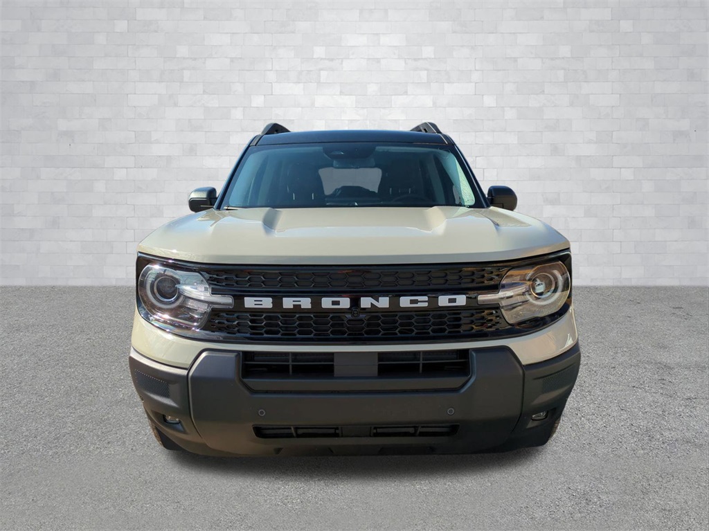 2025 Desert Sand 2025 Ford Bronco Sport Outer Banks 4WD 1.5L EcoBoost Equipment Group 300A, Outer Banks Tech Package+ (B&O Sound System by Bang & Olufsen, Connected Navigation, and HD Radio), 360-Degree Camera w/Trail & Split View, 4-Wheel Disc Brakes, 6 Speakers, ABS brakes, Air Conditioning, Alloy wheels, AM/FM radio: SiriusXM, AM/FM Stereo, Auto High-beam Headlights, Auto-dimming Rear-View mirror, Automatic temperature control, Brake assist, Compass, Delay-off headlights, Driver door bin, Driver vanity mirror, Dual front impact airbags, Dual front side impact airbags, Electronic Stability Control, Emergency communication system: SYNC 4 911 Assist, Four wheel independent suspension, Front anti-roll bar, Front Bucket Seats, Front Center Armrest, Front Driver/Passenger Seat Back Map Pockets, Front dual zone A/C, Front fog lights, Front License Plate Bracket, Front Parking Sensors, Front reading lights, Fully automatic headlights, Garage door transmitter, Heated door mirrors, Heated front seats, Heated steering wheel, Illuminated entry, Knee airbag, Low tire pressure warning, Memory seat, Occupant sensing airbag, Outside temperature display, Overhead airbag, Overhead console, Panic alarm, Passenger door bin, Passenger vanity mirror, Power door mirrors, Power driver seat, Power passenger seat, Power steering, Power windows, Premium Trimmed Front Bucket Seats w/Ebony/Roast, Radio data system, Rain sensing wipers, Rear anti-roll bar, Rear Parking Sensors, Rear reading lights, Rear seat center armrest, Rear window defroster, Rear window wiper, Remote keyless entry, Reverse Brake Assist, Security system, SiriusXM, Speed control, Speed-sensing steering, Speed-Sensitive Wipers, Split folding rear seat, Steering wheel mounted audio controls, SYNC 4 w/Enhanced Voice Recognition, Tachometer, Telescoping steering wheel, Tilt steering wheel, Traction control, Trip computer, Variably intermittent wipers, and Wheels: 18" Ebony Black-Painted Aluminum Courtesy Ford and Lincoln of Rome 101 Hwy 411 E Rome, Ga 30161 ROMEFORDLINC.COM 706.235.4453.