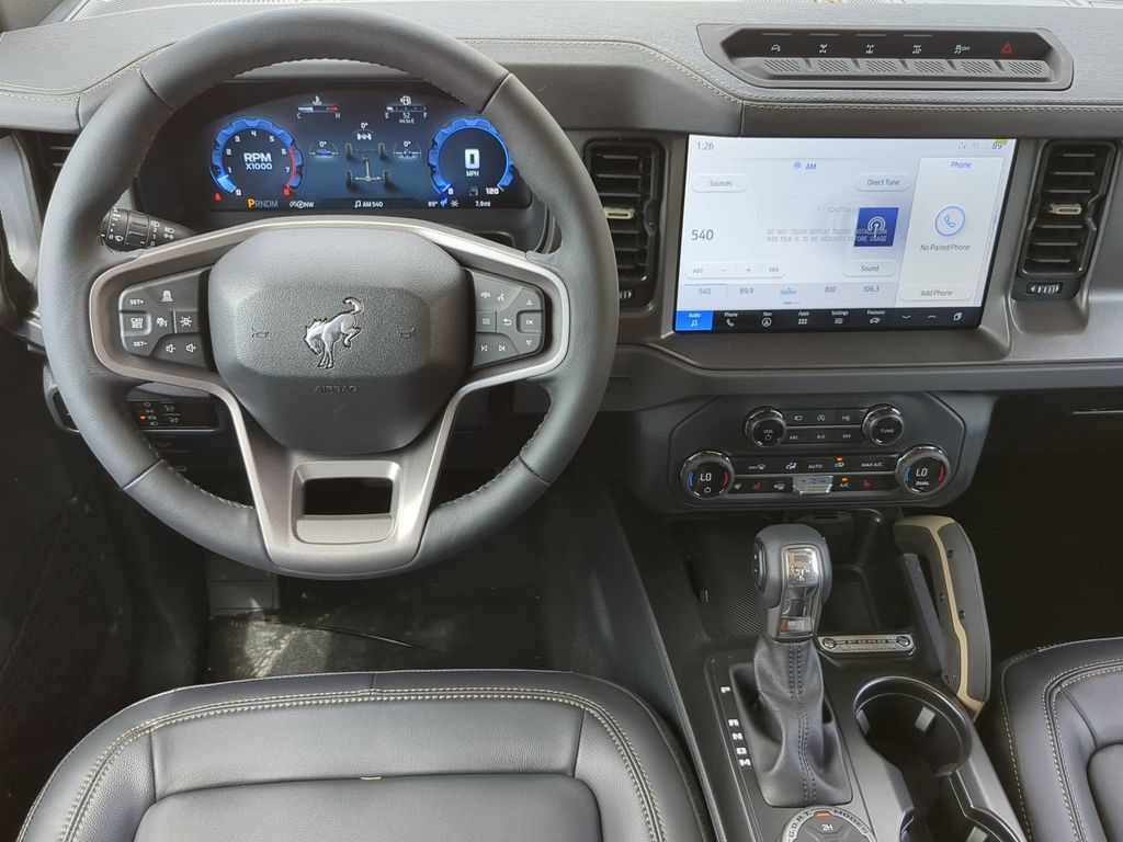 2025 Gray Metallic 2025 Ford Bronco Badlands 4WD 2.7L EcoBoost V6 12" LCD Productivity Touchscreen, 360-Degree Camera, Adaptive Cruise Control, Auto Emergency Braking, Auto LED Headlights, Backup Camera, Leather Seats, Luxury Package, Power Mirror Package, Power Package, Push Button Start, Remote Start, 4D Sport Utility, 2.7L EcoBoost V6, 10-Speed Automatic, 4WD, 360-Degree Camera, Adaptive Cruise Control, Black Appearance Package, Black Molded-In-Color Door Handles, Black Molded-In-Color Fender Flares, Black Molded-In-Color Sideview Mirror Caps, Black-Painted Molded-In-Color Grille, Equipment Group 334A Lux Package, Evasive Steering Assist, Front Parking Sensors, Information on Demand Panel, Radio: B&O Sound System by Bang & Olufsen, Sideview Mirrors, Trailer Tow Package (DIO), Universal Garage Door Opener. Black Appearance Package (Black Molded-In-Color Door Handles, Black Molded-In-Color Fender Flares, Black Molded-In-Color Sideview Mirror Caps, and Black-Painted Molded-In-Color Grille), Equipment Group 334A Lux Package (360-Degree Camera, Adaptive Cruise Control, Evasive Steering Assist, Front Parking Sensors, Information on Demand Panel, Radio: B&O Sound System by Bang & Olufsen, Sideview Mirrors, Universal Garage Door Opener, and Connected Navigation), Trailer Tow Package (DIO), 4D Sport Utility, 2.7L EcoBoost V6, 10-Speed Automatic, 4WD, 4-Wheel Disc Brakes, 4.7 Axle Ratio, 7 Speakers, ABS brakes, Air Conditioning, Alloy wheels, AM/FM radio: SiriusXM with 360L, AM/FM Stereo, Auto High-beam Headlights, Auto-dimming Rear-View mirror, Brake assist, Compass, Delay-off headlights, Driver door bin, Driver vanity mirror, Dual front impact airbags, Dual front side impact airbags, Electronic Stability Control, Emergency communication system: 911 Assist, Exterior Parking Camera Rear, Front anti-roll bar, Front Bucket Seats, Front Center Armrest, Front reading lights, Front wheel independent suspension, Fully automatic headlights, Heated door mirrors, Heated front seats, Heated steering wheel, Illuminated entry, Integrated roll-over protection, Leather Shift Knob, Low tire pressure warning, Marine Grade Vinyl Heated Bucket Seats, Occupant sensing airbag, Outside temperature display, Overhead airbag, Overhead console, Panic alarm, Passenger door bin, Passenger vanity mirror, Power door mirrors, Power steering, Power windows, Radio data system, Remote keyless entry, Security system, SiriusXM w/360L, Speed control, Split folding rear seat, Steering wheel mounted audio controls, SYNC 4, Tachometer, Telescoping steering wheel, Tilt steering wheel, Traction control, Trip computer, Variably intermittent wipers, and Voltmeter Courtesy Ford and Lincoln of Rome 101 Hwy 411 E Rome, Ga 30161 ROMEFORDLINC.COM 706.235.4453.