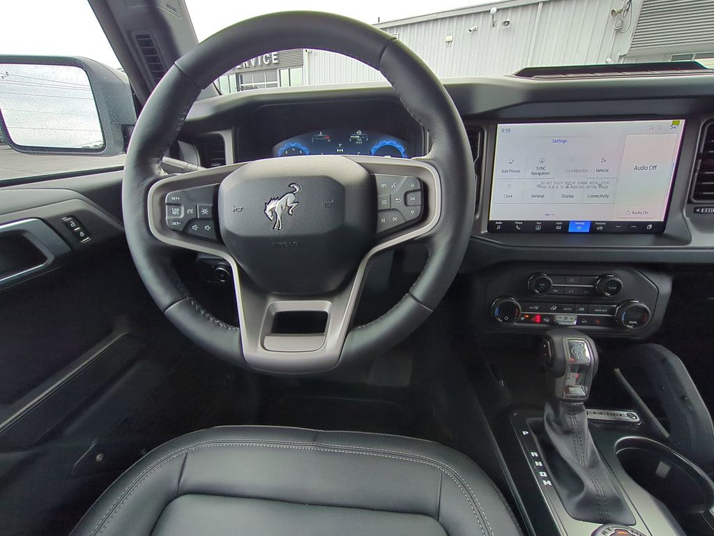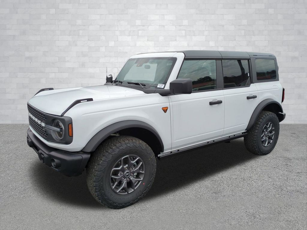 2025 Oxford White 2025 Ford Bronco Badlands 4WD 2.7L EcoBoost V6 Equipment Group 332A Mid Package (2-Door Intelligent Access w/Lock/Unlock, Ambient Footwell Lighting, Connected Navigation, Dr & Pass Illuminated Sliding Visor Vanity Mirrors, Dual Smart Charging USB Ports, Dual-Zone Electronic Automatic Temperature Control, Front Row Heated Seats, Power Outlet - Back Side of Center Floor Console, and Rear Parking Sensors), 4-Wheel Disc Brakes, 4.7 Axle Ratio, 7 Speakers, ABS brakes, Air Conditioning, Alloy wheels, AM/FM radio: SiriusXM with 360L, AM/FM Stereo, Auto High-Beam Headlamps, Auto High-beam Headlights, Auto-dimming Rear-View mirror, BLIS Blind Spot Information System, Brake assist, Carbonized Gray Molded-In-Color Hard Top, Compass, Delay-off headlights, Door Storage Bags, Driver door bin, Driver vanity mirror, Dual front impact airbags, Dual front side impact airbags, Electronic Stability Control, Emergency communication system: 911 Assist, Exterior Parking Camera Rear, Front anti-roll bar, Front Bucket Seats, Front Center Armrest, Front fog lights, Front License Plate Bracket, Front reading lights, Front wheel independent suspension, Fully automatic headlights, Heated door mirrors, Heated front seats, Heated steering wheel, Illuminated entry, Integrated roll-over protection, Internet access capable: FordPass Connect, Lane-Keeping System, Leather Shift Knob, Low tire pressure warning, Marine Grade Vinyl Heated Bucket Seats, Occupant sensing airbag, Outside temperature display, Overhead airbag, Overhead console, Panic alarm, Passenger door bin, Passenger vanity mirror, Power door mirrors, Power steering, Power windows, Pre-Collision Assist w/Automatic Emergency Braking, Radio data system, Rear-View Camera, Rear-Window Defroster & Washer, Remote keyless entry, Security system, SiriusXM w/360L, Speed control, Split folding rear seat, Steering wheel mounted audio controls, SYNC 4, Tachometer, Telescoping steering wheel, Tilt steering wheel, Traction control, Trip computer, Variably intermittent wipers, Voltmeter, and Wheels: 17" Carbonized Gray-Painted Aluminum Courtesy Ford and Lincoln of Rome 101 Hwy 411 E Rome, Ga 30161 ROMEFORDLINC.COM 706.235.4453.