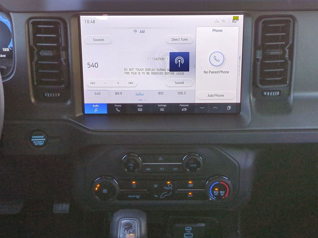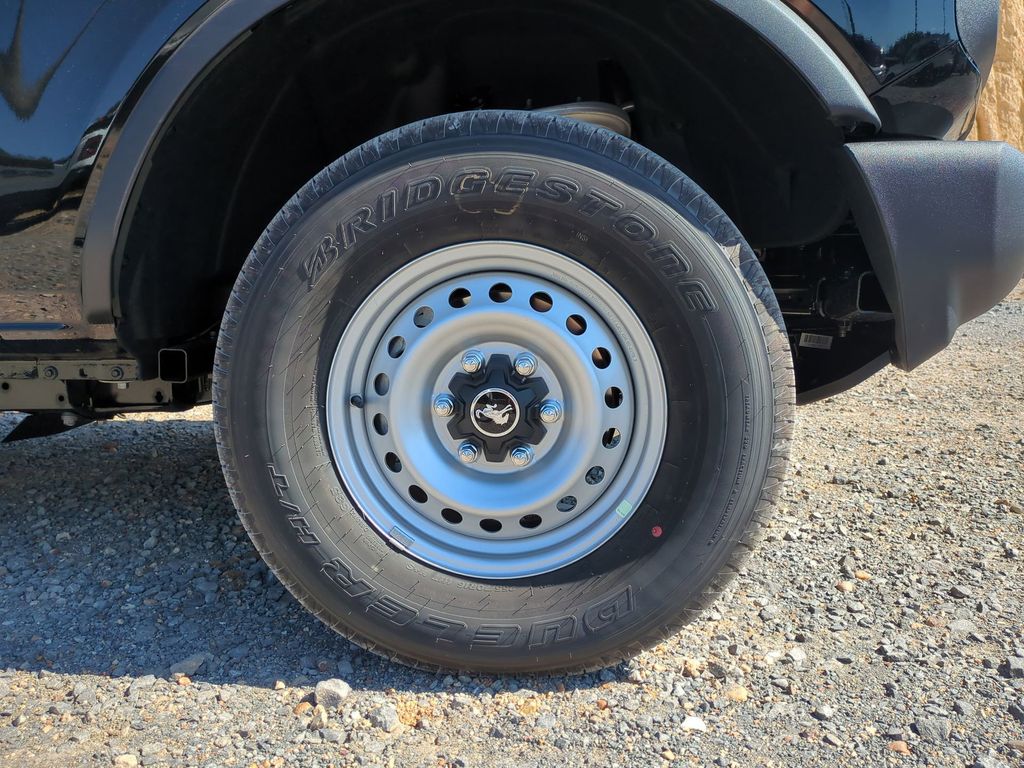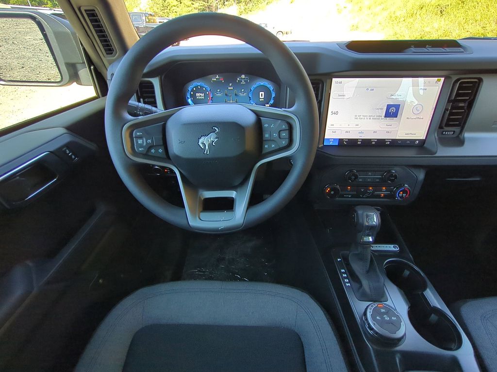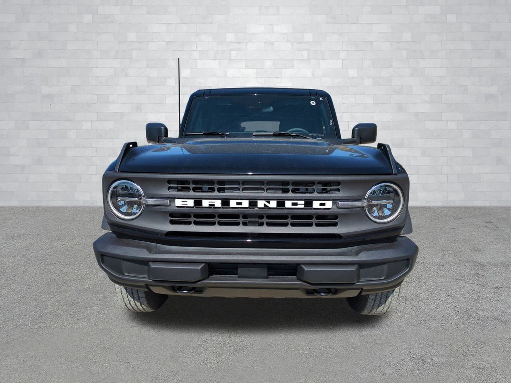 2025 Shadow Black 2025 Ford Bronco Base 4WD 2.3L EcoBoost I-4 12" LCD Productivity Touchscreen, Auto Emergency Braking, Auto LED Headlights, Backup Camera, Hill Start Assist, Pre Collision Assist w/ AEB, Tow Package, Trailer Package, 4D Sport Utility, 2.3L EcoBoost I-4, 4WD, Equipment Group 101A. Equipment Group 101A, 4D Sport Utility, 2.3L EcoBoost I-4, 4WD, 4-Wheel Disc Brakes, 4.46 Axle Ratio, 7 Speakers, ABS brakes, Air Conditioning, AM/FM radio: SiriusXM with 360L, AM/FM Stereo, Auto High-beam Headlights, Brake assist, Cloth Bucket Seats, Compass, Delay-off headlights, Driver door bin, Driver vanity mirror, Dual front impact airbags, Dual front side impact airbags, Electronic Stability Control, Emergency communication system: 911 Assist, Exterior Parking Camera Rear, Front anti-roll bar, Front Bucket Seats, Front Center Armrest, Front reading lights, Front wheel independent suspension, Fully automatic headlights, Heated door mirrors, Illuminated entry, Integrated roll-over protection, Low tire pressure warning, Occupant sensing airbag, Outside temperature display, Overhead airbag, Overhead console, Panic alarm, Passenger door bin, Passenger vanity mirror, Power door mirrors, Power steering, Power windows, Radio data system, Remote keyless entry, Security system, SiriusXM w/360L, Speed control, Split folding rear seat, Steering wheel mounted audio controls, SYNC 4, Tachometer, Telescoping steering wheel, Tilt steering wheel, Traction control, Trip computer, Variably intermittent wipers, and Wheels: 16" Bright Polished Silver-Painted Steel Courtesy Ford and Lincoln of Rome 101 Hwy 411 E Rome, Ga 30161 ROMEFORDLINC.COM 706.235.4453.