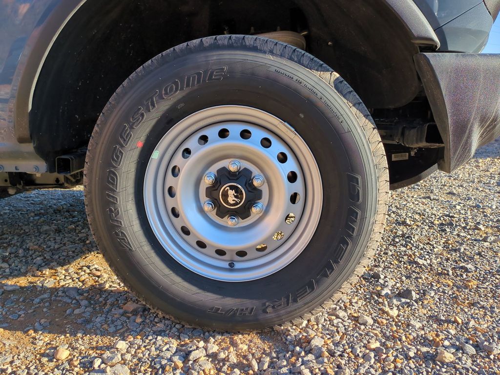 2025 Azure Gray Metallic 2025 Ford Bronco Base 4WD 2.3L EcoBoost I-4 4-Wheel Disc Brakes, 4.46 Axle Ratio, 7 Speakers, ABS brakes, Air Conditioning, AM/FM radio: SiriusXM with 360L, AM/FM Stereo, Auto High-beam Headlights, Brake assist, Cloth Bucket Seats, Compass, Delay-off headlights, Driver door bin, Driver vanity mirror, Dual front impact airbags, Dual front side impact airbags, Electronic Stability Control, Emergency communication system: 911 Assist, Exterior Parking Camera Rear, Front anti-roll bar, Front Bucket Seats, Front Center Armrest, Front reading lights, Front wheel independent suspension, Fully automatic headlights, Heated door mirrors, Illuminated entry, Integrated roll-over protection, Internet access capable: FordPass Connect, Low tire pressure warning, Occupant sensing airbag, Outside temperature display, Overhead airbag, Overhead console, Panic alarm, Passenger door bin, Passenger vanity mirror, Power door mirrors, Power steering, Power windows, Radio data system, Remote keyless entry, Security system, SiriusXM w/360L, Speed control, Split folding rear seat, Steering wheel mounted audio controls, SYNC 4, Tachometer, Telescoping steering wheel, Tilt steering wheel, Traction control, Trip computer, Variably intermittent wipers, and Wheels: 16" Bright Polished Silver-Painted Steel Courtesy Ford and Lincoln of Rome 101 Hwy 411 E Rome, Ga 30161 ROMEFORDLINC.COM 706.235.4453.