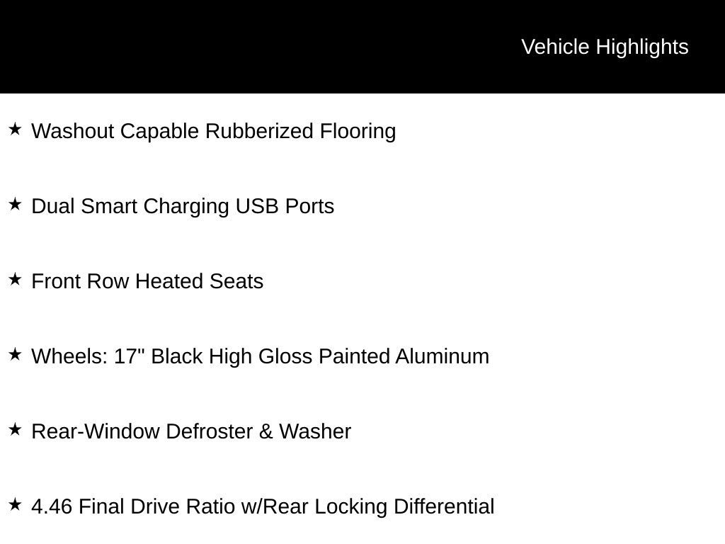 - 4.46 Final Drive Ratio w/Rear Locking Differential