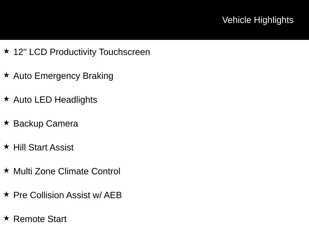 - Pre Collision Assist w/ AEB