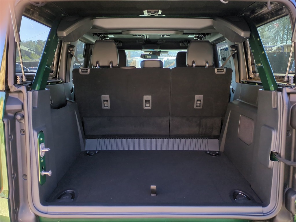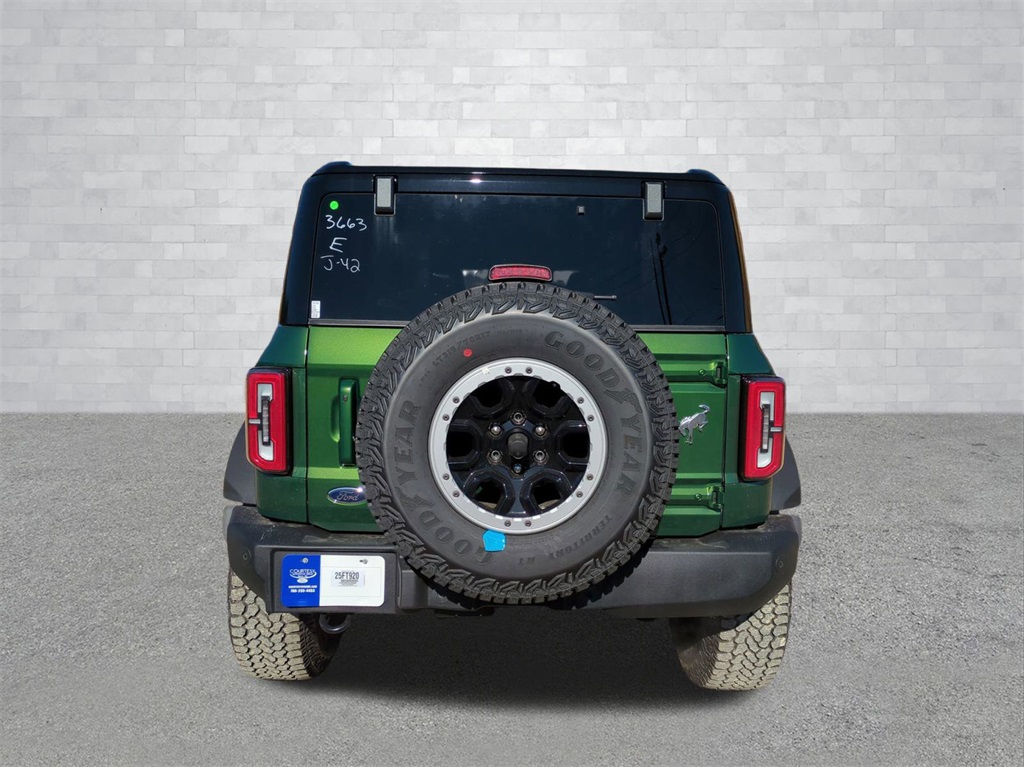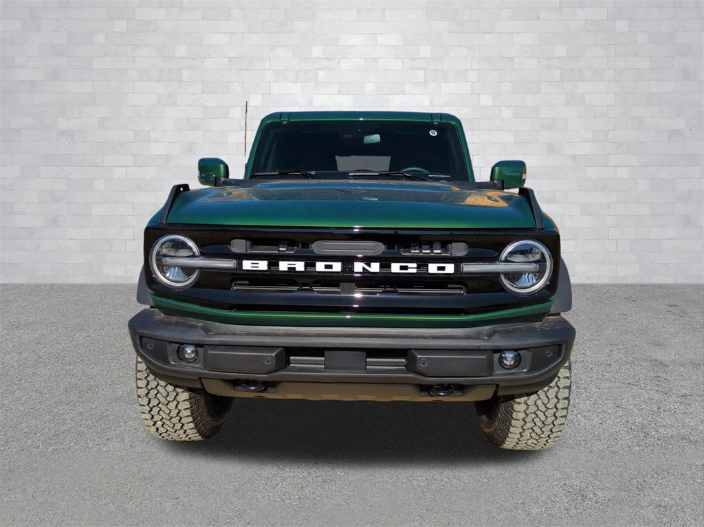 2025 Eruption Green Metallic 2025 Ford Bronco Outer Banks 4WD 2.7L EcoBoost V6 Equipment Group 314A Lux Package (360-Degree Camera, Adaptive Cruise Control, Evasive Steering Assist, Front Parking Sensors, Information on Demand Panel, Radio: B&O Sound System by Bang & Olufsen, Sideview Mirrors, and Universal Garage Door Opener), Sasquatch Package (High Clearance Fender Flares, High Clearance Suspension, Position-Sensitive Bilstein Shock Absorbers, and Wheels: 17" Carbonized Gray Painted Aluminum), 18" Bright Machined Aluminum Wheels, 4-Wheel Disc Brakes, 7 Speakers, ABS brakes, Air Conditioning, Alloy wheels, AM/FM radio: SiriusXM with 360L, AM/FM Stereo, Auto High-beam Headlights, Auto-dimming Rear-View mirror, Automatic temperature control, Brake assist, Compass, Connected Navigation, Delay-off headlights, Driver door bin, Driver vanity mirror, Dual front impact airbags, Dual front side impact airbags, Electronic Stability Control, Emergency communication system: 911 Assist, Exterior Parking Camera Rear, Front anti-roll bar, Front Bucket Seats, Front Center Armrest, Front dual zone A/C, Front fog lights, Front reading lights, Front wheel independent suspension, Fully automatic headlights, Hard Top Sound Deadening Headliner, Heated door mirrors, Heated front seats, Heated Leather-Trimmed/Vinyl Bucket Seats, Heated steering wheel, Illuminated entry, Integrated roll-over protection, Internet access capable: FordPass Connect, Leather Shift Knob, Low tire pressure warning, Navigation system: Connected Navigation, Occupant sensing airbag, Outside temperature display, Overhead airbag, Overhead console, Panic alarm, Passenger door bin, Passenger vanity mirror, Power door mirrors, Power driver seat, Power passenger seat, Power steering, Power windows, Radio data system, Rear seat center armrest, Rear-Window Defroster & Washer, Remote keyless entry, Security system, Shadow Black-Painted Hard Top, SiriusXM w/360L, Speed control, Split folding rear seat, Steering wheel mounted audio controls, SYNC 4, Tachometer, Telescoping steering wheel, Tilt steering wheel, Traction control, Trip computer, Variably intermittent wipers, Voltmeter, and Wheels: 17" Black High Gloss-Painted Aluminum (64X) Courtesy Ford and Lincoln of Rome 101 Hwy 411 E Rome, Ga 30161 ROMEFORDLINC.COM 706.235.4453.