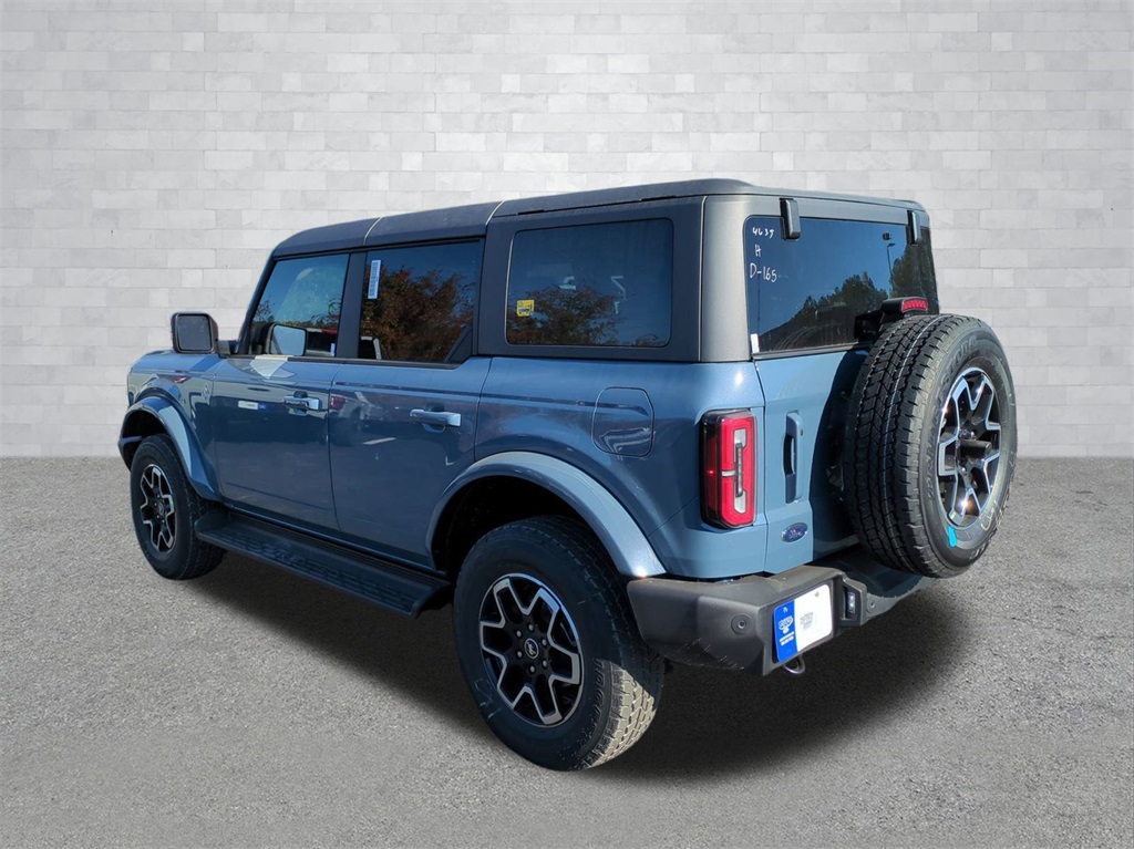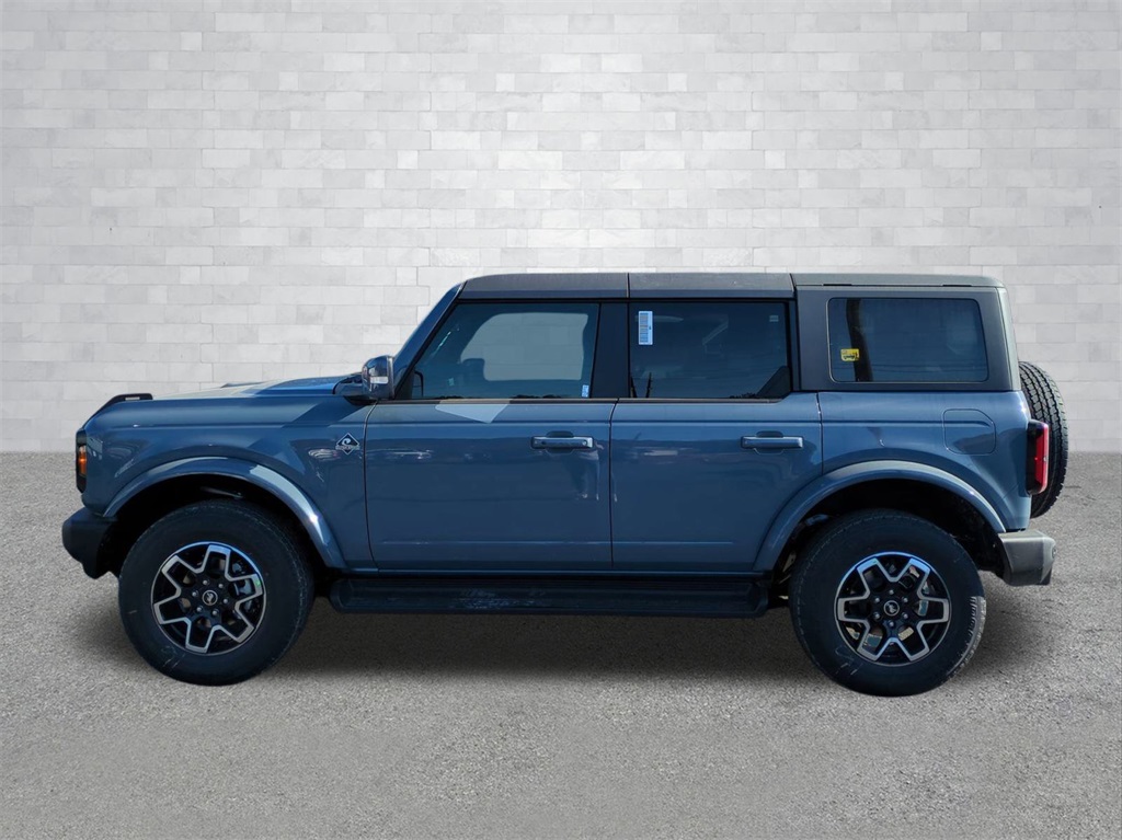 2025 Azure Gray Metallic Tri-Coat 2025 Ford Bronco Outer Banks 4WD 2.3L EcoBoost I-4 18" Bright Machined Aluminum Wheels, 3.73 Axle Ratio, 4-Wheel Disc Brakes, 7 Speakers, ABS brakes, Air Conditioning, Alloy wheels, AM/FM radio: SiriusXM with 360L, AM/FM Stereo, Auto High-beam Headlights, Auto-dimming Rear-View mirror, Automatic temperature control, Brake assist, Compass, Connected Navigation, Delay-off headlights, Driver door bin, Driver vanity mirror, Dual front impact airbags, Dual front side impact airbags, Electronic Stability Control, Emergency communication system: 911 Assist, Exterior Parking Camera Rear, Front anti-roll bar, Front Bucket Seats, Front Center Armrest, Front dual zone A/C, Front fog lights, Front reading lights, Front wheel independent suspension, Fully automatic headlights, Heated door mirrors, Heated front seats, Heated Leather-Trimmed/Vinyl Bucket Seats, Heated steering wheel, Illuminated entry, Integrated roll-over protection, Internet access capable: FordPass Connect, Leather Shift Knob, Low tire pressure warning, Navigation system: Connected Navigation, Occupant sensing airbag, Outside temperature display, Overhead airbag, Overhead console, Panic alarm, Passenger door bin, Passenger vanity mirror, Power door mirrors, Power driver seat, Power passenger seat, Power steering, Power windows, Radio data system, Rear seat center armrest, Remote keyless entry, Security system, SiriusXM w/360L, Speed control, Split folding rear seat, Steering wheel mounted audio controls, SYNC 4, Tachometer, Telescoping steering wheel, Tilt steering wheel, Traction control, Trip computer, Variably intermittent wipers, and Voltmeter Courtesy Ford and Lincoln of Rome 101 Hwy 411 E Rome, Ga 30161 ROMEFORDLINC.COM 706.235.4453.