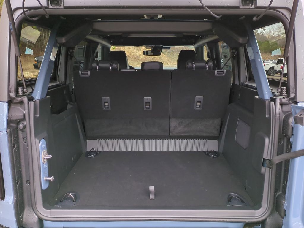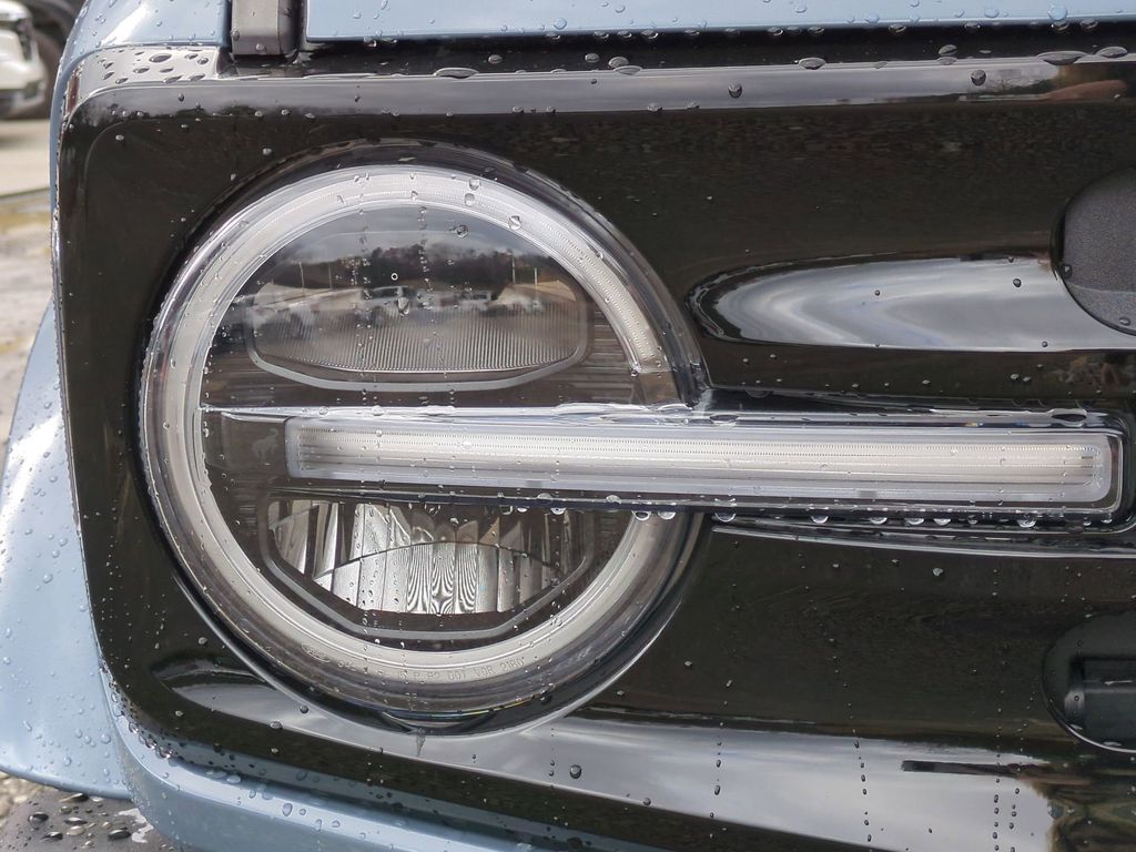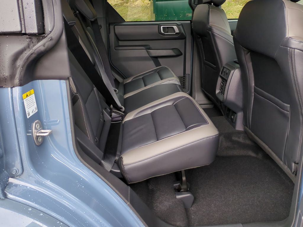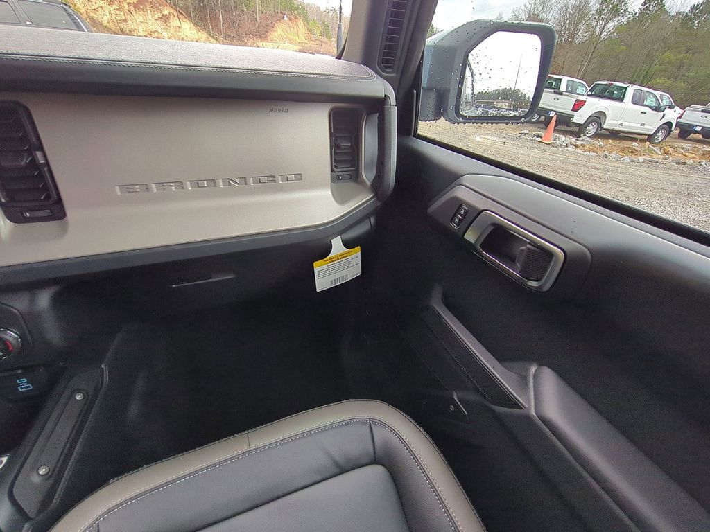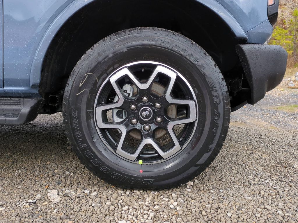 2025 Azure Gray Metallic Tri-Coat 2025 Ford Bronco Outer Banks 4WD 2.3L EcoBoost I-4 Equipment Group 314A Lux Package (360-Degree Camera, Adaptive Cruise Control, Evasive Steering Assist, Front Parking Sensors, Information on Demand Panel, Radio: B&O Sound System by Bang & Olufsen, Sideview Mirrors, and Universal Garage Door Opener), 18" Bright Machined Aluminum Wheels, 3.73 Axle Ratio, 4-Wheel Disc Brakes, 7 Speakers, ABS brakes, Air Conditioning, Alloy wheels, AM/FM radio: SiriusXM with 360L, AM/FM Stereo, Auto High-beam Headlights, Auto-dimming Rear-View mirror, Automatic temperature control, Brake assist, Carbonized Gray Molded-In-Color Hard Top, Compass, Connected Navigation, Delay-off headlights, Driver door bin, Driver vanity mirror, Dual front impact airbags, Dual front side impact airbags, Electronic Stability Control, Emergency communication system: 911 Assist, Exterior Parking Camera Rear, Front anti-roll bar, Front Bucket Seats, Front Center Armrest, Front dual zone A/C, Front fog lights, Front reading lights, Front wheel independent suspension, Fully automatic headlights, Hard Top Sound Deadening Headliner, Heated door mirrors, Heated front seats, Heated Leather-Trimmed/Vinyl Bucket Seats, Heated steering wheel, Illuminated entry, Integrated roll-over protection, Internet access capable: FordPass Connect, Leather Shift Knob, Low tire pressure warning, Navigation system: Connected Navigation, Occupant sensing airbag, Outside temperature display, Overhead airbag, Overhead console, Panic alarm, Passenger door bin, Passenger vanity mirror, Power door mirrors, Power driver seat, Power passenger seat, Power steering, Power windows, Radio data system, Rear seat center armrest, Rear-Window Defroster & Washer, Remote keyless entry, Security system, SiriusXM w/360L, Speed control, Split folding rear seat, Steering wheel mounted audio controls, SYNC 4, Tachometer, Telescoping steering wheel, Tilt steering wheel, Traction control, Trip computer, Variably intermittent wipers, and Voltmeter Courtesy Ford and Lincoln of Rome 101 Hwy 411 E Rome, Ga 30161 ROMEFORDLINC.COM 706.235.4453.