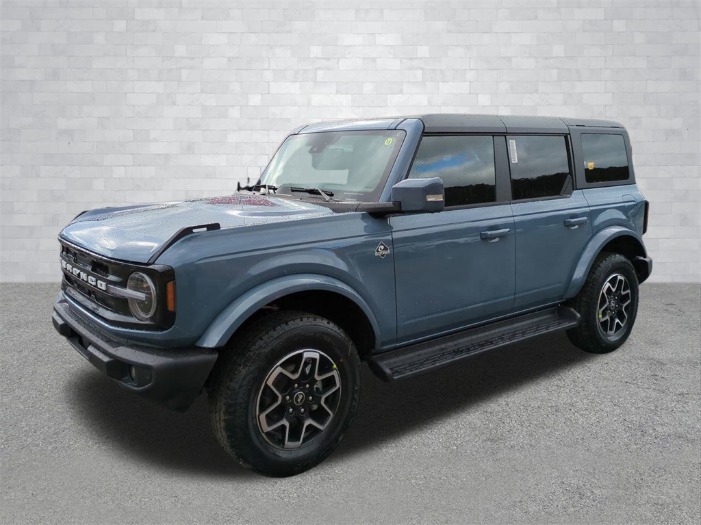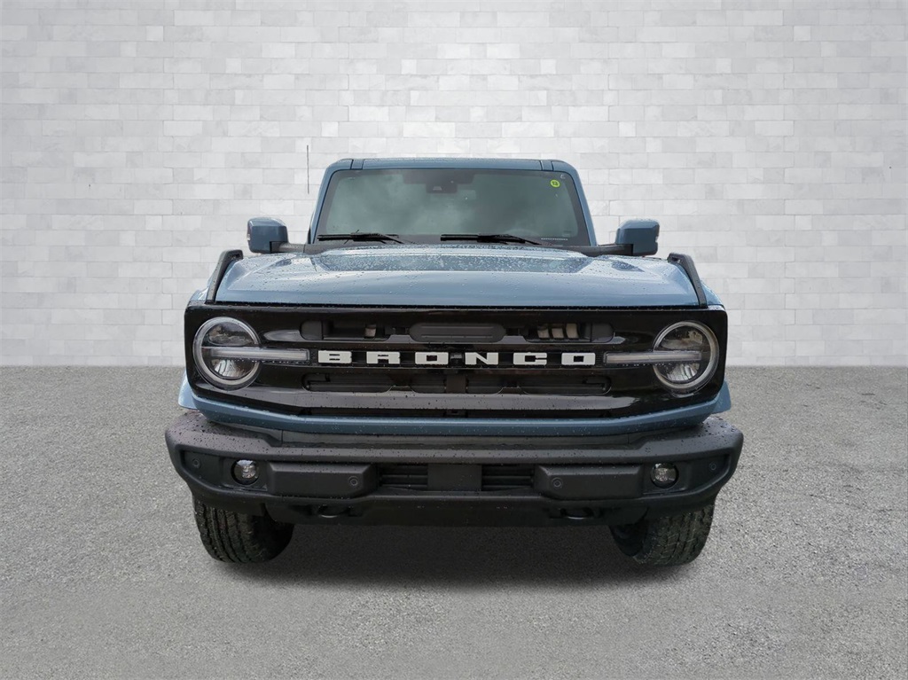 2025 Azure Gray Metallic Tri-Coat 2025 Ford Bronco Outer Banks 4WD 2.3L EcoBoost I-4 18" Bright Machined Aluminum Wheels, 3.73 Axle Ratio, 4-Wheel Disc Brakes, 7 Speakers, ABS brakes, Air Conditioning, Alloy wheels, AM/FM radio: SiriusXM with 360L, AM/FM Stereo, Auto High-beam Headlights, Auto-dimming Rear-View mirror, Automatic temperature control, Brake assist, Compass, Connected Navigation, Delay-off headlights, Driver door bin, Driver vanity mirror, Dual front impact airbags, Dual front side impact airbags, Electronic Stability Control, Emergency communication system: 911 Assist, Exterior Parking Camera Rear, Front anti-roll bar, Front Bucket Seats, Front Center Armrest, Front dual zone A/C, Front fog lights, Front reading lights, Front wheel independent suspension, Fully automatic headlights, Heated door mirrors, Heated front seats, Heated Leather-Trimmed/Vinyl Bucket Seats, Heated steering wheel, Illuminated entry, Integrated roll-over protection, Internet access capable: FordPass Connect, Leather Shift Knob, Low tire pressure warning, Navigation system: Connected Navigation, Occupant sensing airbag, Outside temperature display, Overhead airbag, Overhead console, Panic alarm, Passenger door bin, Passenger vanity mirror, Power door mirrors, Power driver seat, Power passenger seat, Power steering, Power windows, Radio data system, Rear seat center armrest, Remote keyless entry, Security system, SiriusXM w/360L, Speed control, Split folding rear seat, Steering wheel mounted audio controls, SYNC 4, Tachometer, Telescoping steering wheel, Tilt steering wheel, Traction control, Trip computer, Variably intermittent wipers, and Voltmeter Courtesy Ford and Lincoln of Rome 101 Hwy 411 E Rome, Ga 30161 ROMEFORDLINC.COM 706.235.4453.