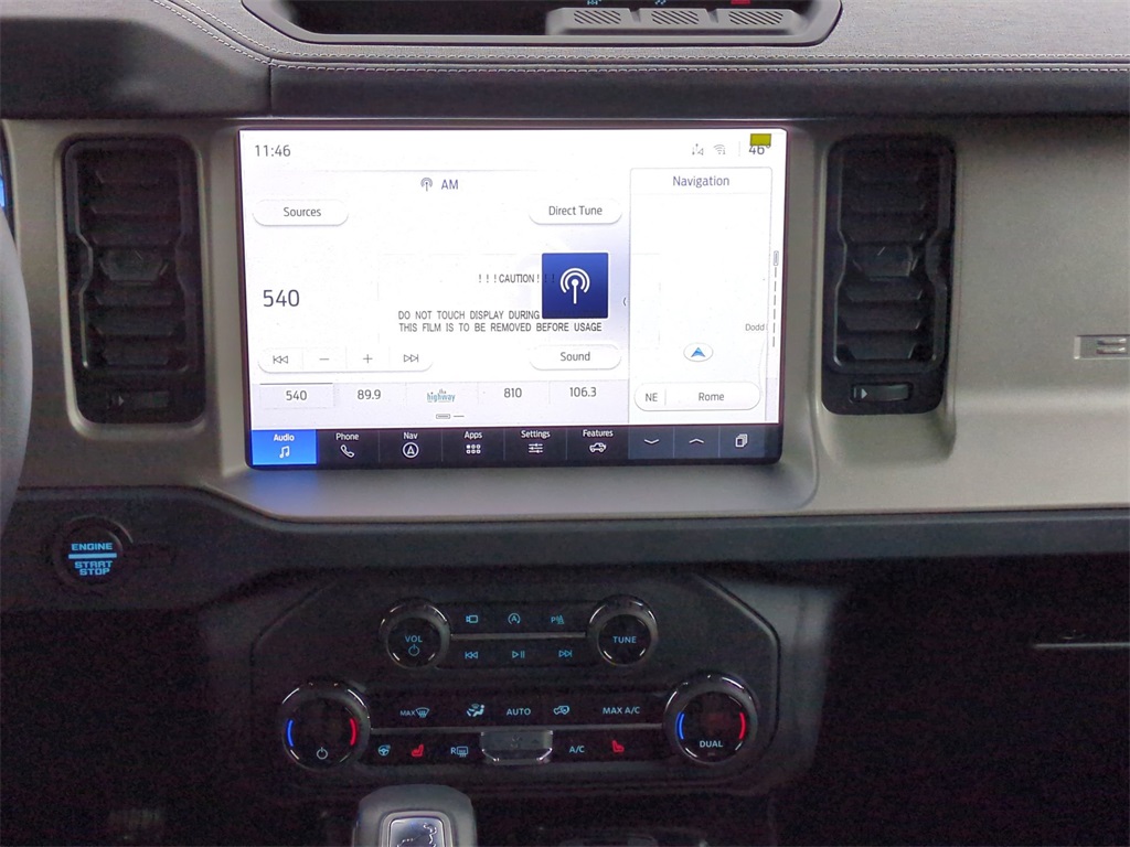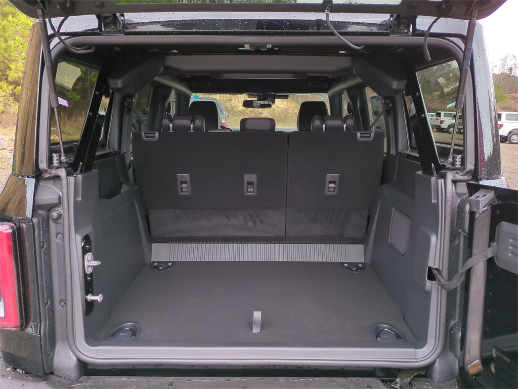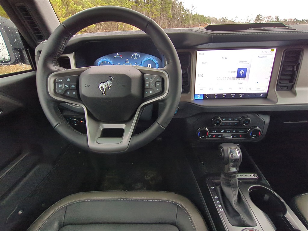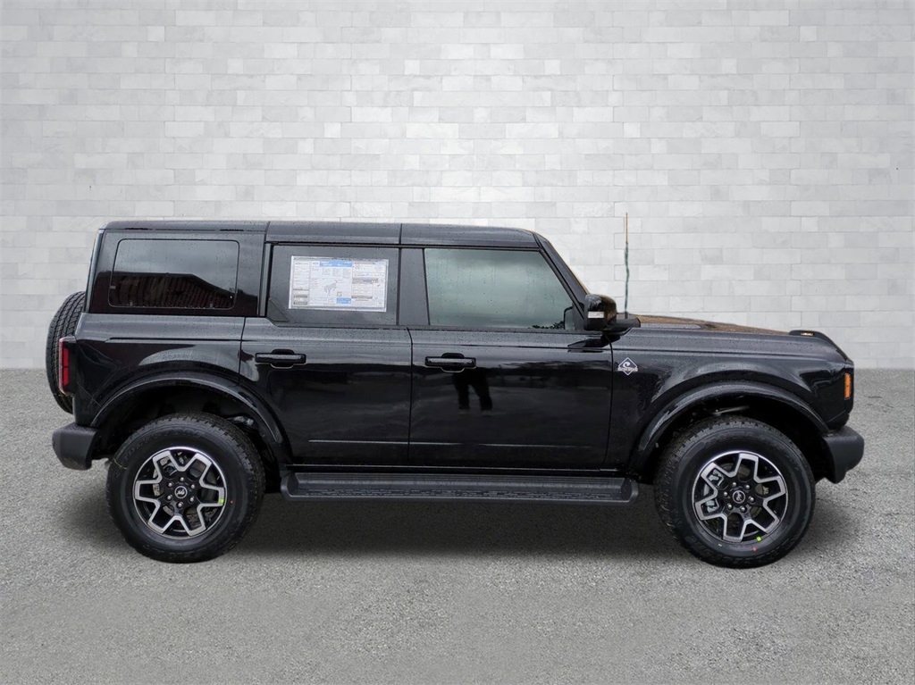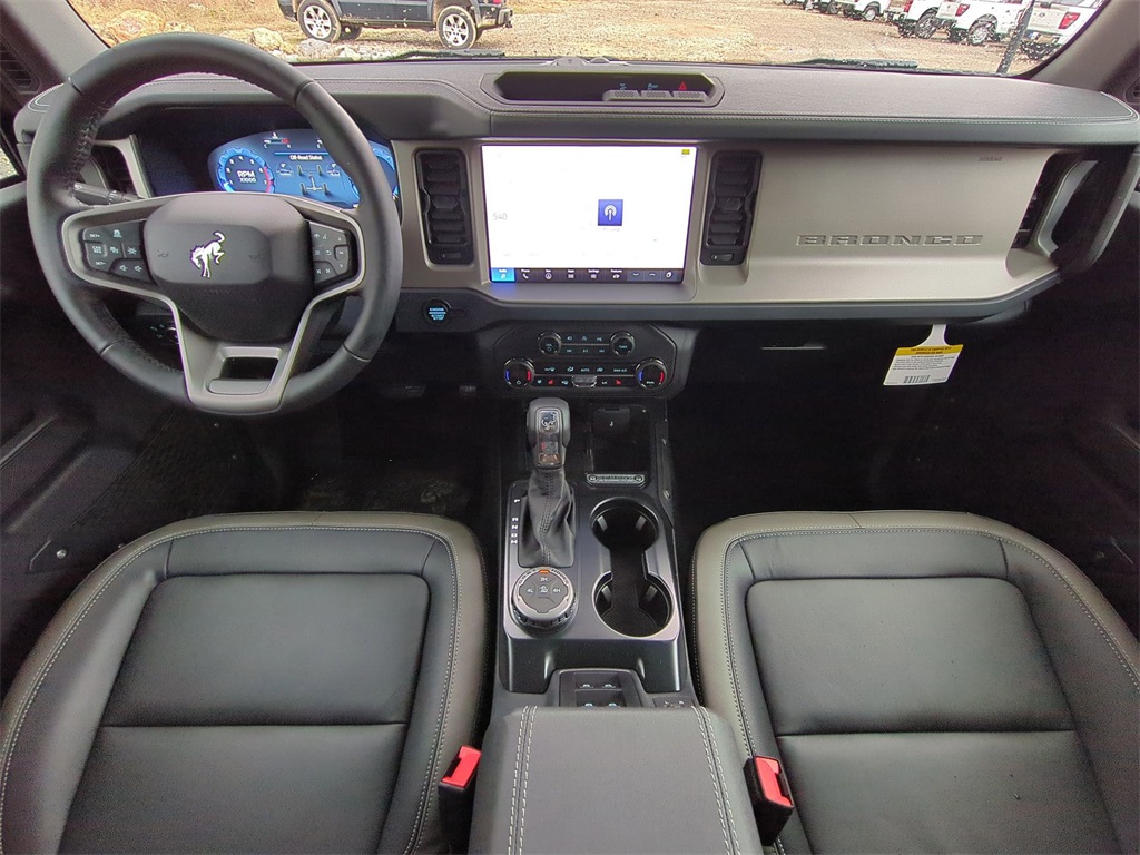 2025 Shadow Black 2025 Ford Bronco Outer Banks 4WD 2.3L EcoBoost I-4 18" Bright Machined Aluminum Wheels, 3.73 Axle Ratio, 4-Wheel Disc Brakes, 7 Speakers, ABS brakes, Air Conditioning, Alloy wheels, AM/FM radio: SiriusXM with 360L, AM/FM Stereo, Auto High-beam Headlights, Auto-dimming Rear-View mirror, Automatic temperature control, Brake assist, Compass, Connected Navigation, Delay-off headlights, Driver door bin, Driver vanity mirror, Dual front impact airbags, Dual front side impact airbags, Electronic Stability Control, Emergency communication system: 911 Assist, Exterior Parking Camera Rear, Front anti-roll bar, Front Bucket Seats, Front Center Armrest, Front dual zone A/C, Front fog lights, Front reading lights, Front wheel independent suspension, Fully automatic headlights, Heated door mirrors, Heated front seats, Heated Leather-Trimmed/Vinyl Bucket Seats, Heated steering wheel, Illuminated entry, Integrated roll-over protection, Internet access capable: FordPass Connect, Leather Shift Knob, Low tire pressure warning, Navigation system: Connected Navigation, Occupant sensing airbag, Outside temperature display, Overhead airbag, Overhead console, Panic alarm, Passenger door bin, Passenger vanity mirror, Power door mirrors, Power driver seat, Power passenger seat, Power steering, Power windows, Radio data system, Rear seat center armrest, Remote keyless entry, Security system, SiriusXM w/360L, Speed control, Split folding rear seat, Steering wheel mounted audio controls, SYNC 4, Tachometer, Telescoping steering wheel, Tilt steering wheel, Traction control, Trip computer, Variably intermittent wipers, and Voltmeter Courtesy Ford and Lincoln of Rome 101 Hwy 411 E Rome, Ga 30161 ROMEFORDLINC.COM 706.235.4453.