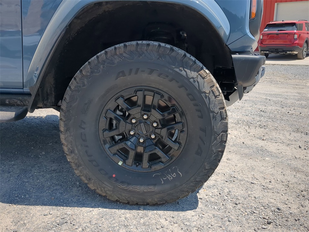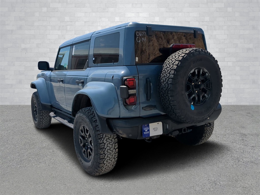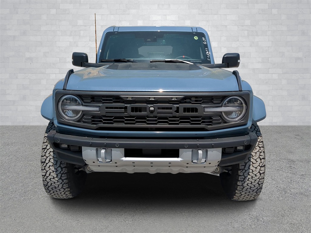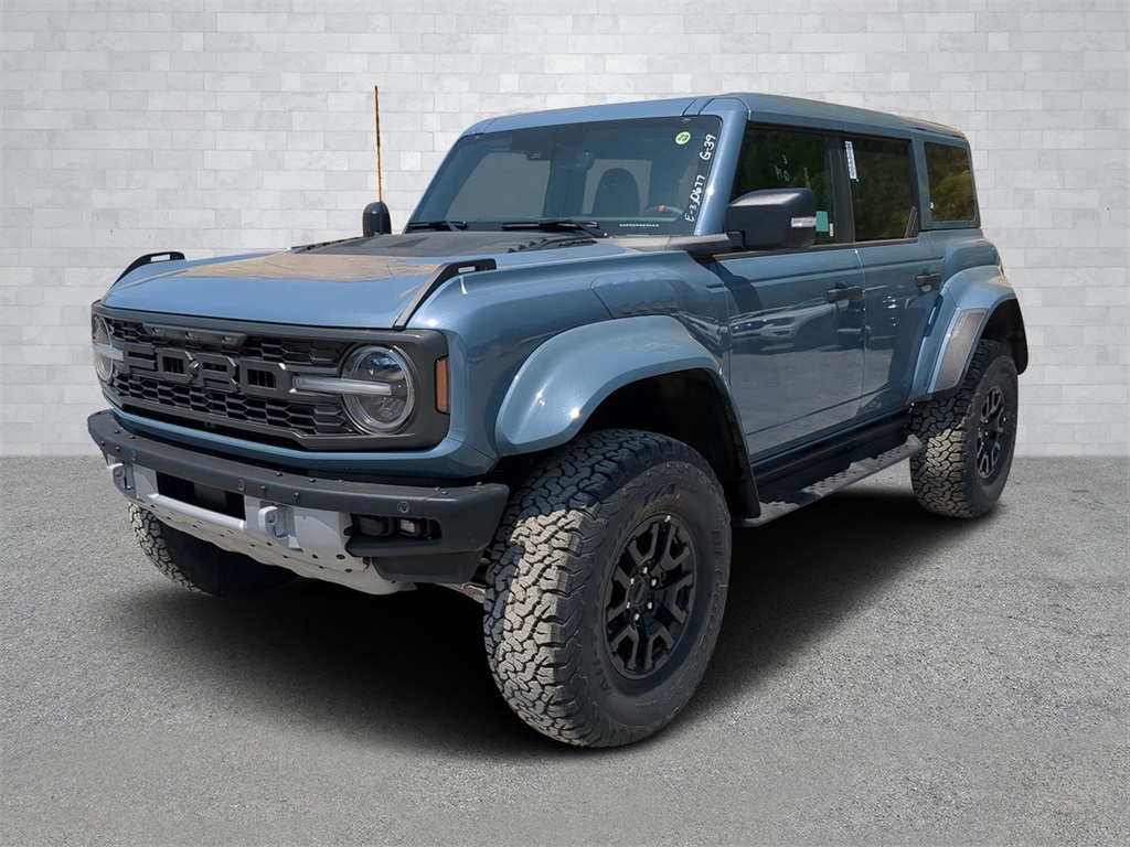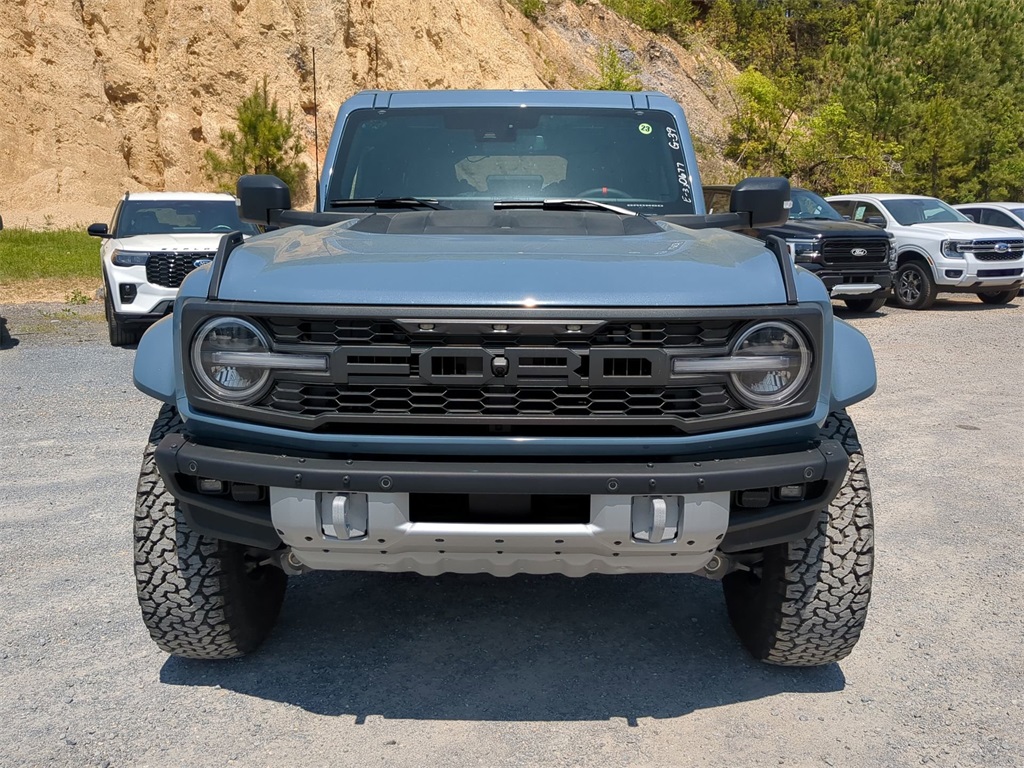2025 Azure Gray Metallic Tri-Coat 2025 Ford Bronco Raptor 4WD 3.0L EcoBoost V6 Auto LED Headlights, Backup Camera, LED Foglights, Off Road Package, Performance Package, Premium Sound Package, 3.0L EcoBoost V6, 10-Speed Automatic, 4WD, Equipment Group 374A Lux Package, Navigation system: Connected Navigation. Equipment Group 374A Lux Package, 3.0L EcoBoost V6, 10-Speed Automatic, 4WD, Navigation system: Connected Navigation, 12 Speakers, 4-Wheel Disc Brakes, ABS brakes, Air Conditioning, Alloy wheels, AM/FM radio: SiriusXM with 360L, Auto High-beam Headlights, Auto-dimming Rear-View mirror, Automatic temperature control, Brake assist, Compass, Connected Navigation, Convertible HardTop, Convertible roof lining, Delay-off headlights, Driver door bin, Driver vanity mirror, Dual front impact airbags, Dual front side impact airbags, Electronic Stability Control, Emergency communication system: 911 Assist, Exterior Parking Camera Rear, Front anti-roll bar, Front Bucket Seats, Front Center Armrest, Front dual zone A/C, Front fog lights, Front reading lights, Front wheel independent suspension, Fully automatic headlights, Garage door transmitter, Glass rear window, Heated door mirrors, Heated front seats, Heated steering wheel, Illuminated entry, Integrated roll-over protection, Leather Shift Knob, Low tire pressure warning, Marine Grade Vinyl Bucket Seats, Occupant sensing airbag, Outside temperature display, Overhead airbag, Overhead console, Panic alarm, Passenger door bin, Passenger vanity mirror, Power door mirrors, Power steering, Power windows, Radio data system, Radio: B&O Sound System by Bang & Olufsen, Rear anti-roll bar, Rear seat center armrest, Rear window defroster, Rear window wiper, Remote keyless entry, Security system, SiriusXM w/360L, Speed control, Split folding rear seat, Steering wheel mounted audio controls, SYNC 4, Tachometer, Telescoping steering wheel, Tilt steering wheel, Traction control, Trip computer, Turn signal indicator mirrors, Variably intermittent wipers, Voltmeter, and Wheels: 17" Black High Gloss-Painted Aluminum Courtesy Ford and Lincoln of Rome 101 Hwy 411 E Rome, Ga 30161 ROMEFORDLINC.COM 706.235.4453.