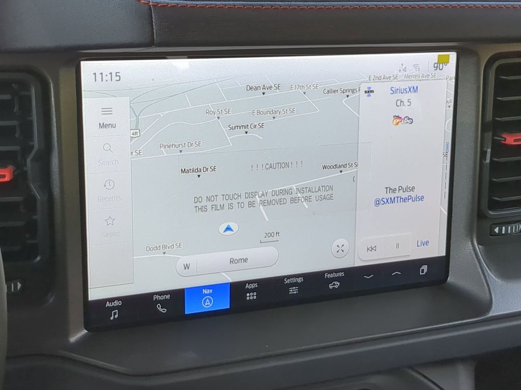 2025 Azure Gray Metallic Tri-Coat 2025 Ford Bronco Raptor 4WD 3.0L EcoBoost V6 12" LCD Productivity Touchscreen, 360-Degree Camera, Auto Emergency Braking, Auto LED Headlights, Backup Camera, Leather Seats, LED Foglights, Off Road Package, Pre Collision Assist w/ AEB, Skid Plate Package, 4D Sport Utility, 3.0L EcoBoost V6, 10-Speed Automatic, 4WD, Convertible HardTop, Equipment Group 374A Lux Package, Hard Top Sound Deadening Headliner, Navigation system: Connected Navigation, Wheels: 17" Black High Gloss-Painted Aluminum. Equipment Group 374A Lux Package, 4D Sport Utility, 3.0L EcoBoost V6, 10-Speed Automatic, 4WD, Convertible HardTop, Hard Top Sound Deadening Headliner, Navigation system: Connected Navigation, Wheels: 17" Black High Gloss-Painted Aluminum, 12 Speakers, 4-Wheel Disc Brakes, ABS brakes, Air Conditioning, Alloy wheels, AM/FM radio: SiriusXM with 360L, Auto High-beam Headlights, Auto-dimming Rear-View mirror, Automatic temperature control, Brake assist, Compass, Connected Navigation, Convertible roof lining, Delay-off headlights, Driver door bin, Driver vanity mirror, Dual front impact airbags, Dual front side impact airbags, Electronic Stability Control, Emergency communication system: 911 Assist, Exterior Parking Camera Rear, Front anti-roll bar, Front Bucket Seats, Front Center Armrest, Front dual zone A/C, Front fog lights, Front reading lights, Front wheel independent suspension, Fully automatic headlights, Garage door transmitter, Glass rear window, Heated door mirrors, Heated front seats, Heated steering wheel, Illuminated entry, Integrated roll-over protection, Leather Shift Knob, Low tire pressure warning, Marine Grade Vinyl Bucket Seats, Occupant sensing airbag, Outside temperature display, Overhead airbag, Overhead console, Panic alarm, Passenger door bin, Passenger vanity mirror, Power door mirrors, Power steering, Power windows, Radio data system, Radio: B&O Sound System by Bang & Olufsen, Rear anti-roll bar, Rear seat center armrest, Rear window defroster, Rear window wiper, Remote keyless entry, Security system, SiriusXM w/360L, Speed control, Split folding rear seat, Steering wheel mounted audio controls, SYNC 4, Tachometer, Telescoping steering wheel, Tilt steering wheel, Traction control, Trip computer, Turn signal indicator mirrors, Variably intermittent wipers, and Voltmeter Courtesy Ford and Lincoln of Rome 101 Hwy 411 E Rome, Ga 30161 ROMEFORDLINC.COM 706.235.4453.