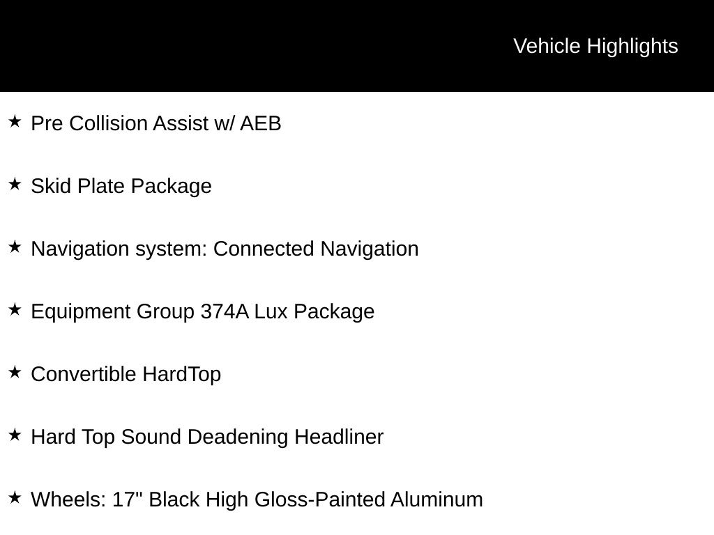 - Wheels: 17" Black High Gloss-Painted Aluminum