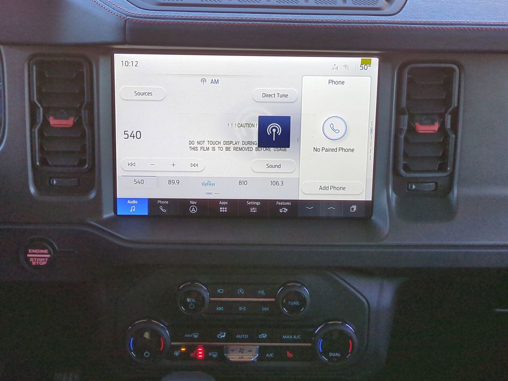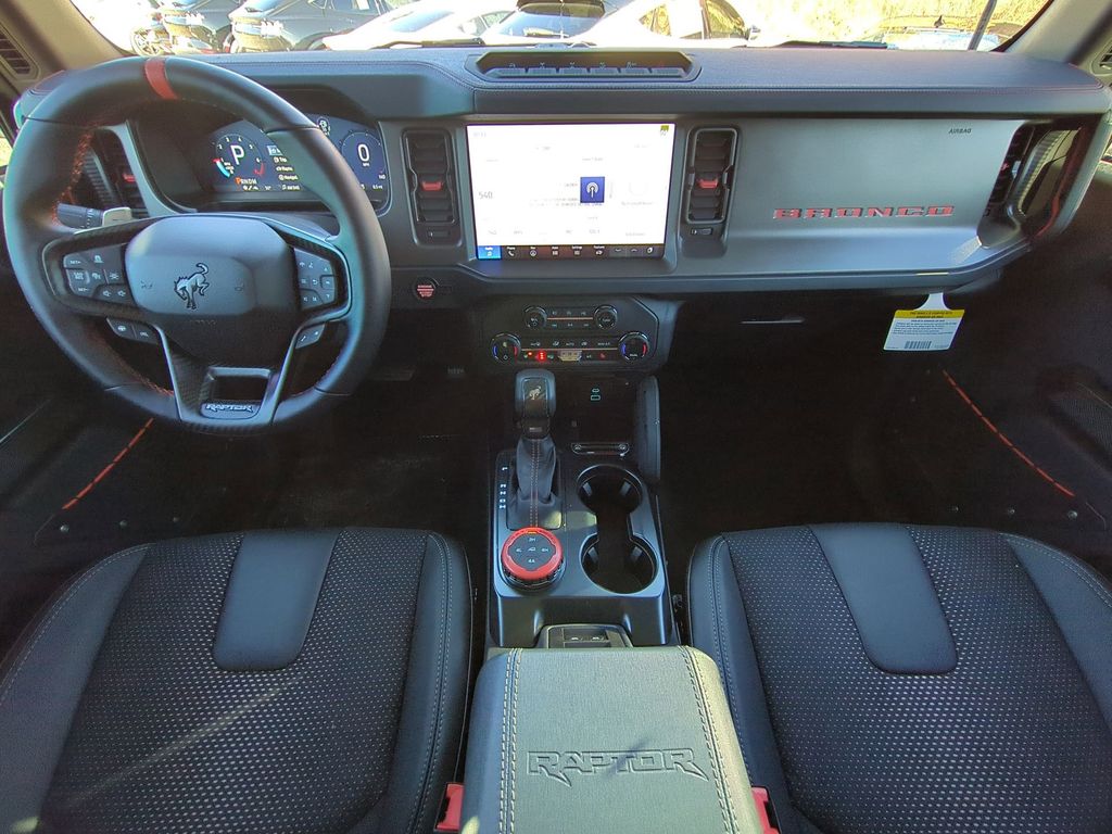 2025 Desert Sand 2025 Ford Bronco Raptor 4WD 3.0L EcoBoost V6 Equipment Group 374A Lux Package, 12 Speakers, 4-Wheel Disc Brakes, ABS brakes, Air Conditioning, Alloy wheels, AM/FM radio: SiriusXM with 360L, Auto High-beam Headlights, Auto-dimming Rear-View mirror, Automatic temperature control, Body Color-Painted Hard Top, Brake assist, Compass, Connected Navigation, Convertible HardTop, Convertible roof lining, Delay-off headlights, Driver door bin, Driver vanity mirror, Dual front impact airbags, Dual front side impact airbags, Electronic Stability Control, Emergency communication system: 911 Assist, Exterior Parking Camera Rear, Front anti-roll bar, Front Bucket Seats, Front Center Armrest, Front dual zone A/C, Front fog lights, Front reading lights, Front wheel independent suspension, Fully automatic headlights, Garage door transmitter, Glass rear window, Hard Top Sound Deadening Headliner, Heated door mirrors, Heated front seats, Heated steering wheel, Illuminated entry, Integrated roll-over protection, Interior Carbon Fiber Pack, Internet access capable: FordPass Connect, Leather Shift Knob, Low tire pressure warning, Marine Grade Vinyl Bucket Seats, Navigation system: Connected Navigation, Occupant sensing airbag, Outside temperature display, Overhead airbag, Overhead console, Panic alarm, Passenger door bin, Passenger vanity mirror, Power door mirrors, Power steering, Power windows, Radio data system, Radio: B&O Sound System by Bang & Olufsen, Rear anti-roll bar, Rear seat center armrest, Rear window defroster, Rear window wiper, Rear-Window Defroster & Washer, Remote keyless entry, Security system, SiriusXM w/360L, Speed control, Split folding rear seat, Steering wheel mounted audio controls, SYNC 4, Tachometer, Telescoping steering wheel, Tilt steering wheel, Traction control, Trip computer, Turn signal indicator mirrors, Variably intermittent wipers, Voltmeter, Wheels: 17" Black High Gloss-Painted Aluminum, and Wheels: 17" Dark Carbonized Gray Alloy Painted Courtesy Ford and Lincoln of Rome 101 Hwy 411 E Rome, Ga 30161 ROMEFORDLINC.COM 706.235.4453.