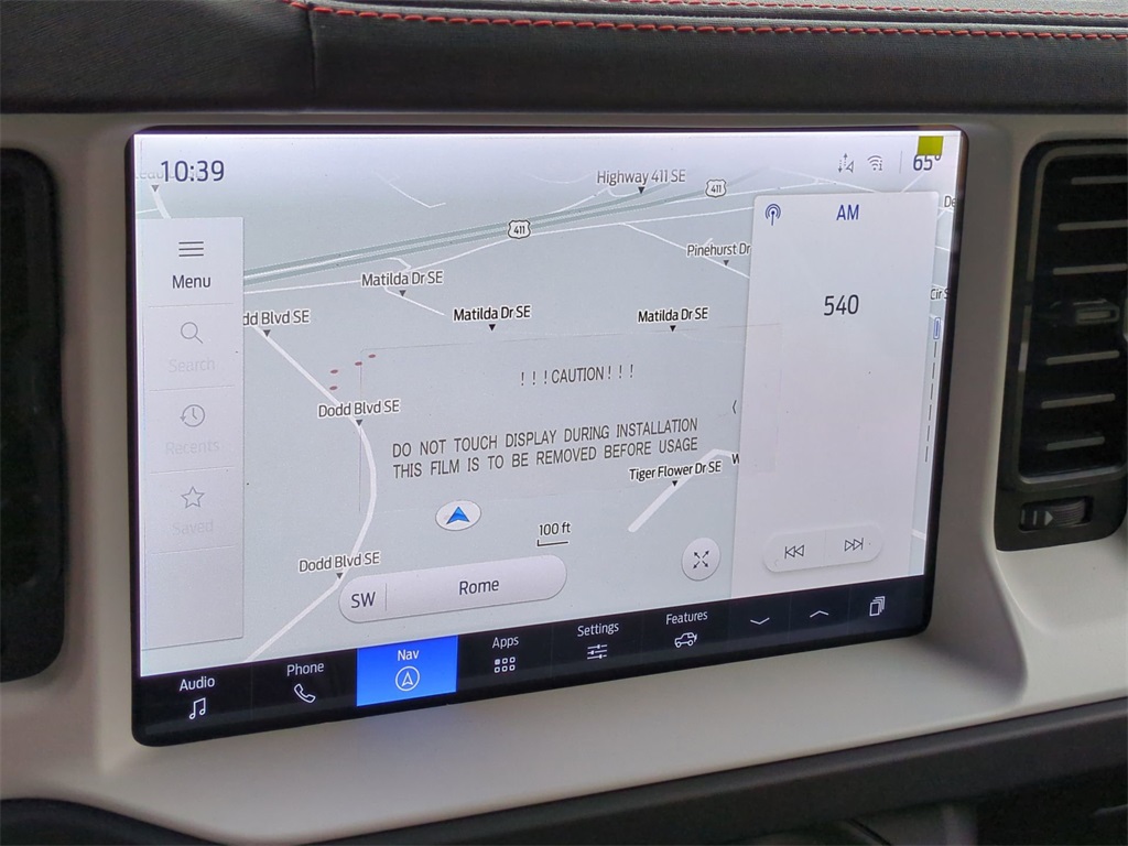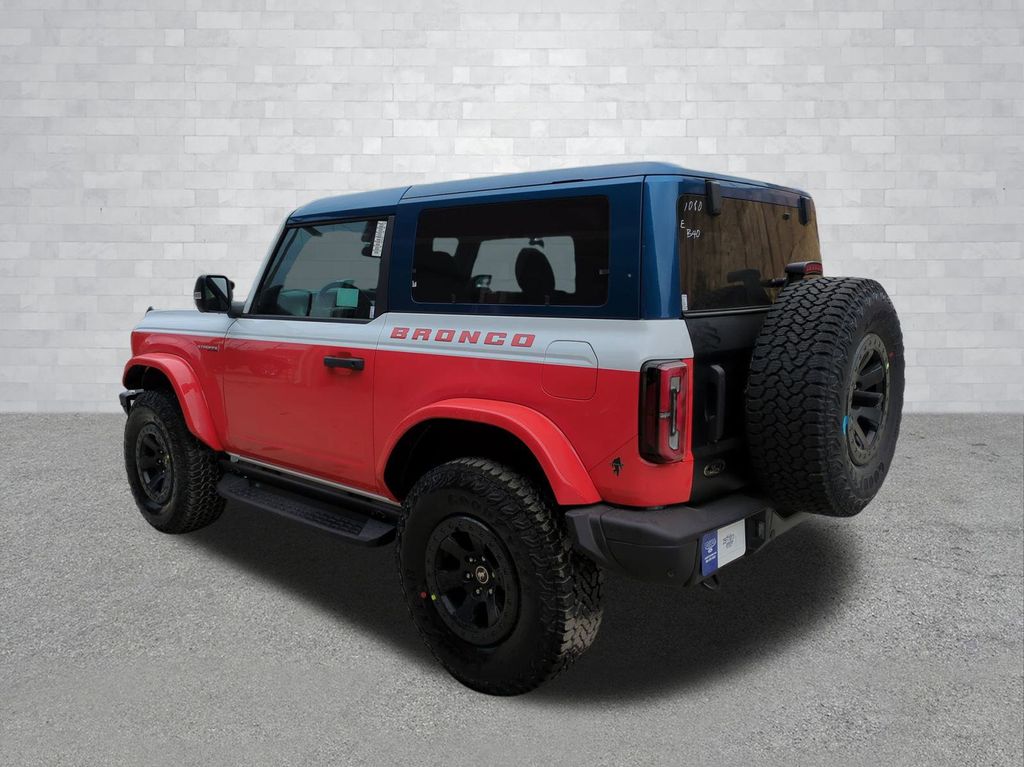 2025 Oxford White 2025 Ford Bronco Stroppe Edition 4WD 2.7L EcoBoost V6 12 Speakers, 4-Wheel Disc Brakes, ABS brakes, Air Conditioning, Alloy wheels, AM/FM radio: SiriusXM with 360L, Auto High-beam Headlights, Auto-dimming Rear-View mirror, Automatic temperature control, Brake assist, Compass, Connected Navigation, Convertible HardTop, Convertible roof lining, Delay-off headlights, Driver door bin, Driver vanity mirror, Dual front impact airbags, Dual front side impact airbags, Electronic Stability Control, Emergency communication system: 911 Assist, Exterior Parking Camera Rear, Front anti-roll bar, Front Bucket Seats, Front Center Armrest, Front dual zone A/C, Front reading lights, Front wheel independent suspension, Fully automatic headlights, Garage door transmitter, Glass rear window, Heated door mirrors, Heated front seats, Heated steering wheel, Illuminated entry, Integrated roll-over protection, Leather Shift Knob, Low tire pressure warning, Navigation system: Connected Navigation, Occupant sensing airbag, Outside temperature display, Overhead airbag, Overhead console, Panic alarm, Passenger door bin, Passenger vanity mirror, Power door mirrors, Power steering, Power windows, Radio data system, Radio: B&O Sound System by Bang & Olufsen, Rear anti-roll bar, Rear window defroster, Rear window wiper, Remote keyless entry, Security system, SiriusXM w/360L, Speed control, Split folding rear seat, Steering wheel mounted audio controls, SYNC 4, Tachometer, Telescoping steering wheel, Tilt steering wheel, Traction control, Trip computer, Turn signal indicator mirrors, Unique Vinyl Bucket Seats, Variably intermittent wipers, Voltmeter, and Wheels: 17" Unique Matte Black-Painted Alloy Courtesy Ford and Lincoln of Rome 101 Hwy 411 E Rome, Ga 30161 ROMEFORDLINC.COM 706.235.4453.