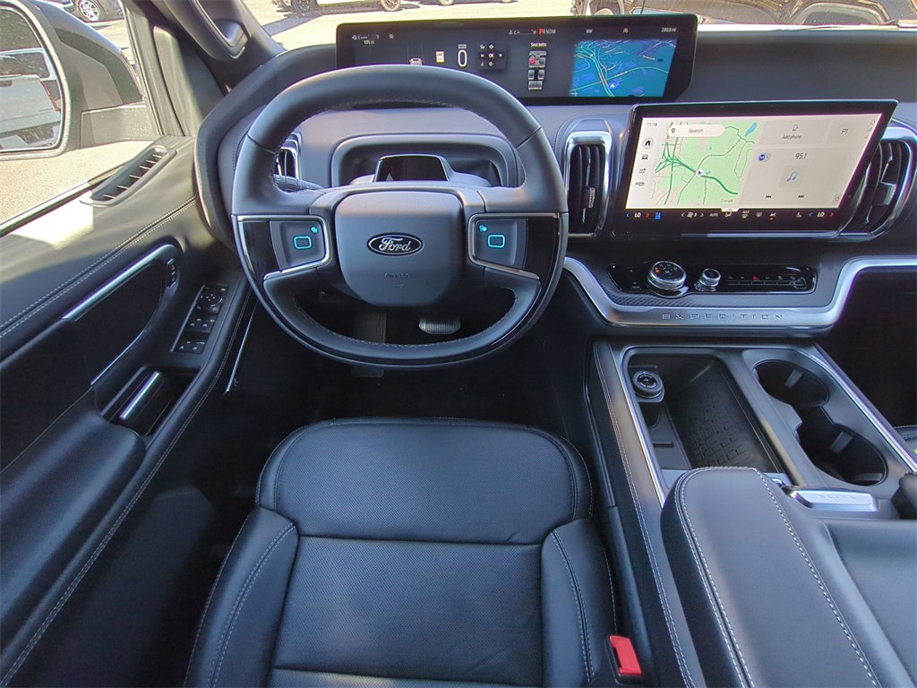 2025 Oxford White 2025 Ford Expedition Platinum 4WD 3.5L V6 24" Cluster Pano Display, 3rd Row Seating, Backup Camera, BlueCruise, Hill Descent Control, Hill Start Assist, Intersection Assist, Leather Seats, Panoramic Sunroof/Moonroof, Power Mirror Package, Power Package, Push Button Start, Tow Package, Trailer Package, Wireless Charging Pad, 4D Sport Utility, 3.5L V6, 10-Speed Automatic, 4WD, 10 Speakers, 2nd Row Power-Folding Captain's Chairs, AM/FM radio: SiriusXM with 360L, Automatic temperature control, Black Belt Molding, Black Expedition Lettering On Hood, Black Headlamp Bezel w/Ebony Trim Applique, Black Platinum Badge On Tailgate, Black Roof Rails, Carbon Black Front Bumper/Fascia, Connectivity Package (One-Time Purchase), Engine Sound Enhancer, Equipment Group 600A Standard Package, Front dual zone A/C, Memory seat, Navigation System, Pedal memory, Radio data system, Radio: B&O Sound System by Bang & Olufsen, Rain sensing wipers, Rear air conditioning, Rear Side Windows Laminated Glass, Rear window wiper, Remote keyless entry, Signature Grille Lighting, SiriusXM w/360L, Speed-Sensitive Wipers, Stealth Appearance Package, Steering wheel memory, Steering wheel mounted audio controls. Connectivity Package (One-Time Purchase), Equipment Group 600A Standard Package (2nd Row Power-Folding Captain's Chairs), Stealth Appearance Package (Black Belt Molding, Black Expedition Lettering On Hood, Black Headlamp Bezel w/Ebony Trim Applique, Black Platinum Badge On Tailgate, Black Roof Rails, Carbon Black Front Bumper/Fascia, Engine Sound Enhancer, Rear Side Windows Laminated Glass, and Signature Grille Lighting), 4D Sport Utility, 3.5L V6, 10-Speed Automatic, 4WD, 10 Speakers, AM/FM radio: SiriusXM with 360L, Automatic temperature control, Front dual zone A/C, Memory seat, Navigation System, Pedal memory, Radio data system, Radio: B&O Sound System by Bang & Olufsen, Rain sensing wipers, Rear air conditioning, Rear window wiper, Remote keyless entry, SiriusXM w/360L, Speed-Sensitive Wipers, Steering wheel memory, Steering wheel mounted audio controls, 3.73 Axle Ratio, 3rd row seats: split-bench, 4-Wheel Disc Brakes, ABS brakes, Adjustable pedals, Air Conditioning, Alloy wheels, Apple CarPlay/Android Auto, Auto High-beam Headlights, Auto-dimming door mirrors, Auto-dimming Rear-View mirror, Brake assist, Bumpers: body-color, Compass, Delay-off headlights, Driver door bin, Driver vanity mirror, Dual front impact airbags, Dual front side impact airbags, Electronic Stability Control, Emergency communication system: 911 Assist, Exterior Parking Camera Rear, Four wheel independent suspension, Front anti-roll bar, Front Bucket Seats, Front Center Armrest, Front reading lights, Fully automatic headlights, Garage door transmitter, Genuine wood dashboard insert, Genuine wood door panel insert, Heated & Ventilated Leather Front Captain's Chairs, Heated door mirrors, Heated front seats, Heated rear seats, Heated steering wheel, Illuminated entry, Leather steering wheel, Low tire pressure warning, Occupant sensing airbag, Outside temperature display, Overhead airbag, Overhead console, Panic alarm, Passenger door bin, Passenger vanity mirror, Power door mirrors, Power driver seat, Power moonroof: Vista Roof, Power passenger seat, Power steering, Power windows, Rear anti-roll bar, Rear reading lights, Rear window defroster, Reclining 3rd row seat, Security system, Speed control, Speed-sensing steering, Split folding rear seat, Spoiler, Tachometer, Telescoping steering wheel, Tilt steering wheel, Traction control, Trip computer, Turn signal indicator mirrors, Ventilated front seats, Voltmeter, and Wheels: 20" Ebony Bright Machined Aluminum Courtesy Ford and Lincoln of Rome 101 Hwy 411 E Rome, Ga 30161 ROMEFORDLINC.COM 706.235.4453.