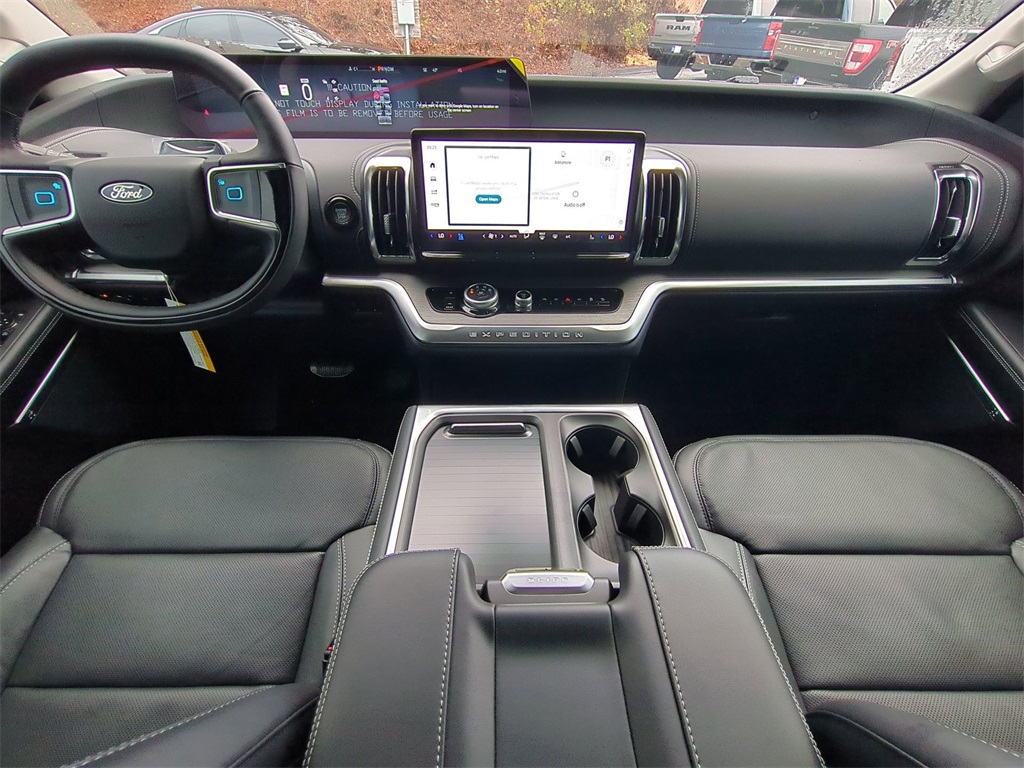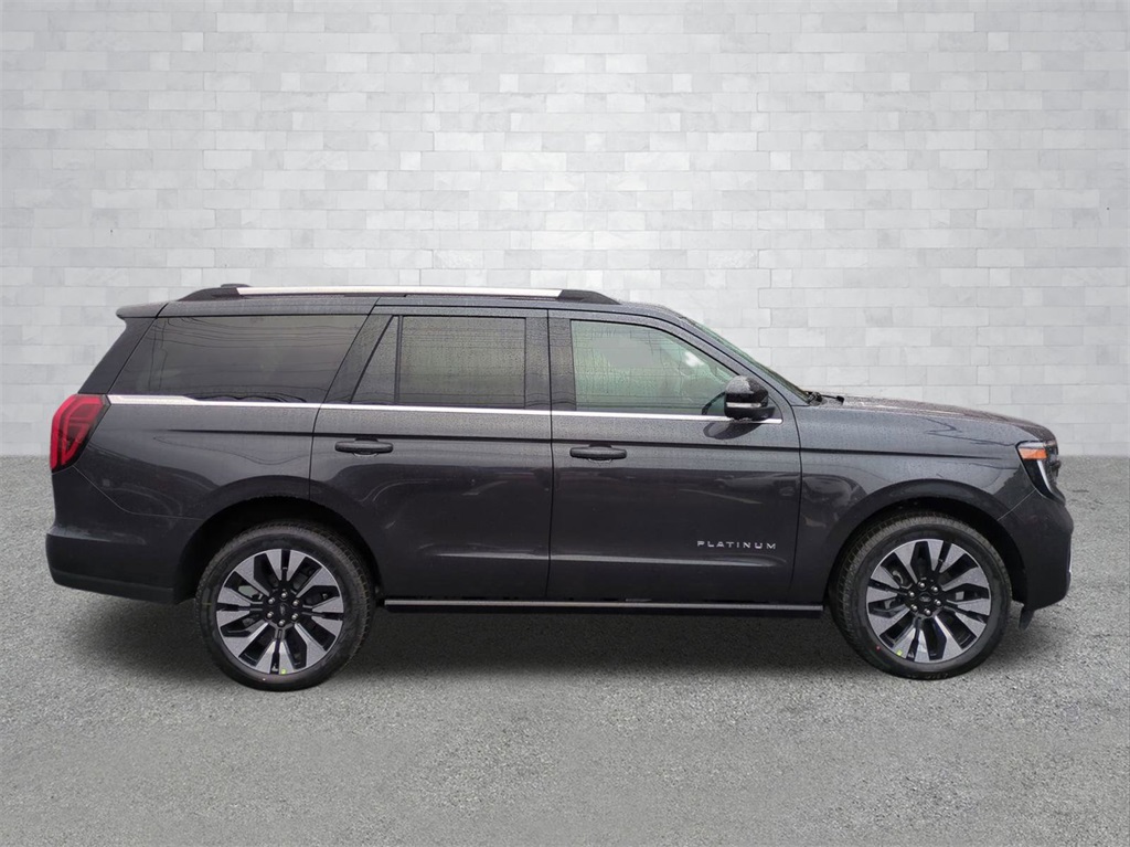 2025 Dark Matter Gray Metallic 2025 Ford Expedition Platinum 4WD EcoBoost 3.5L V6 GTDi DOHC 24V Twin Turbocharged 4WD. 4WD, 10 Speakers, 2nd Row Power-Folding Captain's Chairs, 3.73 Axle Ratio, 3rd row seats: split-bench, 4-Wheel Disc Brakes, ABS brakes, Adjustable pedals, Air Conditioning, Alloy wheels, AM/FM radio: SiriusXM with 360L, Apple CarPlay/Android Auto, Auto High-beam Headlights, Auto-dimming door mirrors, Auto-dimming Rear-View mirror, Automatic temperature control, Brake assist, Bumpers: body-color, Compass, Delay-off headlights, Driver door bin, Driver vanity mirror, Dual front impact airbags, Dual front side impact airbags, Electronic Stability Control, Emergency communication system: 911 Assist, Exterior Parking Camera Rear, Four wheel independent suspension, Front anti-roll bar, Front Bucket Seats, Front Center Armrest, Front dual zone A/C, Front reading lights, Fully automatic headlights, Garage door transmitter, Genuine wood dashboard insert, Genuine wood door panel insert, Heated & Ventilated Leather Front Captain's Chairs, Heated door mirrors, Heated front seats, Heated rear seats, Heated steering wheel, Illuminated entry, Leather steering wheel, Low tire pressure warning, Memory seat, Navigation System, Occupant sensing airbag, Outside temperature display, Overhead airbag, Overhead console, Panic alarm, Passenger door bin, Passenger vanity mirror, Pedal memory, Power door mirrors, Power driver seat, Power moonroof: Vista Roof, Power passenger seat, Power steering, Power windows, Radio data system, Radio: B&O Sound System by Bang & Olufsen, Rain sensing wipers, Rear air conditioning, Rear anti-roll bar, Rear reading lights, Rear window defroster, Rear window wiper, Reclining 3rd row seat, Remote keyless entry, Security system, SiriusXM w/360L, Speed control, Speed-sensing steering, Speed-Sensitive Wipers, Split folding rear seat, Spoiler, Steering wheel memory, Steering wheel mounted audio controls, Tachometer, Telescoping steering wheel, Tilt steering wheel, Traction control, Trip computer, Turn signal indicator mirrors, Variably intermittent wipers, Ventilated front seats, Voltmeter, and Wheels: 20" Ebony Bright Machined Aluminum Courtesy Ford and Lincoln of Rome 101 Hwy 411 E Rome, Ga 30161 ROMEFORDLINC.COM 706.235.4453.