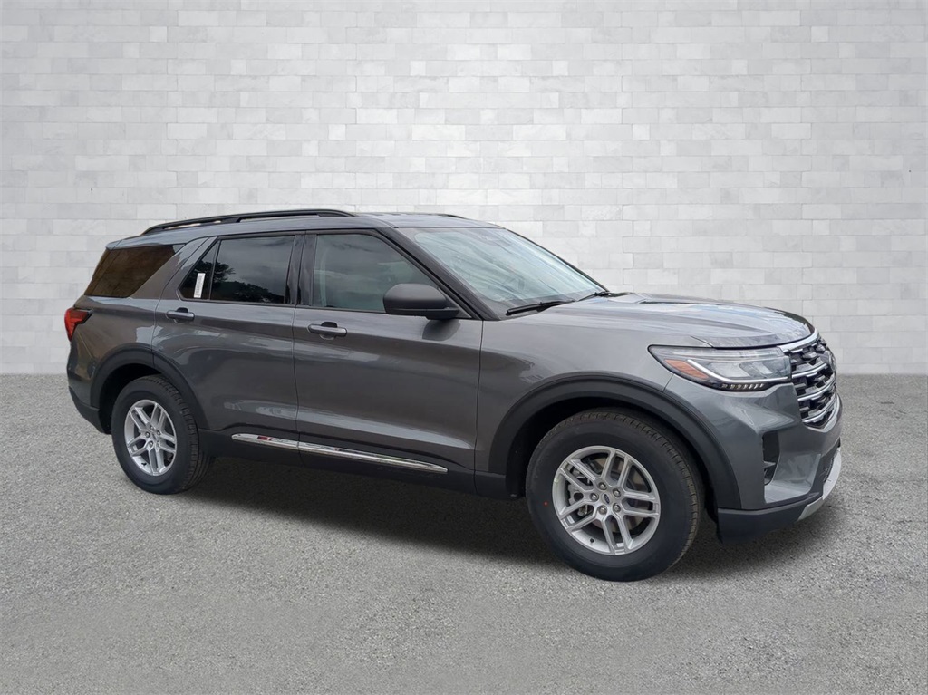 2025 Carbonized Gray Metallic 2025 Ford Explorer Active RWD 2.3L EcoBoost I-4 12.4" LCD Digital Driver Cluster, 13.2" LCD Centerstack Touchscreen, Android Auto, Apple Carplay, Auto LED Headlights, Backup Camera, Bluetooth w/ Audio Streaming, Hill Start Assist, Intersection Assist, LED Foglights, Push Button Start, Remote Start, Side-Wind Stabilization, 4D Sport Utility, 2.3L EcoBoost I-4, 10-Speed Automatic, RWD, Active Comfort Package, Equipment Group 200A Standard Package, Front Fascia, Heated ActiveX Seating Material Captain's Chairs, Heated Steering Wheel, Navigation System, Remote Start System, Second Row HVAC Controls, Universal Garage Door Opener (UGDO). Active Comfort Package (Front Fascia, Heated ActiveX Seating Material Captain's Chairs, Heated Steering Wheel, Remote Start System, Second Row HVAC Controls, and Universal Garage Door Opener (UGDO)), Equipment Group 200A Standard Package, 4D Sport Utility, 2.3L EcoBoost I-4, 10-Speed Automatic, RWD, Navigation System, 3.58 Non-Limited Slip Rear Axle, 3rd row seats: bench, 4-Wheel Disc Brakes, 6 Speakers, ABS brakes, Air Conditioning, Alloy wheels, AM/FM Stereo, Apple CarPlay/Android Auto, Auto High-beam Headlights, Automatic temperature control, Brake assist, Bumpers: body-color, Compass, Delay-off headlights, Driver door bin, Driver vanity mirror, Dual front impact airbags, Dual front side impact airbags, Electronic Stability Control, Emergency communication system: 911 Assist, Exterior Parking Camera Rear, Four wheel independent suspension, Front anti-roll bar, Front Bucket Seats, Front Center Armrest, Front dual zone A/C, Front reading lights, Fully automatic headlights, Heated door mirrors, Heated front seats, Illuminated entry, Knee airbag, Leather steering wheel, Low tire pressure warning, Occupant sensing airbag, Outside temperature display, Overhead airbag, Overhead console, Panic alarm, Passenger door bin, Passenger vanity mirror, Power door mirrors, Power driver seat, Power Liftgate, Power passenger seat, Power steering, Power windows, Rear air conditioning, Rear anti-roll bar, Rear reading lights, Rear window defroster, Rear window wiper, Remote keyless entry, Speed control, Speed-sensing steering, Speed-Sensitive Wipers, Split folding rear seat, Spoiler, Steering wheel mounted audio controls, Tachometer, Telescoping steering wheel, Tilt steering wheel, Traction control, Trip computer, Unique Heated Cloth Captain's Chairs, Variably intermittent wipers, and Wheels: 18" Sparkle Silver-Painted Aluminum Courtesy Ford and Lincoln of Rome 101 Hwy 411 E Rome, Ga 30161 ROMEFORDLINC.COM 706.235.4453.
