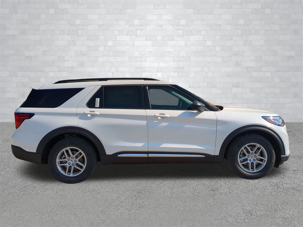 2025 Star White Metallic Tri-Coat 2025 Ford Explorer Active RWD 2.3L EcoBoost I-4 12.4" LCD Digital Driver Cluster, 13.2" LCD Centerstack Touchscreen, 3rd Row Seating, Android Auto, Apple Carplay, Auto LED Headlights, Backup Camera, Bluetooth w/ Audio Streaming, Hill Start Assist, Intersection Assist, LED Foglights, Multi Zone Climate Control, Side-Wind Stabilization, Tow Package, Trailer Package, 4D Sport Utility, 2.3L EcoBoost I-4, 10-Speed Automatic, RWD, Active Comfort Package, Equipment Group 200A Standard Package, Front Fascia, Heated ActiveX Seating Material Captain's Chairs, Heated Steering Wheel, Navigation System, Remote Start System, Second Row HVAC Controls, Universal Garage Door Opener (UGDO). Active Comfort Package (Front Fascia, Heated ActiveX Seating Material Captain's Chairs, Heated Steering Wheel, Remote Start System, Second Row HVAC Controls, and Universal Garage Door Opener (UGDO)), Equipment Group 200A Standard Package, 4D Sport Utility, 2.3L EcoBoost I-4, 10-Speed Automatic, RWD, Navigation System, 3.58 Non-Limited Slip Rear Axle, 3rd row seats: bench, 4-Wheel Disc Brakes, 6 Speakers, ABS brakes, Air Conditioning, Alloy wheels, AM/FM Stereo, Apple CarPlay/Android Auto, Auto High-beam Headlights, Automatic temperature control, Brake assist, Bumpers: body-color, Compass, Delay-off headlights, Driver door bin, Driver vanity mirror, Dual front impact airbags, Dual front side impact airbags, Electronic Stability Control, Emergency communication system: 911 Assist, Exterior Parking Camera Rear, Four wheel independent suspension, Front anti-roll bar, Front Bucket Seats, Front Center Armrest, Front dual zone A/C, Front reading lights, Fully automatic headlights, Heated door mirrors, Heated front seats, Illuminated entry, Knee airbag, Leather steering wheel, Low tire pressure warning, Occupant sensing airbag, Outside temperature display, Overhead airbag, Overhead console, Panic alarm, Passenger door bin, Passenger vanity mirror, Power door mirrors, Power driver seat, Power Liftgate, Power passenger seat, Power steering, Power windows, Rear air conditioning, Rear anti-roll bar, Rear reading lights, Rear window defroster, Rear window wiper, Remote keyless entry, Speed control, Speed-sensing steering, Speed-Sensitive Wipers, Split folding rear seat, Spoiler, Steering wheel mounted audio controls, Tachometer, Telescoping steering wheel, Tilt steering wheel, Traction control, Trip computer, Unique Heated Cloth Captain's Chairs, Variably intermittent wipers, and Wheels: 18" Sparkle Silver-Painted Aluminum Courtesy Ford and Lincoln of Rome 101 Hwy 411 E Rome, Ga 30161 ROMEFORDLINC.COM 706.235.4453.