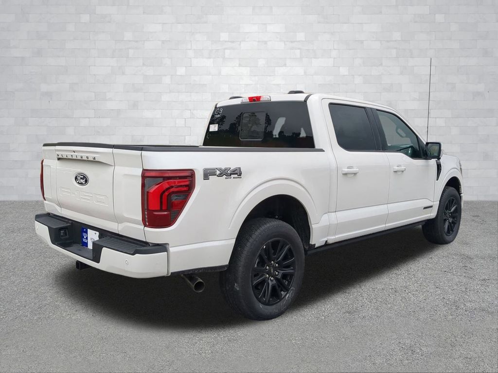 2025 Star White Metallic Tri-Coat 2025 Ford F-150 Platinum 4WD 3.5L PowerBoost Full-Hybrid V6 12" LCD Productivity Touchscreen, 360-Degree Camera, 5G WiFi Hotspot Telematics, Adaptive Cruise Control, Auto LED Headlights, Backup Camera, BlueCruise, Bluetooth w/ Audio Streaming, Lane Keeping System, Leather Seats, Memory Package, Off Road Package, Panoramic Sunroof/Moonroof, Parking Sensors, Post Collision Braking, Power Running Boards, Power Sliding Rear Window, Premium Sound Package, Push Button Start, Remote Start, Reverse Brake Assist, Reverse Sensing, Skid Plate Package, Tow Package, Trailer Package, 4D SuperCrew, 3.5L PowerBoost Full-Hybrid V6, 10-Speed Automatic, 4WD, 4x4 FX4 Off-Road Bodyside Decal, Electronic Locking w/3.73 Axle Ratio, Equipment Group 702A High, FX4 Off-Road Package, GVWR: 7,400 lbs Payload Package, Heads-Up Display, Hill Descent Control, Monotube Rear Shocks, Navigation system: Connected Navigation, Off-Road Tuned Front Shock Absorbers, Radio: B&O Unleashed Sound System by Bang & Olufsen, Rock Crawl Mode, Twin Panel Moonroof. Equipment Group 702A High (Heads-Up Display, Radio: B&O Unleashed Sound System by Bang & Olufsen, and Twin Panel Moonroof), FX4 Off-Road Package (4x4 FX4 Off-Road Bodyside Decal, Hill Descent Control, Monotube Rear Shocks, Off-Road Tuned Front Shock Absorbers, and Rock Crawl Mode), GVWR: 7,400 lbs Payload Package, 4D SuperCrew, 3.5L PowerBoost Full-Hybrid V6, 10-Speed Automatic, 4WD, Electronic Locking w/3.73 Axle Ratio, Navigation system: Connected Navigation, 4-Wheel Disc Brakes, 8 Speakers, ABS brakes, Adjustable pedals, Air Conditioning, Alloy wheels, Auto High-beam Headlights, Auto tilt-away steering wheel, Auto-dimming door mirrors, Auto-dimming Rear-View mirror, Automatic temperature control, Brake assist, Bumpers: body-color, Compass, Delay-off headlights, Driver door bin, Driver vanity mirror, Dual front impact airbags, Dual front side impact airbags, Electronic Stability Control, Emergency communication system: SYNC 4 911 Assist, Front anti-roll bar, Front Bucket Seats, Front Center Armrest, Front dual zone A/C, Front fog lights, Front reading lights, Front wheel independent suspension, Fully automatic headlights, Garage door transmitter, Heated door mirrors, Heated front seats, Heated rear seats, Heated steering wheel, Illuminated entry, Leather steering wheel, Low tire pressure warning, Memory seat, Occupant sensing airbag, Outside temperature display, Overhead airbag, Overhead console, Panic alarm, Passenger door bin, Passenger vanity mirror, Pedal memory, Power door mirrors, Power driver seat, Power passenger seat, Power steering, Power windows, Radio data system, Rain sensing wipers, Rear reading lights, Rear seat center armrest, Rear step bumper, Rear window defroster, Remote keyless entry, Security system, Speed control, Split folding rear seat, Steering wheel memory, Steering wheel mounted audio controls, Tachometer, Telescoping steering wheel, Tilt steering wheel, Traction control, Trip computer, Turn signal indicator mirrors, Unique Multi-Contour Leather Bucket Seats, Variably intermittent wipers, Ventilated front seats, Voltmeter, and Wheels: 20" Painted Gloss Ebony Black Courtesy Ford and Lincoln of Rome 101 Hwy 411 E Rome, Ga 30161 ROMEFORDLINC.COM 706.235.4453. Price includes dealer added accessories.