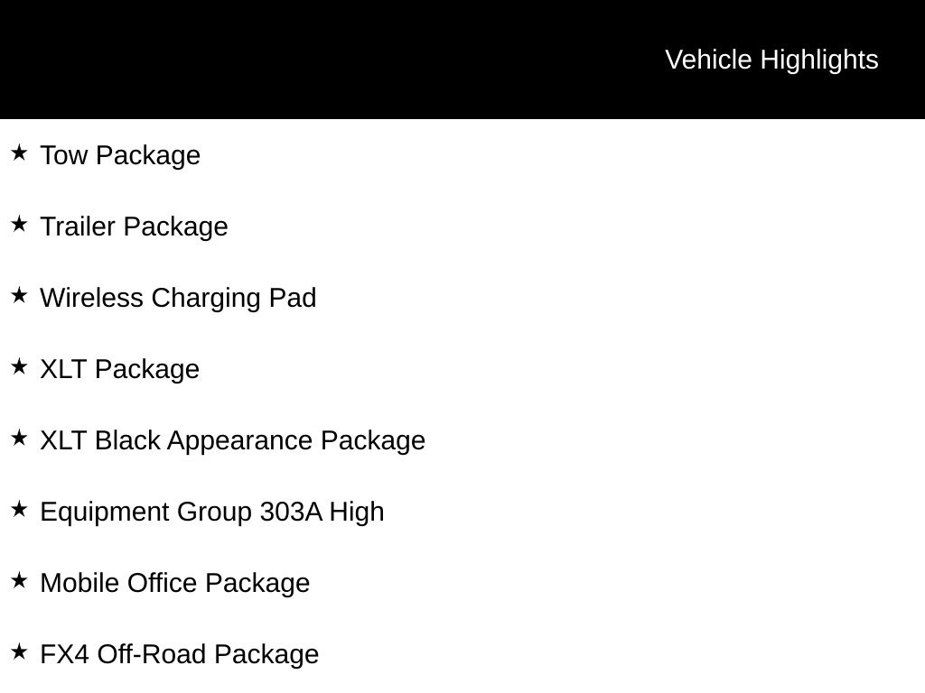 2025 Agate Black Metallic 2025 Ford F-150 XLT 4WD 3.5L PowerBoost Full-Hybrid V6 12" LCD Productivity Touchscreen, 5G WiFi Hotspot Telematics, Auto Emergency Braking, Auto LED Headlights, Backup Camera, Blind Spot Monitoring, BLIS w/ Cross Traffic Alert, Bluetooth w/ Audio Streaming, Lane Keeping System, Off Road Package, Parking Sensors, Power Sliding Rear Window, Premium Sound Package, Reverse Brake Assist, Reverse Sensing, Skid Plate Package, Tow Package, Trailer Package, Wireless Charging Pad, XLT Package, 4D SuperCrew, 3.5L PowerBoost Full-Hybrid V6, 10-Speed Automatic, 4WD, 360 Degree Camera, 4 Pickup Box Tie-Down Plates, 400W Cab & Bed Outlets, 4x4 FX4 Off-Road Bodyside Decal, 6" Angular Bright Anodized Step Bar, 6" Black Running Boards, Adaptive Cruise Control w/Stop & Go, Auto-Dimming Rear-View Mirror, Bed Utility Package, Black Exterior Badging, Black Grille, Black Painted Grille w/Chrome Center Bar, Body-Color Front & Rear Bumpers, Chrome Door & Tailgate Handles, Chrome Single-Tip Exhaust, Cloth 40/Console/40 Front Seats, Connected Navigation, Console Worksurface, Dark Interior Appliques, Driver State Detection, Dual-Zone Electronic Automatic Temperature Control, Electronic Locking w/3.73 Axle Ratio, Equipment Group 303A High, Evasive Steering Assist, Floor Shifter, Ford Co-Pilot360 Assist 2.0, Front Parking Sensors, FX4 Off-Road Package, Gray Box Side Decal, Heated Front Seats, Hill Descent Control, Intelligent Access w/Push Button Start, LED Box Lighting, Mobile Office Package, Monotube Rear Shocks, Off-Road Tuned Front Shock Absorbers, Partitioned Lockable Rear Storage, Power Glass Heated Sideview Mirrors, Power-Adjustable Pedals, Power-Sliding Rear Window, Radio: B&O Sound System by Bang & Olufsen, Remote Start System w/Remote Tailgate Release, Rock Crawl Mode, Tailgate Step w/Tailgate Work Surface, Towing Technology, Tray Style Floor Liner w/o Carpet Mats, Unique Sport Cloth 40/Console/40 Front-Seats, Wheels: 18" Gloss Black, Wheels: 20" Chrome-Like PVD, Wrapped Steering Wheel, XLT Black Appearance Package. Bed Utility Package (4 Pickup Box Tie-Down Plates, LED Box Lighting, and Tailgate Step w/Tailgate Work Surface), Equipment Group 303A High (360 Degree Camera, 400W Cab & Bed Outlets, 6" Angular Bright Anodized Step Bar, Adaptive Cruise Control w/Stop & Go, Auto-Dimming Rear-View Mirror, Black Painted Grille w/Chrome Center Bar, Chrome Door & Tailgate Handles, Chrome Single-Tip Exhaust, Connected Navigation, Driver State Detection, Dual-Zone Electronic Automatic Temperature Control, Evasive Steering Assist, Ford Co-Pilot360 Assist 2.0, Front Parking Sensors, Heated Front Seats, Intelligent Access w/Push Button Start, Power Glass Heated Sideview Mirrors, Power-Adjustable Pedals, Power-Sliding Rear Window, Radio: B&O Sound System by Bang & Olufsen, Remote Start System w/Remote Tailgate Release, Towing Technology, Wheels: 20" Chrome-Like PVD, and Wrapped Steering Wheel), FX4 Off-Road Package (4x4 FX4 Off-Road Bodyside Decal, Hill Descent Control, Monotube Rear Shocks, Off-Road Tuned Front Shock Absorbers, Rock Crawl Mode, and Tray Style Floor Liner w/o Carpet Mats), Mobile Office Package (Console Worksurface and Partitioned Lockable Rear Storage), XLT Black Appearance Package (6" Black Running Boards, Black Exterior Badging, Black Grille, Body-Color Front & Rear Bumpers, Dark Interior Appliques, Floor Shifter, Gray Box Side Decal, Unique Sport Cloth 40/Console/40 Front-Seats, and Wheels: 18" Gloss Black), 4D SuperCrew, 3.5L PowerBoost Full-Hybrid V6, 10-Speed Automatic, 4WD, Cloth 40/Console/40 Front Seats, Electronic Locking w/3.73 Axle Ratio, 4-Wheel Disc Brakes, 6 Speakers, ABS brakes, Air Conditioning, Alloy wheels, Auto High-beam Headlights, Brake assist, Bumpers: chrome, Chrome wheels, Cloth 40/20/40 Front Seat, Compass, Delay-off headlights, Driver door bin, Driver vanity mirror, Dual Price includes dealer added acce