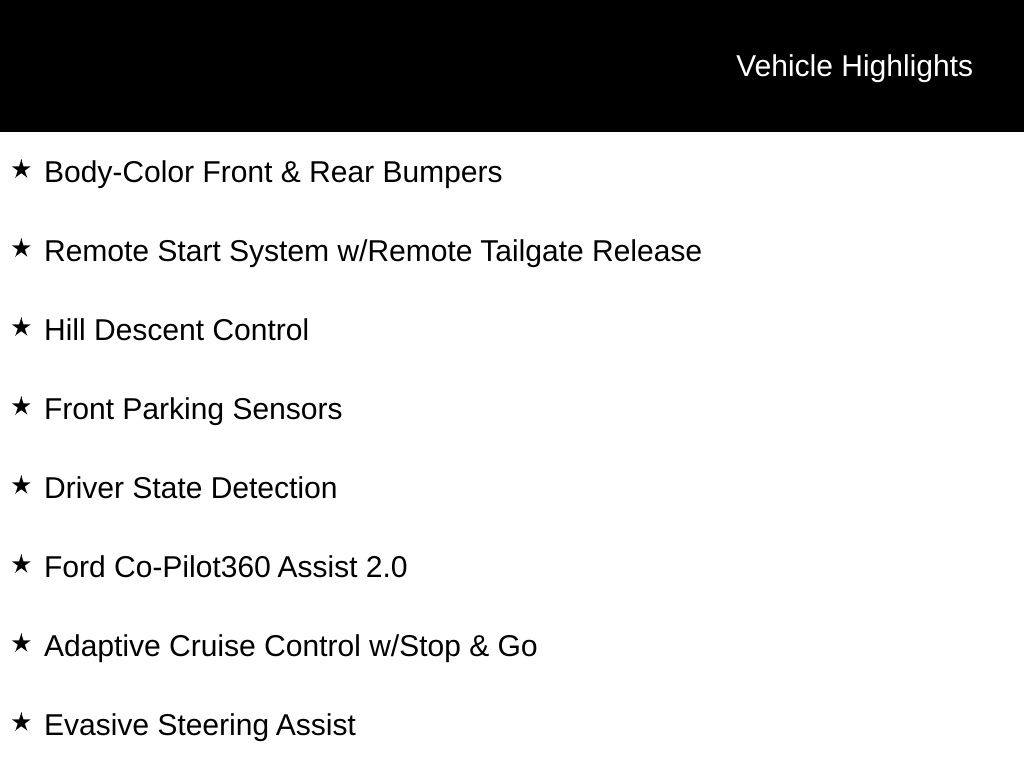 2025 Rapid Red Metallic Tinted Clearcoat 2025 Ford F-150 XLT 4WD 3.5L V6 EcoBoost 12" LCD Productivity Touchscreen, 5G WiFi Hotspot Telematics, Auto Emergency Braking, Auto LED Headlights, Backup Camera, Blind Spot Monitoring, BLIS w/ Cross Traffic Alert, Bluetooth w/ Audio Streaming, Lane Keeping System, Parking Sensors, Post Collision Braking, Power Mirror Package, Power Package, Power Sliding Rear Window, Pre Collision Assist w/ AEB, Reverse Brake Assist, Reverse Sensing, Tow Package, Trailer Package, XLT Package, 4D SuperCrew, 3.5L V6 EcoBoost, 10-Speed Automatic, 4WD, 360 Degree Camera, 400W Cab & Bed Outlets, 4x4 FX4 Off-Road Bodyside Decal, 6" Angular Bright Anodized Step Bar, 6" Black Running Boards, Adaptive Cruise Control w/Stop & Go, Auto-Dimming Rear-View Mirror, Black Exterior Badging, Black Grille, Black Painted Grille w/Chrome Center Bar, Body-Color Front & Rear Bumpers, Chrome Door & Tailgate Handles, Chrome Single-Tip Exhaust, Cloth 40/Console/40 Front Seats, Connected Navigation, Dark Interior Appliques, Driver State Detection, Dual-Zone Electronic Automatic Temperature Control, Electronic Locking w/3.55 Axle Ratio, Equipment Group 302A Mid, Evasive Steering Assist, Floor Shifter, Ford Co-Pilot360 Assist 2.0, Front Parking Sensors, FX4 Off-Road Package, Gray Box Side Decal, GVWR: 7,100 lbs Payload Package, Heated Front Seats, Hill Descent Control, Integrated Trailer Brake Controller, Intelligent Access w/Push Button Start, Monotube Rear Shocks, Off-Road Tuned Front Shock Absorbers, Power Glass Heated Sideview Mirrors, Power-Sliding Rear Window, Remote Start System w/Remote Tailgate Release, Rock Crawl Mode, Tow/Haul Package, Towing Technology, Tray Style Floor Liner w/o Carpet Mats, Unique Sport Cloth 40/Console/40 Front-Seats, Wheels: 18" Gloss Black, Wrapped Steering Wheel, XLT Black Appearance Package. Equipment Group 302A Mid (360 Degree Camera, 400W Cab & Bed Outlets, 6" Angular Bright Anodized Step Bar, Adaptive Cruise Control w/Stop & Go, Auto-Dimming Rear-View Mirror, Black Painted Grille w/Chrome Center Bar, Chrome Door & Tailgate Handles, Chrome Single-Tip Exhaust, Cloth 40/Console/40 Front Seats, Connected Navigation, Driver State Detection, Dual-Zone Electronic Automatic Temperature Control, Evasive Steering Assist, Ford Co-Pilot360 Assist 2.0, Front Parking Sensors, Heated Front Seats, Intelligent Access w/Push Button Start, Power Glass Heated Sideview Mirrors, Power-Sliding Rear Window, Remote Start System w/Remote Tailgate Release, Towing Technology, and Wrapped Steering Wheel), FX4 Off-Road Package (4x4 FX4 Off-Road Bodyside Decal, Hill Descent Control, Monotube Rear Shocks, Off-Road Tuned Front Shock Absorbers, Rock Crawl Mode, and Tray Style Floor Liner w/o Carpet Mats), GVWR: 7,100 lbs Payload Package, Tow/Haul Package (Integrated Trailer Brake Controller), XLT Black Appearance Package (6" Black Running Boards, Black Exterior Badging, Black Grille, Body-Color Front & Rear Bumpers, Dark Interior Appliques, Floor Shifter, Gray Box Side Decal, Unique Sport Cloth 40/Console/40 Front-Seats, and Wheels: 18" Gloss Black), 4D SuperCrew, 3.5L V6 EcoBoost, 10-Speed Automatic, 4WD, Electronic Locking w/3.55 Axle Ratio, 4-Wheel Disc Brakes, 6 Speakers, ABS brakes, Air Conditioning, Alloy wheels, AM/FM radio: SiriusXM with 360L, Auto High-beam Headlights, Brake assist, Bumpers: chrome, Chrome wheels, Cloth 40/20/40 Front Seat, Compass, Delay-off headlights, Driver door bin, Driver vanity mirror, Dual front impact airbags, Dual front side impact airbags, Electronic Stability Control, Emergency communication system: SYNC 4 911 Assist, Front anti-roll bar, Front Center Armrest, Front fog lights, Front reading lights, Front wheel independent suspension, Fully automatic headlights, Heated door mirrors, Illuminated entry, Low tire pressure warning, Occupant sensing airbag, Outside tempera Price includes dealer added acce