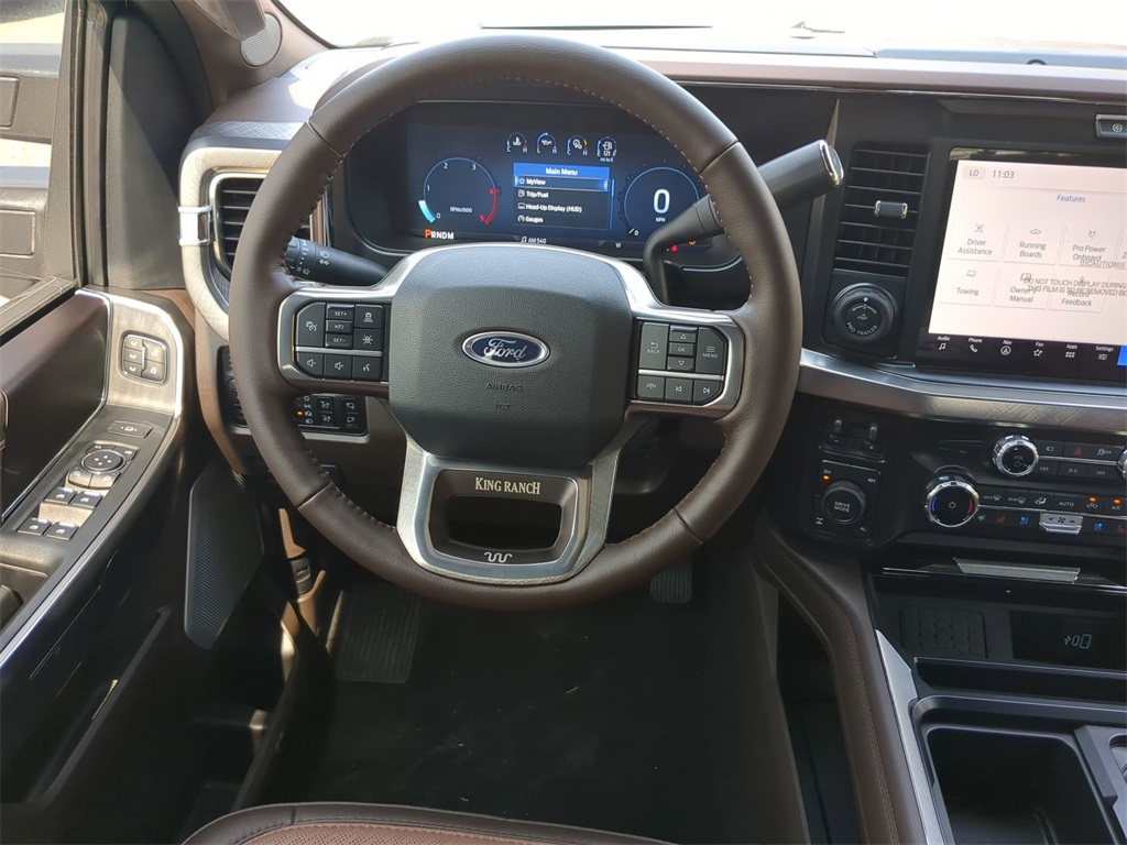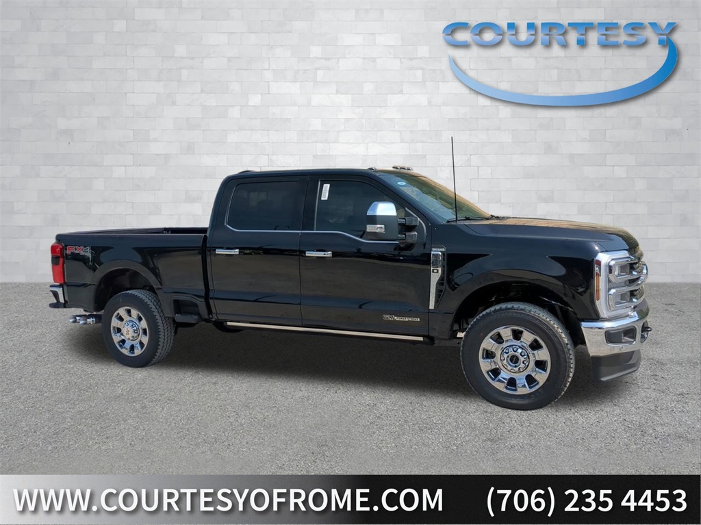 2025 Agate Black Metallic 2025 Ford F-250SD King Ranch 4WD Power Stroke 6.7L V8 DI 32V OHV Turbodiesel 12" LCD Productivity Touchscreen, 360-Degree Camera, 5G WiFi Hotspot Telematics, Adaptive Cruise Control, Auto LED Headlights, Backup Camera, Bluetooth w/ Audio Streaming, King Ranch Package, Leather Seats, Memory Package, Off Road Package, Panoramic Sunroof/Moonroof, Power Mirror Package, Power Package, Skid Plate Package, Tow Package, Trailer Package, Wireless Charging Pad, 4D Crew Cab, Power Stroke 6.7L V8 DI 32V OHV Turbodiesel, 10-Speed Automatic, 4WD, 410 Amp Dual Alternators, ABS brakes, Alloy wheels, Compass, Electronic Stability Control, Emergency communication system: SYNC 4 911 Assist, Engine Block Heater, Front dual zone A/C, Heated door mirrors, Heated front seats, Heated rear seats, Illuminated entry, Low tire pressure warning, Navigation System, Pro Power Onboard - 2kW, Radio: B&O Unleashed Sound System by Bang & Olufsen, Rapid-Heat Supplemental Cab Heater, Rear window defroster, Remote keyless entry, Traction control, Twin Panel Power Moonroof, Upfitter Switches (6). 4D Crew Cab, Power Stroke 6.7L V8 DI 32V OHV Turbodiesel, 10-Speed Automatic, 4WD, 410 Amp Dual Alternators, ABS brakes, Alloy wheels, Compass, Electronic Stability Control, Emergency communication system: SYNC 4 911 Assist, Engine Block Heater, Front dual zone A/C, Heated door mirrors, Heated front seats, Heated rear seats, Illuminated entry, Low tire pressure warning, Navigation System, Pro Power Onboard - 2kW, Radio: B&O Unleashed Sound System by Bang & Olufsen, Rapid-Heat Supplemental Cab Heater, Rear window defroster, Remote keyless entry, Traction control, Twin Panel Power Moonroof, Upfitter Switches (6), 14 Speakers, 4-Wheel Disc Brakes, Adjustable pedals, Air Conditioning, AM/FM radio: SiriusXM with 360L, Auto High-beam Headlights, Auto tilt-away steering wheel, Auto-dimming Rear-View mirror, Automatic temperature control, Brake assist, Delay-off headlights, Driver door bin, Driver vanity mirror, Dual front impact airbags, Dual front side impact airbags, Flow-Through Console, Front anti-roll bar, Front Bucket Seats, Front Center Armrest, Front fog lights, Front reading lights, Fully automatic headlights, Garage door transmitter, Heads-Up Display, Heated steering wheel, Leather steering wheel, Memory seat, Outside temperature display, Overhead airbag, Overhead console, Panic alarm, Passenger door bin, Passenger vanity mirror, Pedal memory, Power door mirrors, Power driver seat, Power passenger seat, Power steering, Power windows, Rain sensing wipers, Rear reading lights, Rear seat center armrest, Rear step bumper, Security system, Speed control, Split folding rear seat, Steering wheel memory, Steering wheel mounted A/C controls, Steering wheel mounted audio controls, Tachometer, Telescoping steering wheel, Tilt steering wheel, Trip computer, Turn signal indicator mirrors, Unique King Ranch Leather 40/Console/40 Seats, Variably intermittent wipers, Ventilated front seats, and Wheels: 20" Bright Machined Cast Aluminum Courtesy Ford and Lincoln of Rome 101 Hwy 411 E Rome, Ga 30161 ROMEFORDLINC.COM 706.235.4453. Price includes dealer added accessories.