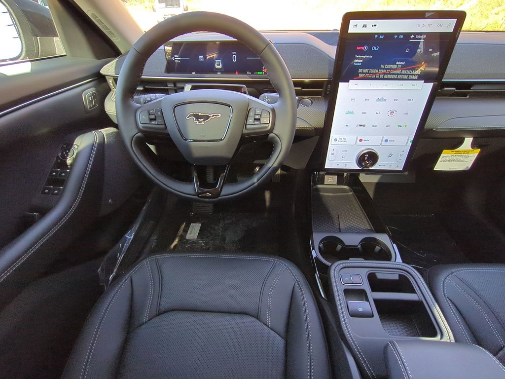 2025 Shadow Black 2025 Ford Mustang Mach-E Premium AWD Dual Electric Motor 10.2" Digital Driver Cluster, 15.5" Color Touchscreen, 360-Degree Camera, Auto LED Headlights, Backup Camera, LED Projector Headlights, Panoramic Sunroof/Moonroof, Wireless Charging Pad, 4D Sport Utility, Dual Electric Motor, Single-Speed Automatic, AWD, Equipment Group 300A Standard Package, Mobile Power Cord (120V/240V), NACS Fast Charging Adapter, Navigation system: Connected Navigation. Equipment Group 300A Standard Package, 4D Sport Utility, Dual Electric Motor, Single-Speed Automatic, AWD, Mobile Power Cord (120V/240V), NACS Fast Charging Adapter, Navigation system: Connected Navigation, 10 Speakers, 4-Wheel Disc Brakes, ABS brakes, Air Conditioning, Alloy wheels, AM/FM radio: SiriusXM with 360L, Apple CarPlay/Android Auto, Auto High-beam Headlights, Auto-dimming Rear-View mirror, Automatic temperature control, Brake assist, Bumpers: body-color, Compass, Delay-off headlights, Driver door bin, Driver vanity mirror, Dual front impact airbags, Dual front side impact airbags, Electronic Stability Control, Emergency communication system: 911 Assist, Exterior Parking Camera Rear, Four wheel independent suspension, Front anti-roll bar, Front Bucket Seats, Front Center Armrest, Front dual zone A/C, Front reading lights, Fully automatic headlights, Garage door transmitter, Heated door mirrors, Heated front seats, Heated steering wheel, Heated/Ventilated Perforated ActiveX Bucket Seats, Illuminated entry, Knee airbag, Low tire pressure warning, Memory seat, Occupant sensing airbag, Outside temperature display, Overhead airbag, Overhead console, Panic alarm, Passenger door bin, Passenger vanity mirror, Power door mirrors, Power driver seat, Power Liftgate, Power passenger seat, Power steering, Power windows, Radio data system, Radio: B&O Sound System by Bang & Olufsen, Rain sensing wipers, Rear anti-roll bar, Rear seat center armrest, Rear side impact airbag, Rear window defroster, Rear window wiper, Remote keyless entry, Security system, SiriusXM w/360L, Speed control, Speed-sensing steering, Speed-Sensitive Wipers, Split folding rear seat, Spoiler, Steering wheel mounted audio controls, SYNC 4A w/Enhanced Voice Recognition, Telescoping steering wheel, Tilt steering wheel, Traction control, Trip computer, Turn signal indicator mirrors, Variably intermittent wipers, Ventilated front seats, and Wheels: 19" Bright Machined-Face Aluminum Courtesy Ford and Lincoln of Rome 101 Hwy 411 E Rome, Ga 30161 ROMEFORDLINC.COM 706.235.4453.