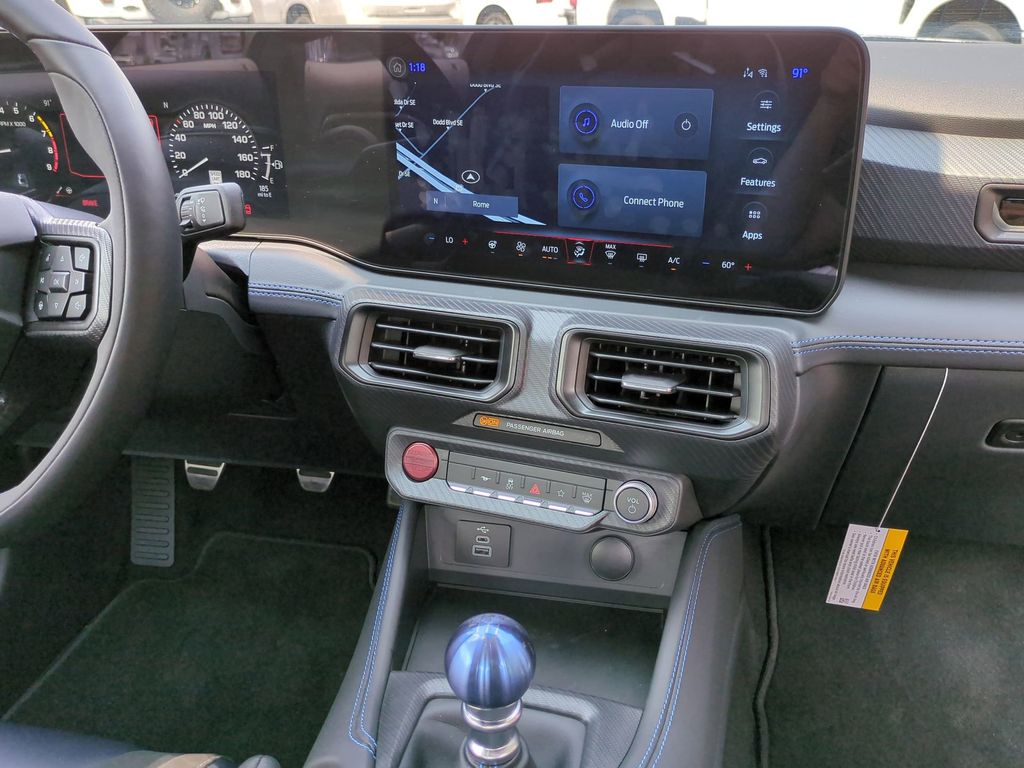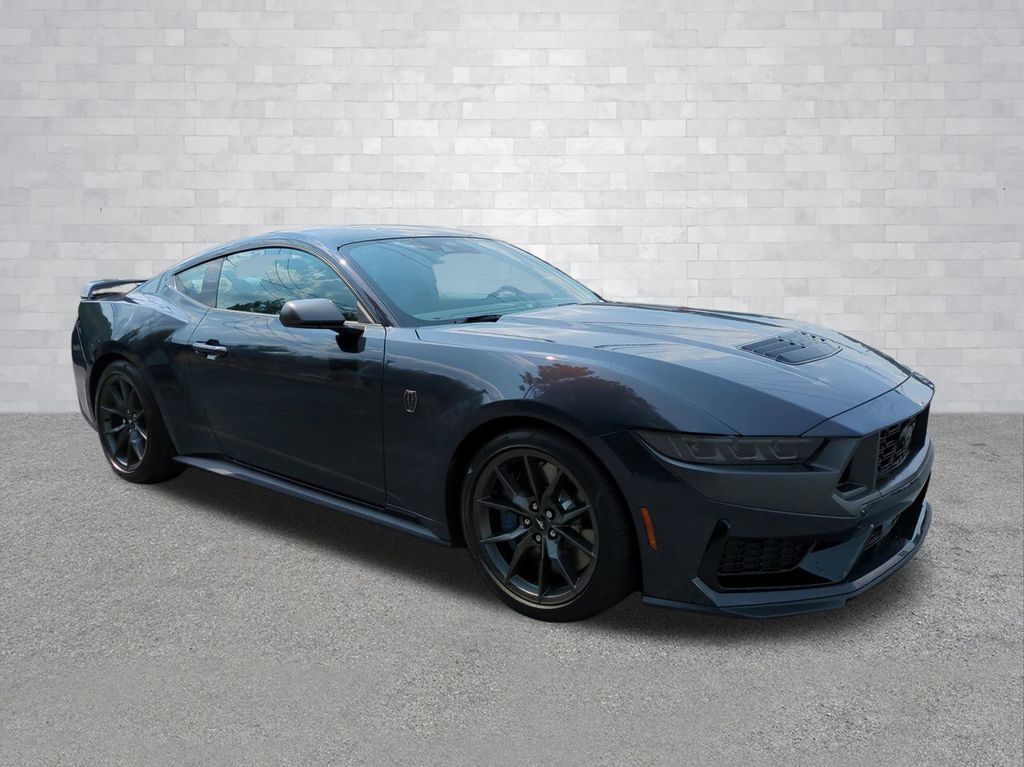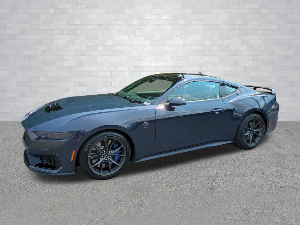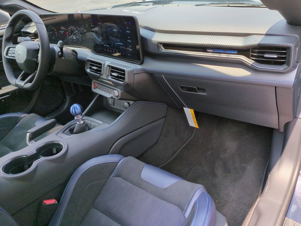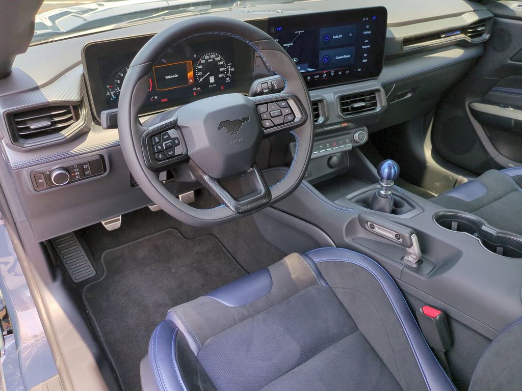 2025 Blue 2025 Ford Mustang Dark Horse RWD 5.0L V8 DOHC 32V 12.4" LCD Digital Driver Cluster, 13.2" LCD Centerstack Touchscreen, 4G WiFi Hotspot Telematics, Active Valve Performance Exhaust, Auto LED Headlights, Backup Camera, Bluetooth w/ Audio Streaming, Performance Handling Package, Performance Package, Power Mirror Package, Power Package, Push Button Start, 2D Coupe, 5.0L V8 DOHC 32V, Tremec 6-Speed Manual, RWD, 3.55 TORSEN Limited Slip Rear Axle, Active Anti-Theft System, Aluminum Foot Pedals, Approach Detection, Cloth/Vinyl Climate-Controlled Bucket Seats, Dark Horse Appearance Package, Driver Seat & Mirrors Memory, Equipment Group 700A Deluxe Package, Locking Center Console, Navigation system: Connected Navigation, Notorious Blue Painted Brake Calipers, Painted Black Roof, RECARO Micro-Suede/Vinyl Bucket Seats, RECARO Sport Seats, Security Package, Unique Hood Graphic, Universal Garage Door Opener (UGDO), Wheel Locking Kit. Dark Horse Appearance Package (Notorious Blue Painted Brake Calipers, Painted Black Roof, and Unique Hood Graphic), Equipment Group 700A Deluxe Package (Aluminum Foot Pedals, Approach Detection, Cloth/Vinyl Climate-Controlled Bucket Seats, Driver Seat & Mirrors Memory, and Universal Garage Door Opener (UGDO)), RECARO Sport Seats (RECARO Micro-Suede/Vinyl Bucket Seats), Security Package (Active Anti-Theft System, Locking Center Console, and Wheel Locking Kit), 2D Coupe, 5.0L V8 DOHC 32V, Tremec 6-Speed Manual, RWD, 3.55 TORSEN Limited Slip Rear Axle, Navigation system: Connected Navigation, 12 Speakers, 4-Wheel Disc Brakes, ABS brakes, Adaptive suspension, Air Conditioning, Alloy wheels, AM/FM radio: SiriusXM with 360L, AM/FM Stereo, Auto High-beam Headlights, Auto-dimming Rear-View mirror, Automatic temperature control, B&O Sound System by Bang & Olufsen, Brake assist, Bumpers: body-color, Cloth/Vinyl Heated Bucket Seats, Compass, Delay-off headlights, Driver door bin, Driver vanity mirror, Dual front impact airbags, Dual front side impact airbags, Electronic Stability Control, Emergency communication system: 911 Assist, Exterior Parking Camera Rear, Four wheel independent suspension, Front anti-roll bar, Front Bucket Seats, Front Center Armrest, Front dual zone A/C, Front reading lights, Fully automatic headlights, HD Radio, Heated front seats, Heated steering wheel, Hood Accent Stripe Delete, Illuminated entry, Knee airbag, Low tire pressure warning, Occupant sensing airbag, Outside temperature display, Overhead airbag, Overhead console, Panic alarm, Passenger door bin, Passenger vanity mirror, Power door mirrors, Power driver seat, Power passenger seat, Power steering, Power windows, Radio data system, Rain sensing wipers, Rear anti-roll bar, Rear Parking Sensors, Rear window defroster, Remote keyless entry, SiriusXM w/360L, Speed control, Speed-sensing steering, Speed-Sensitive Wipers, Split folding rear seat, Spoiler, Sport steering wheel, Steering wheel mounted audio controls, SYNC 4, Tachometer, Telescoping steering wheel, Tilt steering wheel, Traction control, Trip computer, Voltmeter, and Wheels: 19" x 9.5" Fr & 19" x 10" Rr Aluminum Courtesy Ford and Lincoln of Rome 101 Hwy 411 E Rome, Ga 30161 ROMEFORDLINC.COM 706.235.4453.