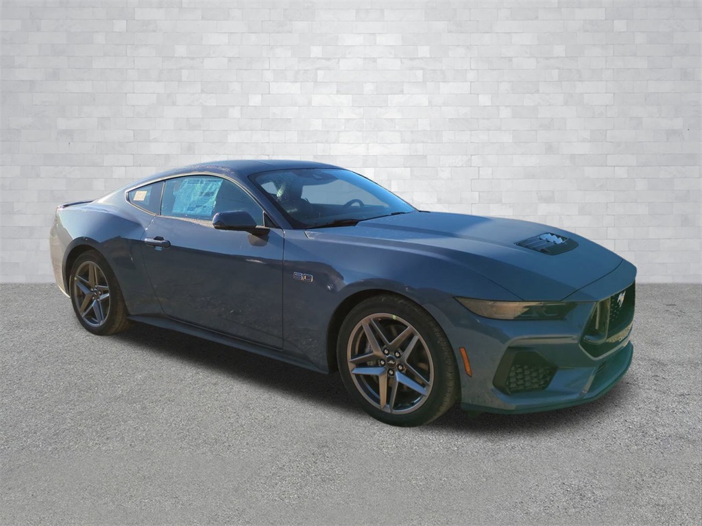 2025 Vapor Blue Metallic 2025 Ford Mustang GT Premium RWD 5.0L V8 Ti-VCT 12.4" LCD Digital Driver Cluster, 13.2" LCD Centerstack Touchscreen, 4G WiFi Hotspot Telematics, Active Exhaust, Auto LED Headlights, Backup Camera, Bluetooth w/ Audio Streaming, Power Mirror Package, Power Package, Push Button Start, 2D Coupe, 5.0L V8 Ti-VCT, RWD, 3.55 Limited Slip Rear Axle, ABS brakes, Active Anti-Theft System, Alloy wheels, Compass, Connected Navigation, Driver Seat & Mirrors Memory, Electronic Stability Control, Equipment Group 401A High Package, Ford Co-Pilot360 Assist+, Front dual zone A/C, Heated door mirrors, Heated front seats, Illuminated Door-Sill Scuff Plates, Illuminated entry, Integrated Turn Signals, Leather-Trimmed Bucket Seats w/Color Accents, Locking Center Console, Low tire pressure warning, Pre-Collision Assist w/Automatic Emergency Braking, Rain sensing wipers, Remote keyless entry, Security Package, Traction control, Wheel Locking Kit. Equipment Group 401A High Package (Driver Seat & Mirrors Memory, Illuminated Door-Sill Scuff Plates, Integrated Turn Signals, and Leather-Trimmed Bucket Seats w/Color Accents), Ford Co-Pilot360 Assist+ (Connected Navigation and Pre-Collision Assist w/Automatic Emergency Braking), Security Package (Active Anti-Theft System, Locking Center Console, and Wheel Locking Kit), 2D Coupe, 5.0L V8 Ti-VCT, RWD, 3.55 Limited Slip Rear Axle, ABS brakes, Alloy wheels, Compass, Electronic Stability Control, Front dual zone A/C, Heated door mirrors, Heated front seats, Illuminated entry, Low tire pressure warning, Rain sensing wipers, Remote keyless entry, Traction control, 4-Wheel Disc Brakes, 9 Speakers, Air Conditioning, AM/FM radio: SiriusXM with 360L, AM/FM Stereo, Auto High-beam Headlights, Auto-dimming Rear-View mirror, Automatic temperature control, Brake assist, Bumpers: body-color, Climate Controlled Heated/Cooled Front Seats, Delay-off headlights, Driver door bin, Driver vanity mirror, Dual front impact airbags, Dual front side impact airbags, Emergency communication system: 911 Assist, Exterior Parking Camera Rear, Four wheel independent suspension, Front anti-roll bar, Front Bucket Seats, Front Center Armrest, Front reading lights, Fully automatic headlights, Garage door transmitter, HD Radio, Heated steering wheel, Knee airbag, Leather Shift Knob, Leather steering wheel, Leather-Trimmed Bucket Seats, Occupant sensing airbag, Outside temperature display, Overhead airbag, Overhead console, Panic alarm, Passenger door bin, Passenger vanity mirror, Power door mirrors, Power driver seat, Power passenger seat, Power steering, Power windows, Radio data system, Rear anti-roll bar, Rear Parking Sensors, Rear window defroster, SiriusXM w/360L, Speed control, Speed-sensing steering, Speed-Sensitive Wipers, Split folding rear seat, Spoiler, Sport steering wheel, Steering wheel mounted audio controls, SYNC 4, Tachometer, Telescoping steering wheel, Tilt steering wheel, Trip computer, Turn signal indicator mirrors, Ventilated front seats, Voltmeter, and Wheels: 19" x 8.5" Shadow Silver-Painted Aluminum Courtesy Ford and Lincoln of Rome 101 Hwy 411 E Rome, Ga 30161 ROMEFORDLINC.COM 706.235.4453.