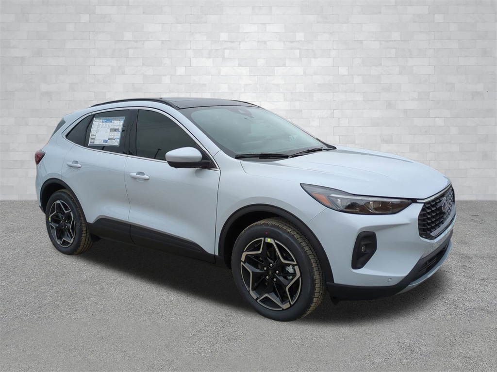 2026 Space Silver Metallic 2026 Ford Escape Hybrid Platinum AWD 2.5L iVCT 2.5L iVCT. Class II Trailer Tow Package, Equipment Group 600A (10-Way Power Driver's Seat w/Memory, 2.91 Axle Ratio, 6-Way Power Front Passenger Seat, ActiveX Trimmed Heated Front Sport Contour Bucket Seats with Mini-Perforations, Connected Navigation (1-Year Included), Electronic Fuel Door Release, Ford App, Neutral Towing Capability, Pedestrian Alert Sounder, Radio: AM/FM Stereo with SiriusXM 360L, SYNC 4 with Enhanced Voice Recognition, and Wheels: 19" Machined-Face Ebony-Painted Aluminum), Premium Technology Package (360-Degree Camera with Split View, ActiveX Trimmed Heated Front Sport Contour Bucket Seats with Quilting Design, B&O Sound System by Bang & Olufsen, Front Parking Sensors, HD Radio, Head-Up Display, and Reverse Brake Assist), 2.5L iVCT, 4-Wheel Disc Brakes, 6 Speakers, ABS brakes, Air Conditioning, Alloy wheels, AM/FM radio: SiriusXM 360L, Auto High-beam Headlights, Auto-dimming Rear-View mirror, Automatic temperature control, Black Roof-Rack Side Rails, Brake assist, Bumpers: body-color, Compass, Delay-off headlights, Driver door bin, Driver vanity mirror, Dual front impact airbags, Dual front side impact airbags, Electronic Stability Control, Emergency communication system: SYNC 4 911 Assist, Four wheel independent suspension, Front anti-roll bar, Front Bucket Seats, Front Center Armrest, Front dual zone A/C, Front fog lights, Front reading lights, Fully automatic headlights, Heated door mirrors, Heated front seats, Heated steering wheel, Illuminated entry, Knee airbag, Low tire pressure warning, Memory seat, Navigation system: Connected Navigation, Occupant sensing airbag, Outside temperature display, Overhead airbag, Overhead console, Panic alarm, Panoramic Vista Roof, Passenger door bin, Passenger vanity mirror, Power door mirrors, Power driver seat, Power Liftgate, Power passenger seat, Power steering, Power windows, Radio data system, Rear anti-roll bar, Rear Parking Sensors, Rear reading lights, Rear seat center armrest, Rear window defroster, Rear window wiper, Remote keyless entry, Security system, Speed control, Speed-sensing steering, Speed-Sensitive Wipers, Split folding rear seat, Spoiler, Steering wheel mounted audio controls, Tachometer, Telescoping steering wheel, Tilt steering wheel, Traction control, Trip computer, and Variably intermittent wipers Courtesy Ford and Lincoln of Rome 101 Hwy 411 E Rome, Ga 30161 ROMEFORDLINC.COM 706.235.4453.