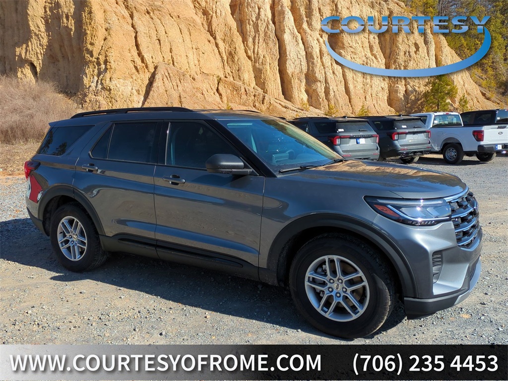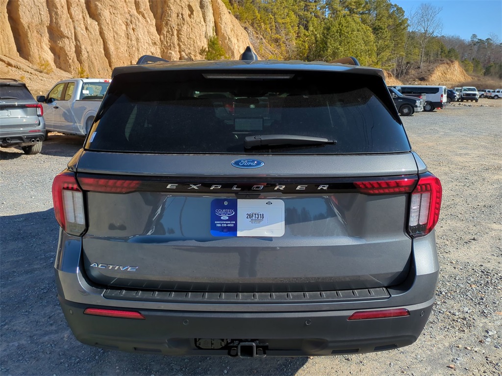 2026 Gray Metallic 2026 Ford Explorer Active RWD 2.3L EcoBoost I-4 3rd row seats: bench, 4-Wheel Disc Brakes, 6 Speakers, ABS brakes, Air Conditioning, Alloy wheels, AM/FM radio: SiriusXM with 360L, AM/FM Stereo, Apple CarPlay/Android Auto, Auto High-beam Headlights, Automatic temperature control, Brake assist, Bumpers: body-color, Compass, Delay-off headlights, Driver door bin, Driver vanity mirror, Dual front impact airbags, Dual front side impact airbags, Electronic Stability Control, Emergency communication system: 911 Assist, Exterior Parking Camera Rear, Four wheel independent suspension, Front anti-roll bar, Front Bucket Seats, Front Center Armrest, Front dual zone A/C, Front reading lights, Fully automatic headlights, Heated door mirrors, Illuminated entry, Knee airbag, Low tire pressure warning, Navigation System, Occupant sensing airbag, Outside temperature display, Overhead airbag, Overhead console, Panic alarm, Passenger door bin, Passenger vanity mirror, Power door mirrors, Power driver seat, Power steering, Power windows, Rear air conditioning, Rear anti-roll bar, Rear reading lights, Rear window defroster, Rear window wiper, Remote keyless entry, Security system, Speed control, Speed-sensing steering, Speed-Sensitive Wipers, Split folding rear seat, Spoiler, Steering wheel mounted audio controls, Tachometer, Telescoping steering wheel, Tilt steering wheel, Traction control, Trip computer, Variably intermittent wipers, and Wheels: 18" Sparkle Silver-Painted Aluminum Courtesy Ford and Lincoln of Rome 101 Hwy 411 E Rome, Ga 30161 ROMEFORDLINC.COM 706.235.4453.