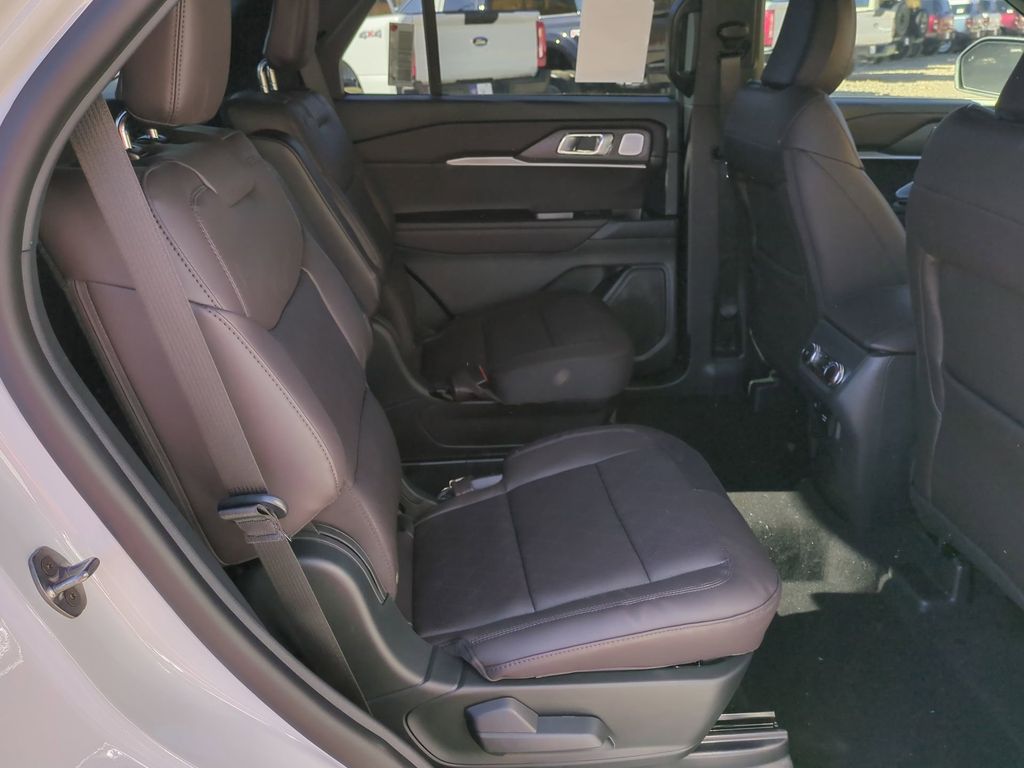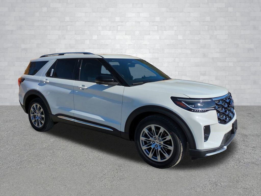 2026 Star White Metallic Tri-Coat 2026 Ford Explorer Platinum RWD 2.3L EcoBoost I-4 Equipment Group 600A Standard Package (ActiveX Trimmed Captain's Chairs, Radio: B&O Sound System by Bang & Olufsen with HD, and Wheels: 20" Luster Nickel-Painted Aluminum), Ford Connectivity Package (one-Time Purchase - 7 Years), 14 Speakers, 3rd row seats: bench, 4-Wheel Disc Brakes, ABS brakes, Air Conditioning, Alloy wheels, AM/FM radio: SiriusXM with 360L, Apple CarPlay/Android Auto, Auto High-beam Headlights, Auto-dimming door mirrors, Auto-dimming Rear-View mirror, Automatic temperature control, Brake assist, Bumpers: body-color, Compass, Delay-off headlights, Driver door bin, Driver vanity mirror, Dual front impact airbags, Dual front side impact airbags, Electronic Stability Control, Emergency communication system: 911 Assist, Exterior Parking Camera Rear, Four wheel independent suspension, Front anti-roll bar, Front Bucket Seats, Front Center Armrest, Front dual zone A/C, Front fog lights, Front License Plate Bracket, Front reading lights, Fully automatic headlights, Garage door transmitter, Heated door mirrors, Heated front seats, Heated rear seats, Heated steering wheel, Illuminated entry, Knee airbag, Leather steering wheel, Low tire pressure warning, Memory seat, Navigation System, Occupant sensing airbag, Outside temperature display, Overhead airbag, Overhead console, Panic alarm, Panoramic Fixed Glass Roof with Power Shade, Passenger door bin, Passenger vanity mirror, Power door mirrors, Power driver seat, Power Liftgate, Power passenger seat, Power steering, Power windows, Radio data system, Rain sensing wipers, Rear air conditioning, Rear anti-roll bar, Rear reading lights, Rear window defroster, Rear window wiper, Remote keyless entry, Security system, SiriusXM with 360L (3-Year Plan), Speed control, Speed-sensing steering, Speed-Sensitive Wipers, Split folding rear seat, Spoiler, Steering wheel mounted audio controls, Tachometer, Telescoping steering wheel, Tilt steering wheel, Traction control, Trip computer, Turn signal indicator mirrors, Variably intermittent wipers, and Ventilated front seats Courtesy Ford and Lincoln of Rome 101 Hwy 411 E Rome, Ga 30161 ROMEFORDLINC.COM 706.235.4453.