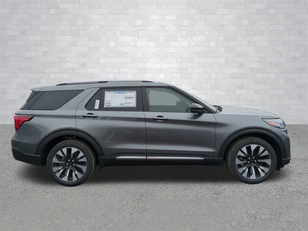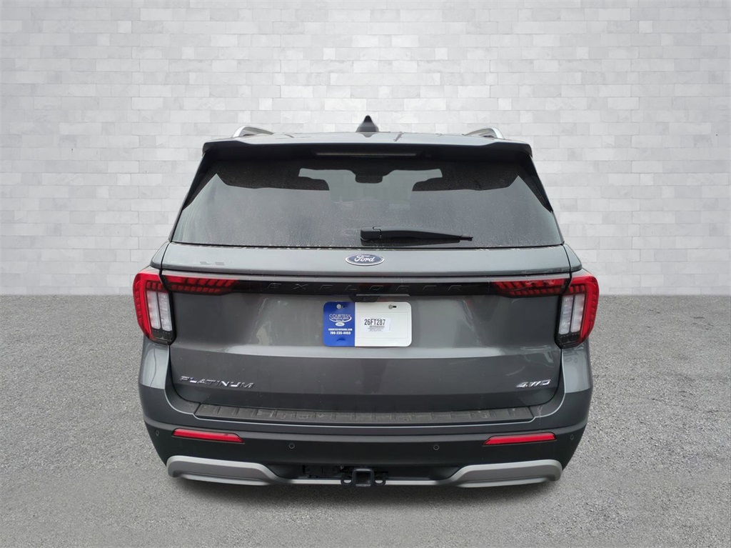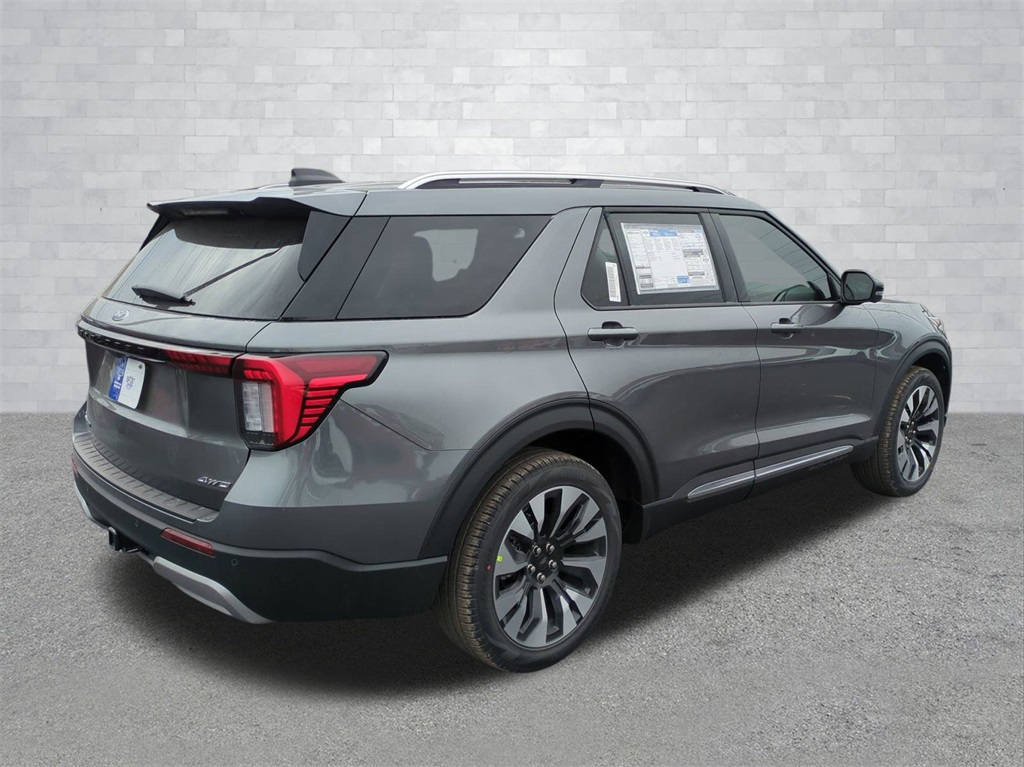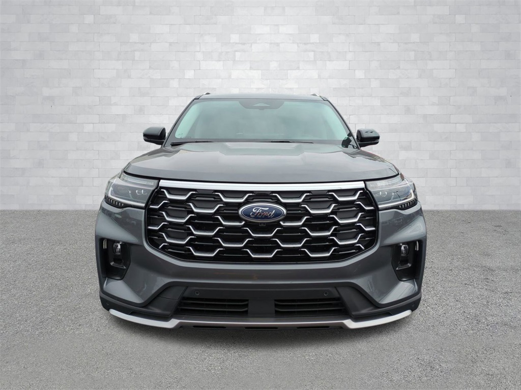 2026 Carbonized Gray Metallic 2026 Ford Explorer Platinum 4WD 2.3L EcoBoost I-4 4WD. 4WD, 14 Speakers, 3rd row seats: bench, 4-Wheel Disc Brakes, ABS brakes, ActiveX Trimmed Captain's Chairs, Air Conditioning, Alloy wheels, AM/FM radio: SiriusXM with 360L, Apple CarPlay/Android Auto, Auto High-beam Headlights, Auto-dimming door mirrors, Auto-dimming Rear-View mirror, Automatic temperature control, Brake assist, Bumpers: body-color, Compass, Delay-off headlights, Driver door bin, Driver vanity mirror, Dual front impact airbags, Dual front side impact airbags, Electronic Stability Control, Emergency communication system: 911 Assist, Exterior Parking Camera Rear, Four wheel independent suspension, Front anti-roll bar, Front Bucket Seats, Front Center Armrest, Front dual zone A/C, Front fog lights, Front reading lights, Fully automatic headlights, Garage door transmitter, Heated door mirrors, Heated front seats, Heated rear seats, Heated steering wheel, Illuminated entry, Knee airbag, Leather steering wheel, Low tire pressure warning, Memory seat, Navigation System, Occupant sensing airbag, Outside temperature display, Overhead airbag, Overhead console, Panic alarm, Passenger door bin, Passenger vanity mirror, Power door mirrors, Power driver seat, Power Liftgate, Power passenger seat, Power steering, Power windows, Radio data system, Radio: B&O Sound System by Bang & Olufsen with HD, Rain sensing wipers, Rear air conditioning, Rear anti-roll bar, Rear reading lights, Rear window defroster, Rear window wiper, Remote keyless entry, Security system, Speed control, Speed-sensing steering, Speed-Sensitive Wipers, Split folding rear seat, Spoiler, Steering wheel mounted audio controls, Tachometer, Telescoping steering wheel, Tilt steering wheel, Traction control, Trip computer, Turn signal indicator mirrors, Variably intermittent wipers, Ventilated front seats, and Wheels: 20" Luster Nickel-Painted Aluminum Courtesy Ford and Lincoln of Rome 101 Hwy 411 E Rome, Ga 30161 ROMEFORDLINC.COM 706.235.4453.