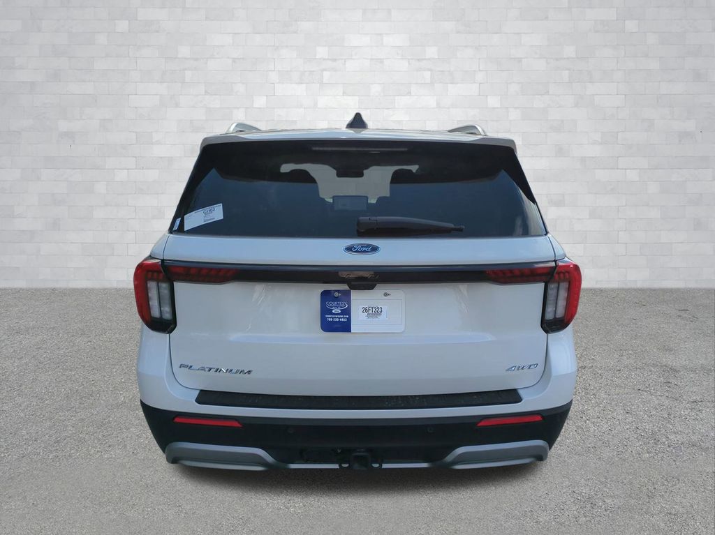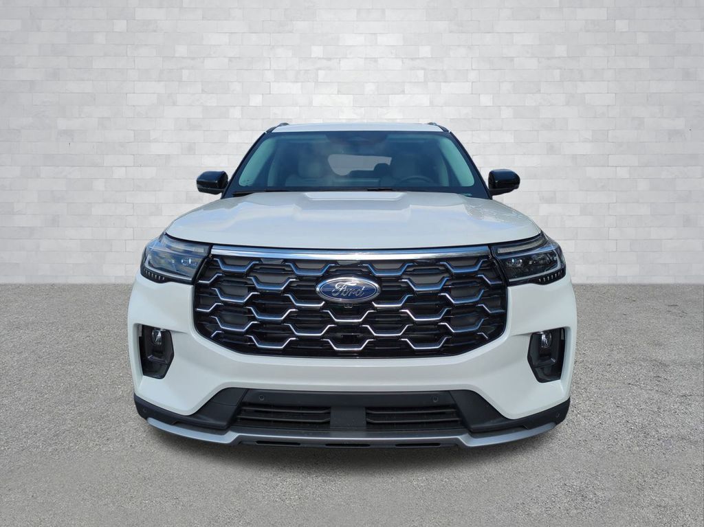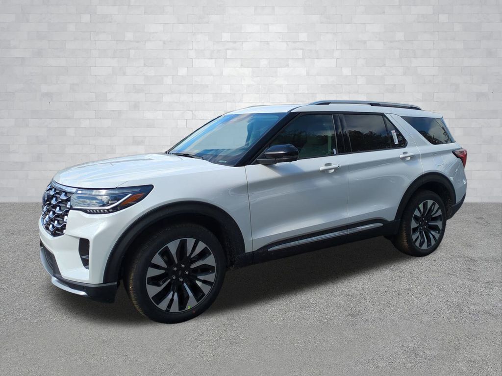 2026 Star White Metallic Tri-Coat 2026 Ford Explorer Platinum 4WD 2.3L EcoBoost I-4 4WD. 4WD, 14 Speakers, 3rd row seats: bench, 4-Wheel Disc Brakes, ABS brakes, ActiveX Trimmed Captain's Chairs, Air Conditioning, Alloy wheels, AM/FM radio: SiriusXM with 360L, Apple CarPlay/Android Auto, Auto High-beam Headlights, Auto-dimming door mirrors, Auto-dimming Rear-View mirror, Automatic temperature control, Brake assist, Bumpers: body-color, Compass, Delay-off headlights, Driver door bin, Driver vanity mirror, Dual front impact airbags, Dual front side impact airbags, Electronic Stability Control, Emergency communication system: 911 Assist, Exterior Parking Camera Rear, Four wheel independent suspension, Front anti-roll bar, Front Bucket Seats, Front Center Armrest, Front dual zone A/C, Front fog lights, Front reading lights, Fully automatic headlights, Garage door transmitter, Heated door mirrors, Heated front seats, Heated rear seats, Heated steering wheel, Illuminated entry, Knee airbag, Leather steering wheel, Low tire pressure warning, Memory seat, Navigation System, Occupant sensing airbag, Outside temperature display, Overhead airbag, Overhead console, Panic alarm, Passenger door bin, Passenger vanity mirror, Power door mirrors, Power driver seat, Power Liftgate, Power passenger seat, Power steering, Power windows, Radio data system, Radio: B&O Sound System by Bang & Olufsen with HD, Rain sensing wipers, Rear air conditioning, Rear anti-roll bar, Rear reading lights, Rear window defroster, Rear window wiper, Remote keyless entry, Security system, Speed control, Speed-sensing steering, Speed-Sensitive Wipers, Split folding rear seat, Spoiler, Steering wheel mounted audio controls, Tachometer, Telescoping steering wheel, Tilt steering wheel, Traction control, Trip computer, Turn signal indicator mirrors, Variably intermittent wipers, Ventilated front seats, and Wheels: 20" Luster Nickel-Painted Aluminum Courtesy Ford and Lincoln of Rome 101 Hwy 411 E Rome, Ga 30161 ROMEFORDLINC.COM 706.235.4453.