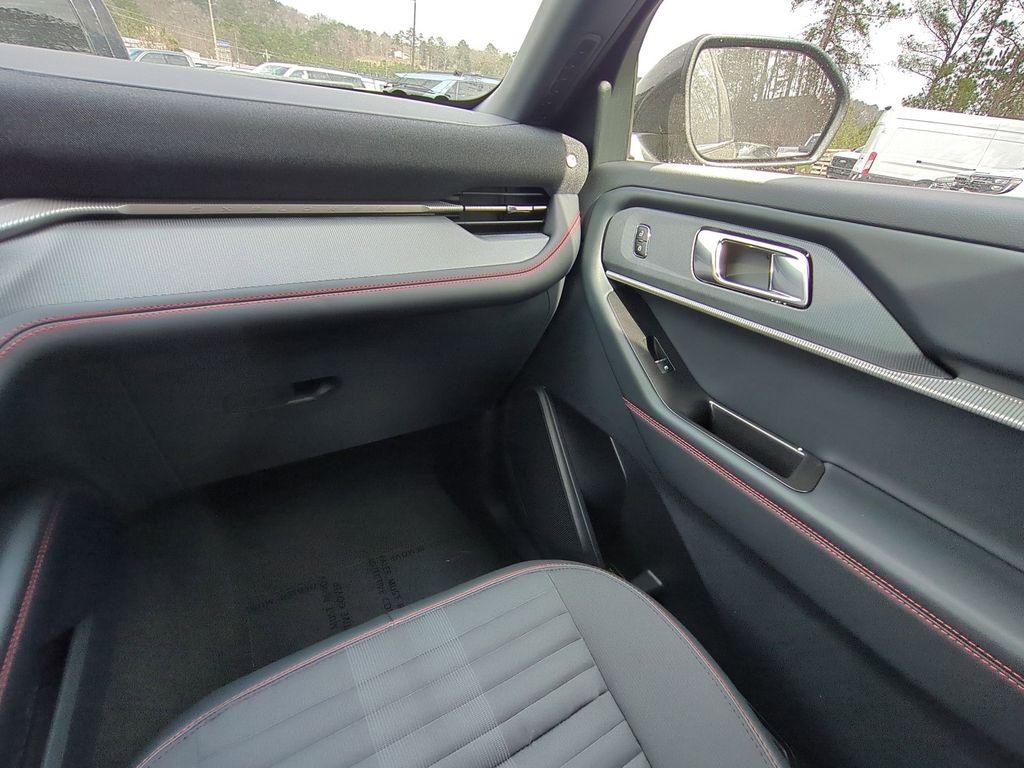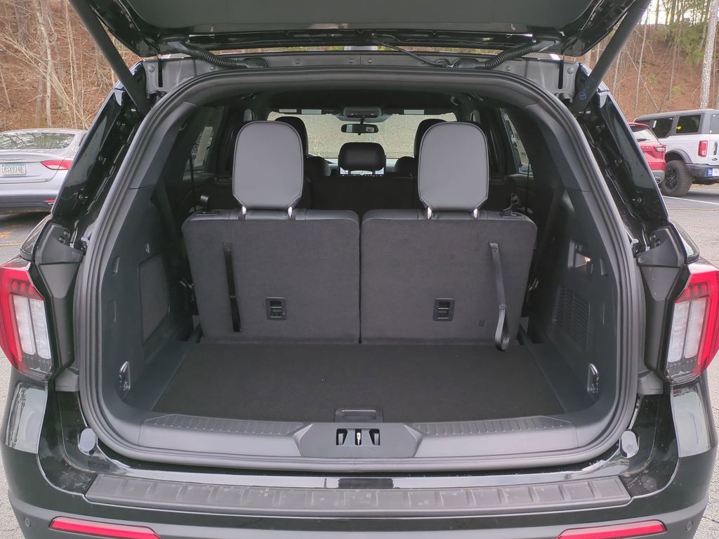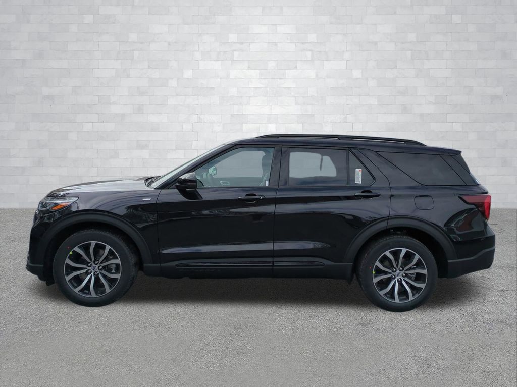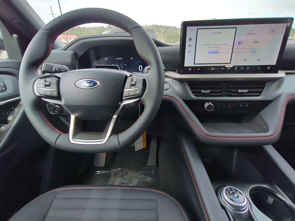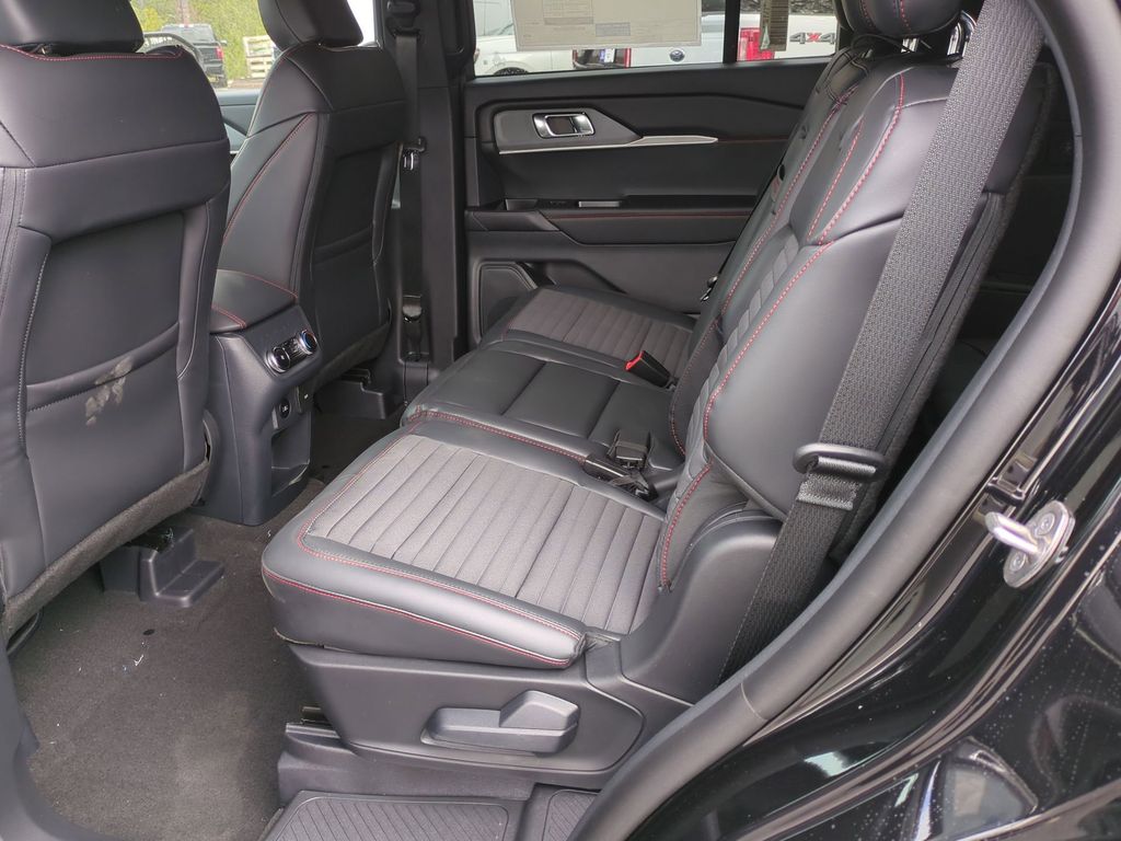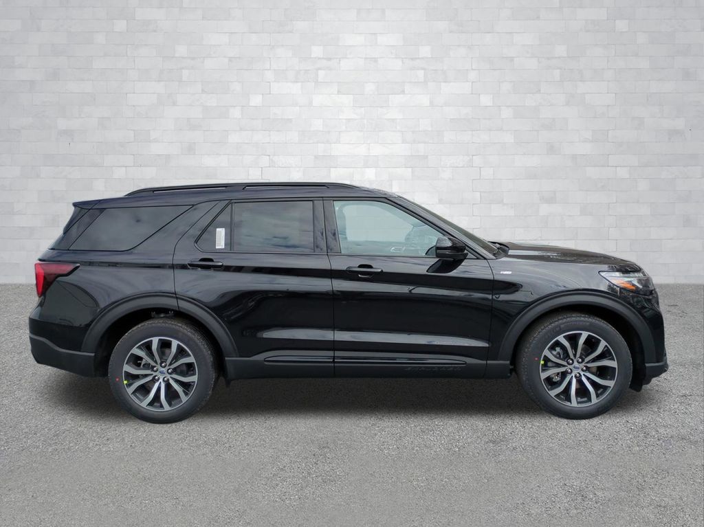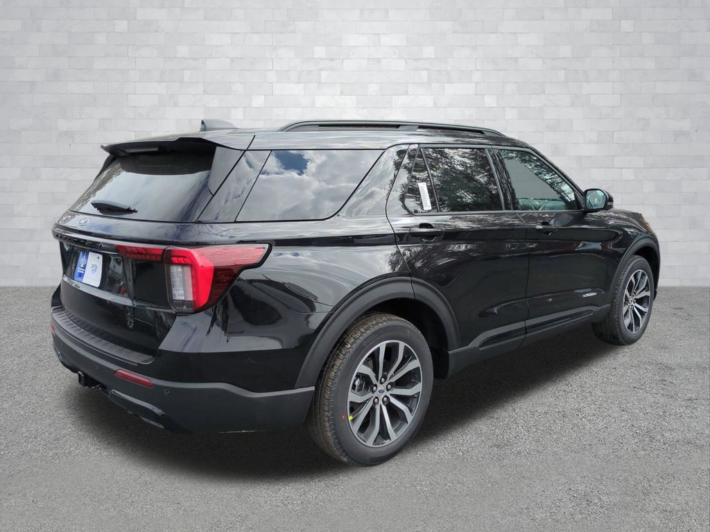 2026 Agate Black Metallic 2026 Ford Explorer ST-Line RWD 2.3L EcoBoost I-4 Equipment Group 300A Standard Package (Heated Unique Cloth Captain's Chairs, Radio: B&O Sound System by Bang and Olufsen, and Wheels: 20" Ebony-Painted Machined Aluminum), Ford Connectivity Package (one-Time Purchase - 7 Years), 10 Speakers, 3rd row seats: bench, 4-Wheel Disc Brakes, ABS brakes, Air Conditioning, Alloy wheels, AM/FM radio: SiriusXM with 360L, Apple CarPlay/Android Auto, Auto High-beam Headlights, Automatic temperature control, BlueCruise (equipment + 1-Year + 90-Day Plan), BlueCruise Hardware, Brake assist, Bumpers: body-color, Compass, Delay-off headlights, Driver door bin, Driver vanity mirror, Dual front impact airbags, Dual front side impact airbags, Electronic Stability Control, Emergency communication system: 911 Assist, Exterior Parking Camera Rear, Four wheel independent suspension, Front anti-roll bar, Front Bucket Seats, Front Center Armrest, Front dual zone A/C, Front fog lights, Front reading lights, Fully automatic headlights, Garage door transmitter, Heated door mirrors, Heated front seats, Heated steering wheel, Illuminated entry, Knee airbag, Leather steering wheel, Low tire pressure warning, Navigation System, Occupant sensing airbag, Outside temperature display, Overhead airbag, Overhead console, Panic alarm, Passenger door bin, Passenger vanity mirror, Power door mirrors, Power driver seat, Power Liftgate, Power passenger seat, Power steering, Power windows, Rear air conditioning, Rear anti-roll bar, Rear reading lights, Rear window defroster, Rear window wiper, Remote keyless entry, Security system, Speed control, Speed-sensing steering, Speed-Sensitive Wipers, Split folding rear seat, Spoiler, Steering wheel mounted audio controls, Tachometer, Telescoping steering wheel, Tilt steering wheel, Traction control, Trip computer, and Variably intermittent wipers Courtesy Ford and Lincoln of Rome 101 Hwy 411 E Rome, Ga 30161 ROMEFORDLINC.COM 706.235.4453.
