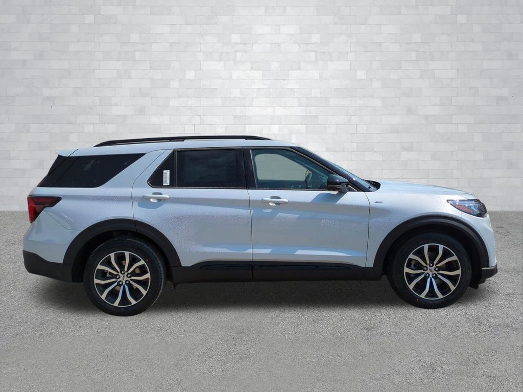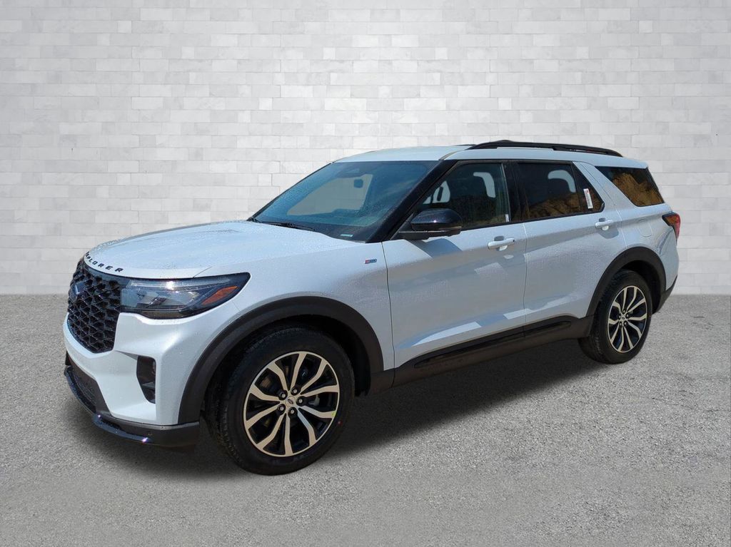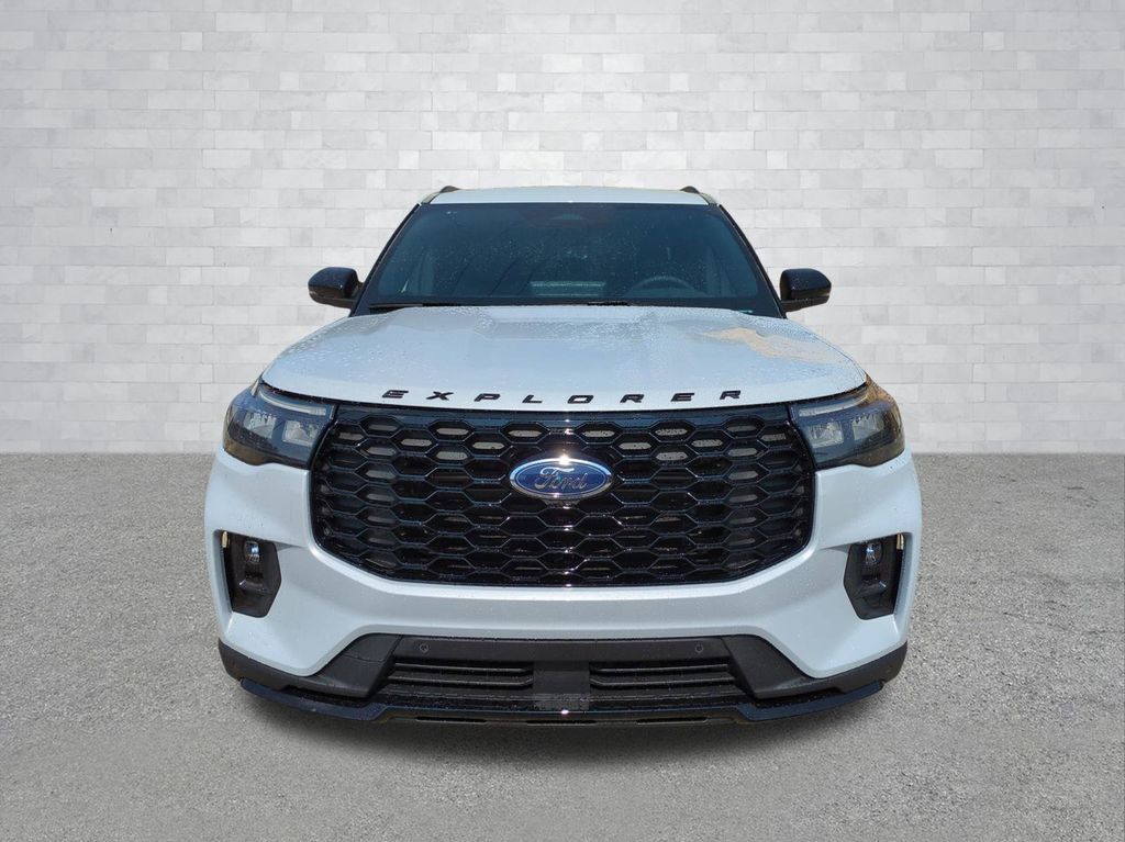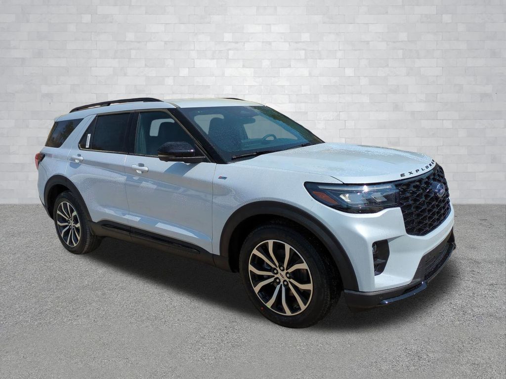 2026 Space White Metallic 2026 Ford Explorer ST-Line RWD 2.3L EcoBoost I-4 10 Speakers, 3rd row seats: bench, 4-Wheel Disc Brakes, ABS brakes, Air Conditioning, Alloy wheels, AM/FM radio: SiriusXM with 360L, Apple CarPlay/Android Auto, Auto High-beam Headlights, Automatic temperature control, Brake assist, Bumpers: body-color, Compass, Delay-off headlights, Driver door bin, Driver vanity mirror, Dual front impact airbags, Dual front side impact airbags, Electronic Stability Control, Emergency communication system: 911 Assist, Exterior Parking Camera Rear, Four wheel independent suspension, Front anti-roll bar, Front Bucket Seats, Front Center Armrest, Front dual zone A/C, Front fog lights, Front reading lights, Fully automatic headlights, Garage door transmitter, Heated door mirrors, Heated front seats, Heated steering wheel, Heated Unique Cloth Captain's Chairs, Illuminated entry, Knee airbag, Leather steering wheel, Low tire pressure warning, Navigation System, Occupant sensing airbag, Outside temperature display, Overhead airbag, Overhead console, Panic alarm, Passenger door bin, Passenger vanity mirror, Power door mirrors, Power driver seat, Power Liftgate, Power passenger seat, Power steering, Power windows, Radio: B&O Sound System by Bang and Olufsen, Rear air conditioning, Rear anti-roll bar, Rear reading lights, Rear window defroster, Rear window wiper, Remote keyless entry, Security system, Speed control, Speed-sensing steering, Speed-Sensitive Wipers, Split folding rear seat, Spoiler, Steering wheel mounted audio controls, Tachometer, Telescoping steering wheel, Tilt steering wheel, Traction control, Trip computer, Variably intermittent wipers, and Wheels: 20" Ebony-Painted Machined Aluminum Courtesy Ford and Lincoln of Rome 101 Hwy 411 E Rome, Ga 30161 ROMEFORDLINC.COM 706.235.4453.