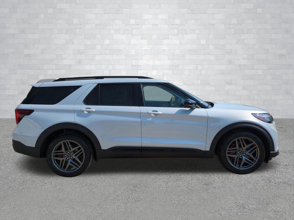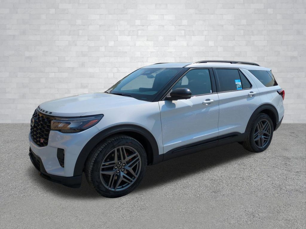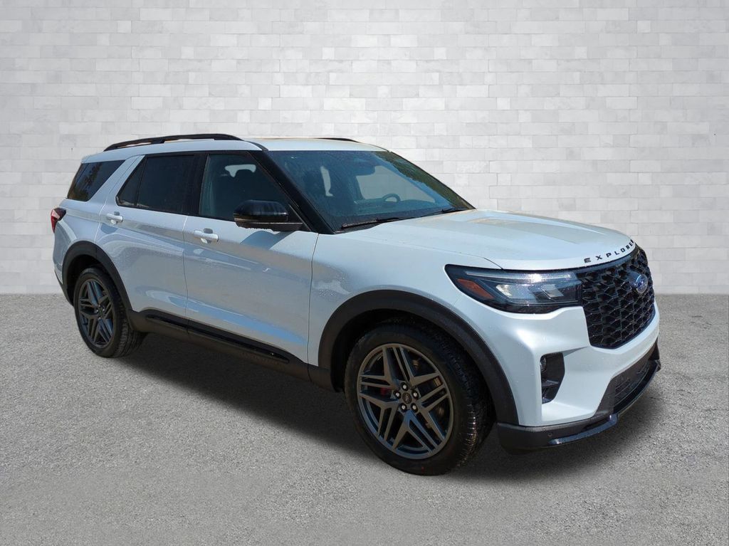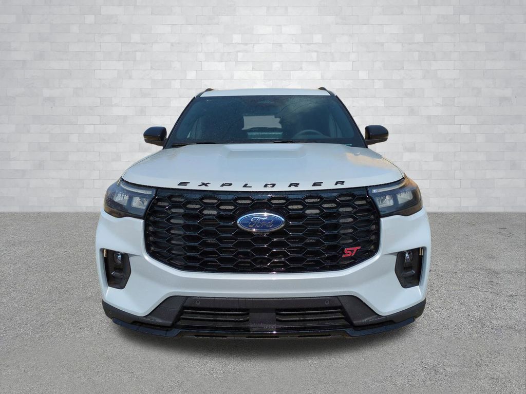 2026 Space White Metallic 2026 Ford Explorer ST 4WD 3.0L EcoBoost V6 4WD. Equipment Group 400A Standard Package (Heated/Ventilated Miko Suede Captain's Chairs, Radio: B&O Sound System by Bang and Olufsen, and Wheels: 21" Magnetite-Painted Aluminum), Sun and Sound Package (Multicontour Seats with Front Active Motion, Panoramic Fixed Glass Roof with Power Shade, Radio: B&O Sound System by Bang & Olufsen, and Remote Control Front Windows), 4WD, 10 Speakers, 3rd row seats: bench, 4-Wheel Disc Brakes, ABS brakes, Air Conditioning, Alloy wheels, AM/FM radio: SiriusXM with 360L, Apple CarPlay/Android Auto, Auto High-beam Headlights, Auto-dimming door mirrors, Auto-dimming Rear-View mirror, Automatic temperature control, BlueCruise Equipped (1-Year + 90-Day Plan), Brake assist, Bumpers: body-color, Compass, Delay-off headlights, Driver door bin, Driver vanity mirror, Dual front impact airbags, Dual front side impact airbags, Electronic Stability Control, Emergency communication system: 911 Assist, Exterior Parking Camera Rear, Four wheel independent suspension, Front anti-roll bar, Front Bucket Seats, Front Center Armrest, Front dual zone A/C, Front fog lights, Front reading lights, Fully automatic headlights, Garage door transmitter, Heated door mirrors, Heated front seats, Heated rear seats, Heated steering wheel, Illuminated entry, Knee airbag, Leather steering wheel, Low tire pressure warning, Memory seat, Navigation System, Occupant sensing airbag, Outside temperature display, Overhead airbag, Overhead console, Panic alarm, Passenger door bin, Passenger vanity mirror, Power door mirrors, Power driver seat, Power Liftgate, Power passenger seat, Power steering, Power windows, Rain sensing wipers, Rear air conditioning, Rear anti-roll bar, Rear reading lights, Rear window defroster, Rear window wiper, Remote keyless entry, SecuriCode Keyless Entry Keypad, Security system, Speed control, Speed-sensing steering, Speed-Sensitive Wipers, Split folding rear seat, Spoiler, Sport steering wheel, Steering wheel mounted audio controls, Tachometer, Telescoping steering wheel, Tilt steering wheel, Traction control, Trip computer, Turn signal indicator mirrors, Variably intermittent wipers, and Ventilated front seats Courtesy Ford and Lincoln of Rome 101 Hwy 411 E Rome, Ga 30161 ROMEFORDLINC.COM 706.235.4453.