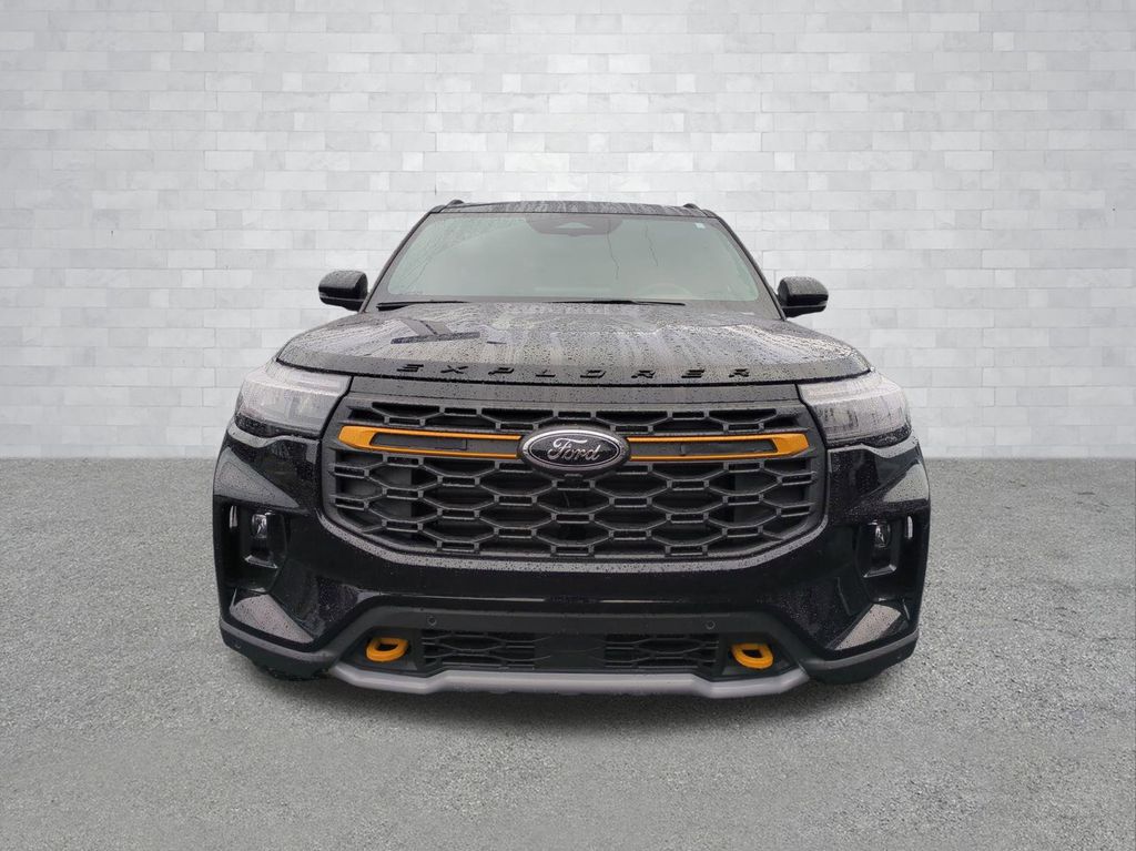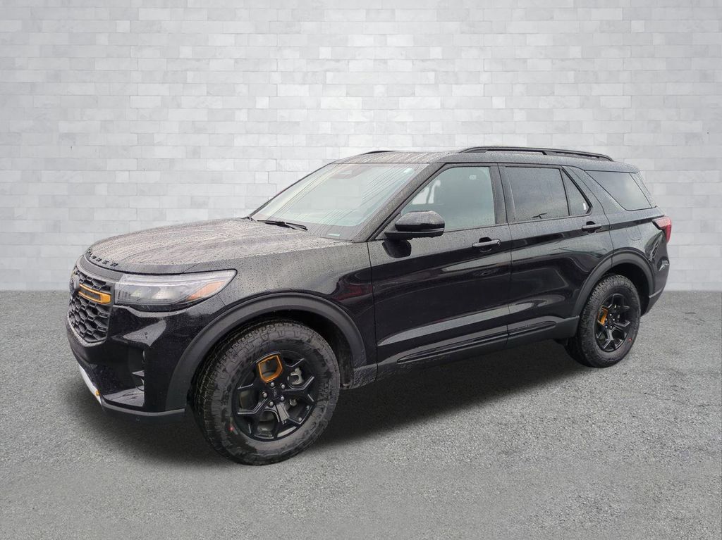 2026 Black Metallic 2026 Ford Explorer Tremor 4WD 3.0L EcoBoost V6 4D Sport Utility, 4WD. 4D Sport Utility, 4WD, 10 Speakers, 3rd row seats: bench, 4-Wheel Disc Brakes, ABS brakes, Air Conditioning, Alloy wheels, AM/FM radio: SiriusXM with 360L, Apple CarPlay/Android Auto, Auto High-beam Headlights, Automatic temperature control, Brake assist, Bumpers: body-color, Compass, Delay-off headlights, Driver door bin, Driver vanity mirror, Dual front impact airbags, Dual front side impact airbags, Electronic Stability Control, Emergency communication system: 911 Assist, Exterior Parking Camera Rear, Four wheel independent suspension, Front anti-roll bar, Front Bucket Seats, Front Center Armrest, Front dual zone A/C, Front fog lights, Front reading lights, Fully automatic headlights, Heated door mirrors, Heated front seats, Heated rear seats, Heated steering wheel, Illuminated entry, Knee airbag, Leather steering wheel, Low tire pressure warning, Navigation System, Occupant sensing airbag, Outside temperature display, Overhead airbag, Overhead console, Panic alarm, Passenger door bin, Passenger vanity mirror, Power door mirrors, Power driver seat, Power Liftgate, Power passenger seat, Power steering, Power windows, Radio: B&O Sound System by Bang and Olufsen, Rear air conditioning, Rear anti-roll bar, Rear reading lights, Rear window defroster, Rear window wiper, Remote keyless entry, Security system, Speed control, Speed-sensing steering, Speed-Sensitive Wipers, Split folding rear seat, Spoiler, Sport steering wheel, Steering wheel mounted audio controls, Tachometer, Telescoping steering wheel, Tilt steering wheel, Traction control, Trip computer, Variably intermittent wipers, Ventilated front seats, and Wheels: 18" High Gloss Black-Painted Aluminum Courtesy Ford and Lincoln of Rome 101 Hwy 411 E Rome, Ga 30161 ROMEFORDLINC.COM 706.235.4453.