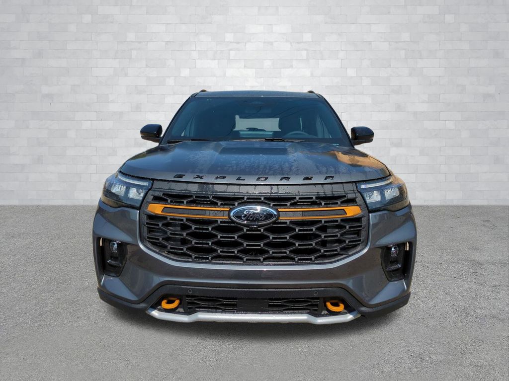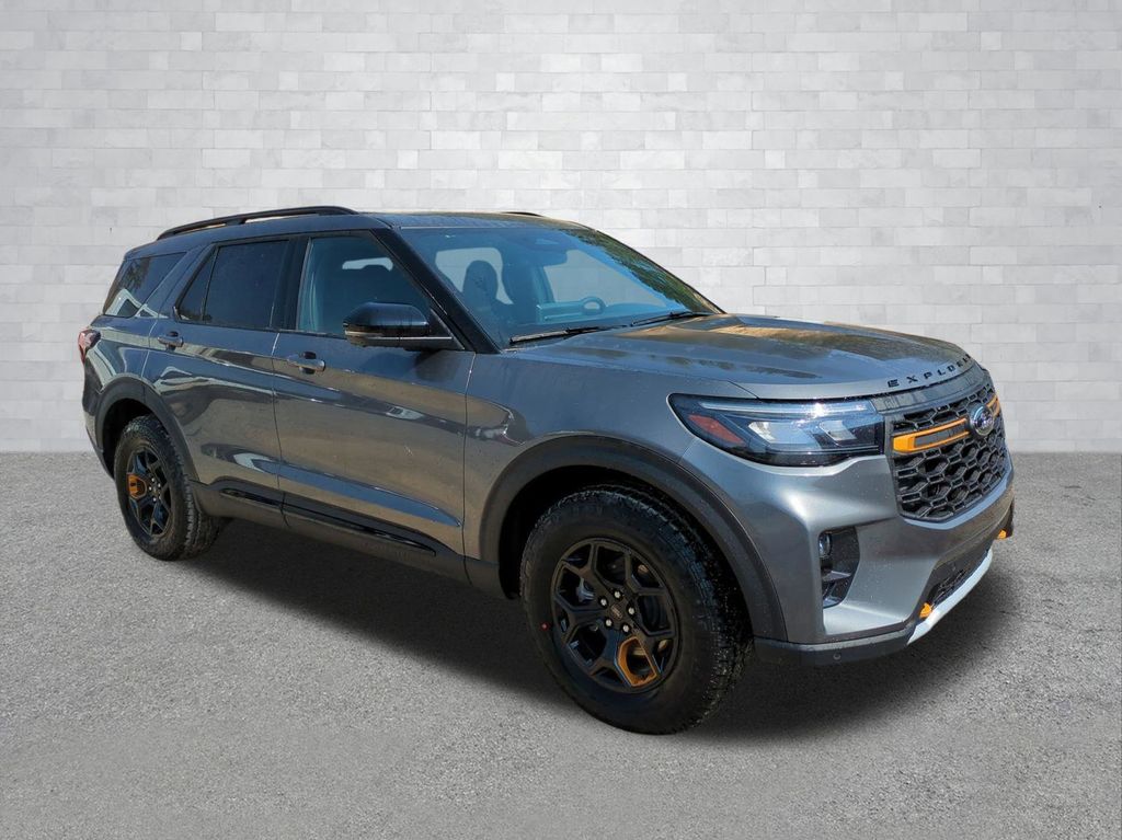2026 Carbonized Gray Metallic 2026 Ford Explorer Tremor 4WD 3.0L EcoBoost V6 4WD. Equipment Group 800A Standard Package (Heated/Ventilated Miko Suede Captain's Chairs, Radio: B&O Sound System by Bang and Olufsen, and Wheels: 18" High Gloss Black-Painted Aluminum), Tremor Ultimate Package (3rd Row PowerFold Seats, Ambient Lighting, Memory Driver's Seat, Multicontour Seats with Front Active Motion, Panoramic Fixed Glass Roof with Power Shade, Power-Folding with Autofold Side Mirrors, Radio: B&O Sound System by Bang & Olufsen, and Rain-Sensing Wipers (front Only)), 4WD, 10 Speakers, 3rd row seats: bench, 4-Wheel Disc Brakes, ABS brakes, Air Conditioning, Alloy wheels, AM/FM radio: SiriusXM with 360L, Apple CarPlay/Android Auto, Auto High-beam Headlights, Automatic temperature control, BlueCruise (equipment + 1-Year + 90-Day Plan), BlueCruise Hardware, Brake assist, Bumpers: body-color, Compass, Delay-off headlights, Driver door bin, Driver vanity mirror, Dual front impact airbags, Dual front side impact airbags, Electronic Stability Control, Emergency communication system: 911 Assist, Exterior Parking Camera Rear, Four wheel independent suspension, Front anti-roll bar, Front Bucket Seats, Front Center Armrest, Front dual zone A/C, Front fog lights, Front reading lights, Fully automatic headlights, Garage door transmitter, Heated door mirrors, Heated front seats, Heated rear seats, Heated steering wheel, Illuminated entry, Knee airbag, Leather steering wheel, Low tire pressure warning, Navigation System, Occupant sensing airbag, Outside temperature display, Overhead airbag, Overhead console, Panic alarm, Passenger door bin, Passenger vanity mirror, Power door mirrors, Power driver seat, Power Liftgate, Power passenger seat, Power steering, Power windows, Rear air conditioning, Rear anti-roll bar, Rear reading lights, Rear window defroster, Rear window wiper, Remote keyless entry, SecuriCode Keyless Entry Keypad, Security system, Speed control, Speed-sensing steering, Speed-Sensitive Wipers, Split folding rear seat, Spoiler, Sport steering wheel, Steering wheel mounted audio controls, Tachometer, Telescoping steering wheel, Tilt steering wheel, Traction control, Trip computer, Variably intermittent wipers, and Ventilated front seats Courtesy Ford and Lincoln of Rome 101 Hwy 411 E Rome, Ga 30161 ROMEFORDLINC.COM 706.235.4453.