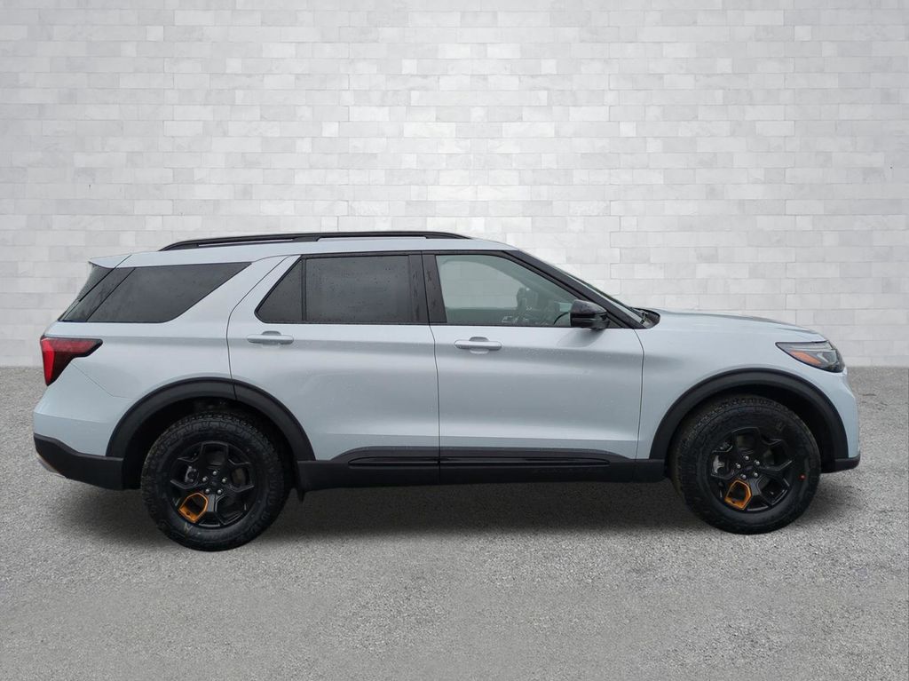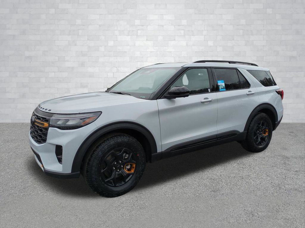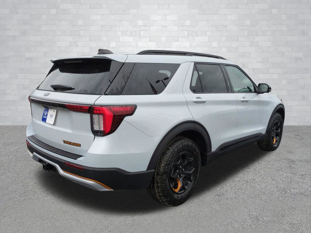 2026 Space White Metallic 2026 Ford Explorer Tremor 4WD 3.0L EcoBoost V6 4WD. 4WD, 10 Speakers, 3rd row seats: bench, 4-Wheel Disc Brakes, ABS brakes, Air Conditioning, Alloy wheels, AM/FM radio: SiriusXM with 360L, Apple CarPlay/Android Auto, Auto High-beam Headlights, Automatic temperature control, Brake assist, Bumpers: body-color, Compass, Delay-off headlights, Driver door bin, Driver vanity mirror, Dual front impact airbags, Dual front side impact airbags, Electronic Stability Control, Emergency communication system: 911 Assist, Exterior Parking Camera Rear, Four wheel independent suspension, Front anti-roll bar, Front Bucket Seats, Front Center Armrest, Front dual zone A/C, Front fog lights, Front reading lights, Fully automatic headlights, Garage door transmitter, Heated door mirrors, Heated front seats, Heated rear seats, Heated steering wheel, Heated/Ventilated Miko Suede Captain's Chairs, Illuminated entry, Knee airbag, Leather steering wheel, Low tire pressure warning, Navigation System, Occupant sensing airbag, Outside temperature display, Overhead airbag, Overhead console, Panic alarm, Passenger door bin, Passenger vanity mirror, Power door mirrors, Power driver seat, Power Liftgate, Power passenger seat, Power steering, Power windows, Radio: B&O Sound System by Bang and Olufsen, Rear air conditioning, Rear anti-roll bar, Rear reading lights, Rear window defroster, Rear window wiper, Remote keyless entry, Security system, Speed control, Speed-sensing steering, Speed-Sensitive Wipers, Split folding rear seat, Spoiler, Sport steering wheel, Steering wheel mounted audio controls, Tachometer, Telescoping steering wheel, Tilt steering wheel, Traction control, Trip computer, Variably intermittent wipers, Ventilated front seats, and Wheels: 18" High Gloss Black-Painted Aluminum Courtesy Ford and Lincoln of Rome 101 Hwy 411 E Rome, Ga 30161 ROMEFORDLINC.COM 706.235.4453.