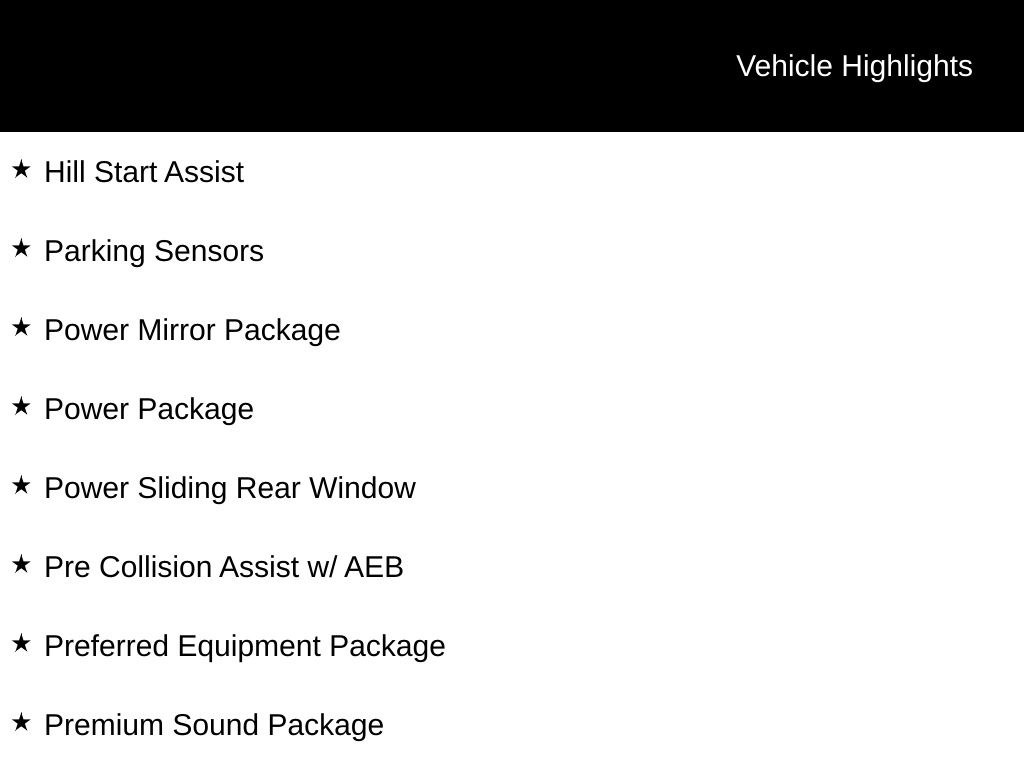 - Pre Collision Assist w/ AEB
