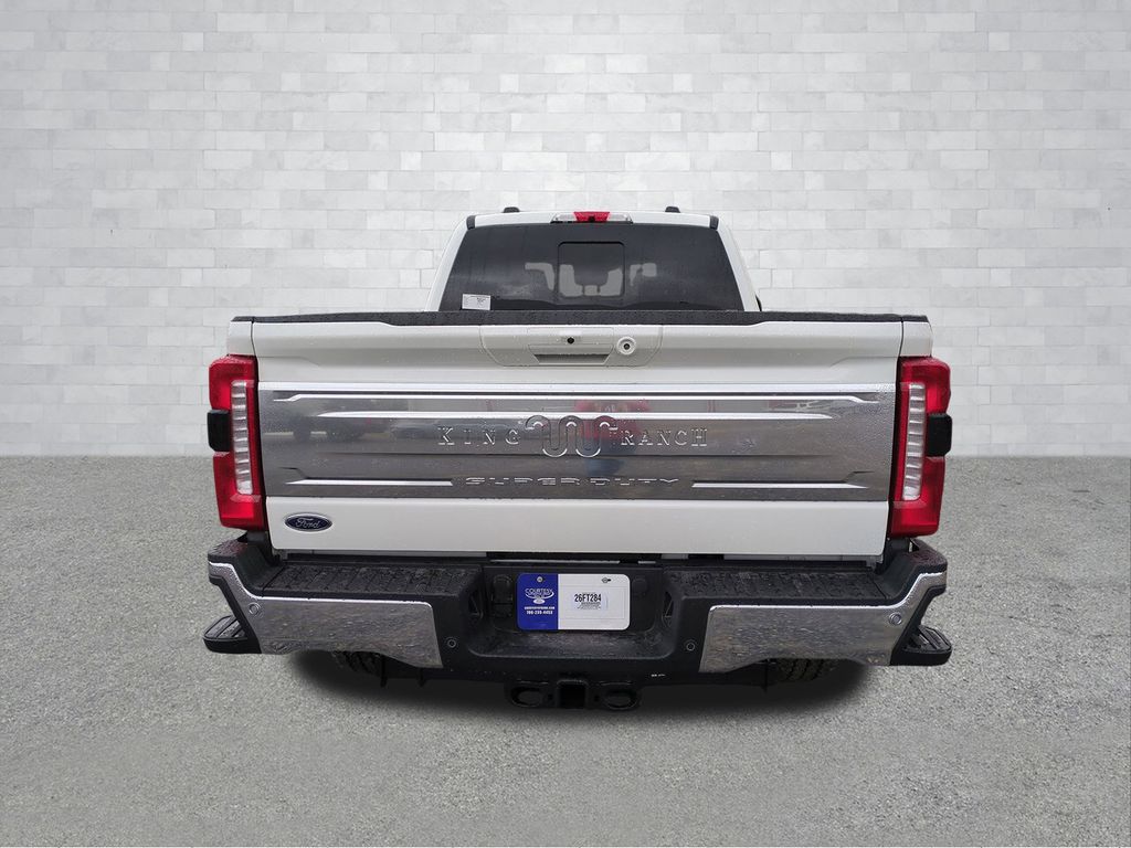 2026 Star White Metallic Tri-Coat 2026 Ford F-350SD King Ranch 4WD 6.7L High Output Power Stroke V8 Diesel 4WD, ABS brakes, Alloy wheels, Compass, Electronic Stability Control, Front dual zone A/C, Heated door mirrors, Heated front seats, Heated rear seats, Illuminated entry, Low tire pressure warning, Remote keyless entry, Traction control. Ford Connectivity Package (1-Year Included), Internet access capable: 5G Modem - Ford Connectivity Package, 4WD, ABS brakes, Alloy wheels, Compass, Electronic Stability Control, Front dual zone A/C, Heated door mirrors, Heated front seats, Heated rear seats, Illuminated entry, Low tire pressure warning, Remote keyless entry, Traction control, 14 Speakers, 4-Wheel Disc Brakes, Adjustable pedals, Air Conditioning, AM/FM radio: SiriusXM with 360L, Auto High-beam Headlights, Auto tilt-away steering wheel, Auto-dimming Rear-View mirror, Automatic temperature control, Brake assist, Delay-off headlights, Driver door bin, Driver vanity mirror, Dual front impact airbags, Dual front side impact airbags, Emergency communication system: SYNC 4 911 Assist, Flow-Through Console, Front anti-roll bar, Front Bucket Seats, Front Center Armrest, Front fog lights, Front reading lights, Fully automatic headlights, Garage door transmitter, Heads-Up Display, Heated steering wheel, Leather steering wheel, Memory seat, Navigation system: Connected Navigation, Outside temperature display, Overhead airbag, Overhead console, Panic alarm, Passenger door bin, Passenger vanity mirror, Pedal memory, Power door mirrors, Power driver seat, Power passenger seat, Power steering, Power windows, Radio: B&O Unleashed Sound System by Bang & Olufsen, Rain sensing wipers, Rear reading lights, Rear seat center armrest, Rear step bumper, Rear window defroster, Security system, Speed control, Split folding rear seat, Steering wheel memory, Steering wheel mounted A/C controls, Steering wheel mounted audio controls, Tachometer, Telescoping steering wheel, Tilt steering wheel, Trip computer, Turn signal indicator mirrors, Unique King Ranch Leather 40/Console/40 Seats, Variably intermittent wipers, Ventilated front seats, and Wheels: 20" Bright Machined Aluminum Courtesy Ford and Lincoln of Rome 101 Hwy 411 E Rome, Ga 30161 ROMEFORDLINC.COM 706.235.4453.