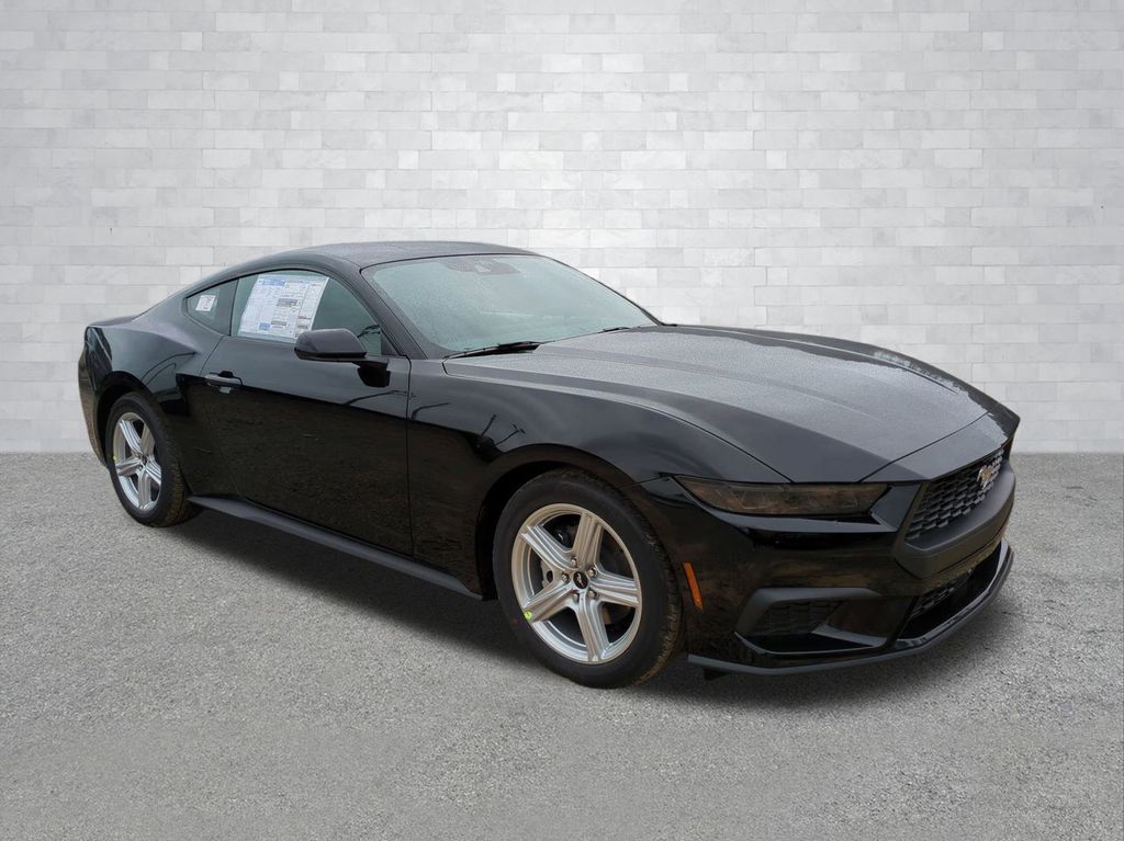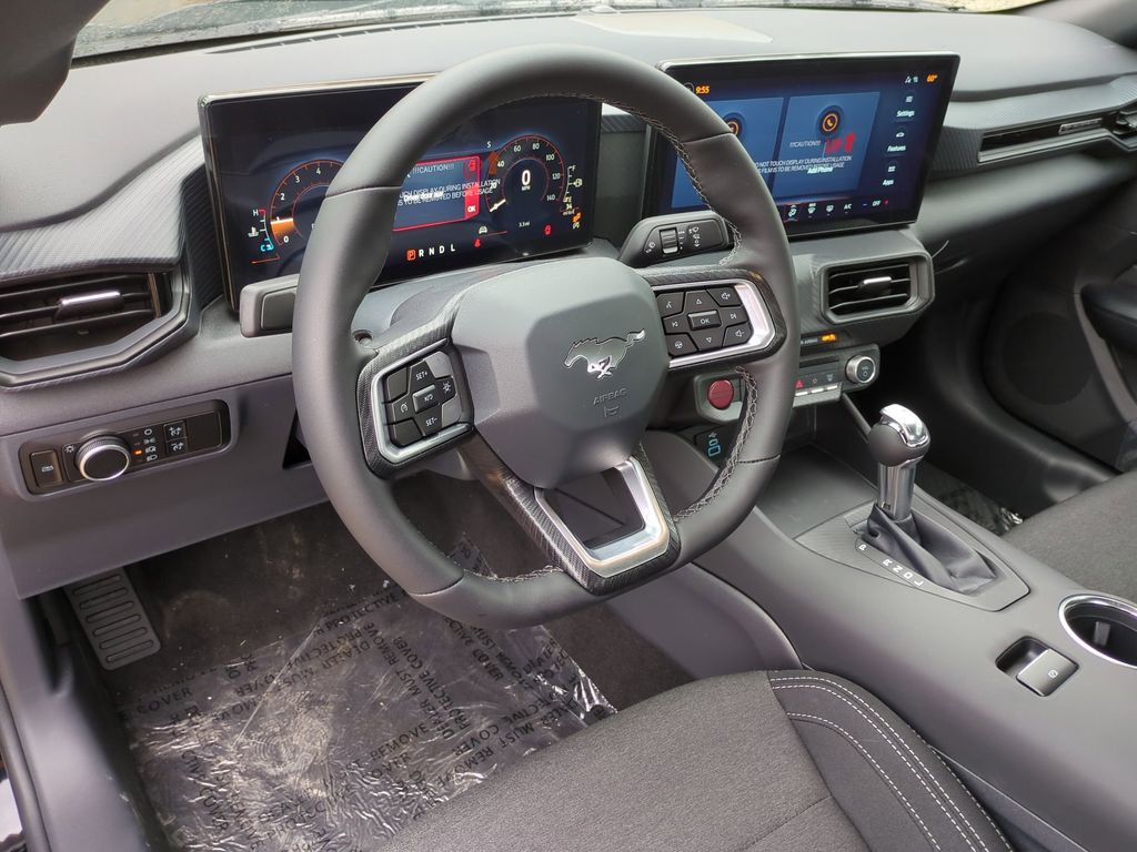 2026 Shadow Black 2026 Ford Mustang EcoBoost RWD EcoBoost 2.3L I4 GTDi DOHC Turbocharged VCT ABS brakes, Alloy wheels, Compass, Electronic Stability Control, Front dual zone A/C, Illuminated entry, Low tire pressure warning, Remote keyless entry, Traction control. ABS brakes, Alloy wheels, Compass, Electronic Stability Control, Front dual zone A/C, Illuminated entry, Low tire pressure warning, Remote keyless entry, Traction control, 4-Wheel Disc Brakes, 6 Speakers, Air Conditioning, AM/FM radio, AM/FM Stereo, Auto High-beam Headlights, Automatic temperature control, Brake assist, Bumpers: body-color, Cloth Bucket Seats, Delay-off headlights, Driver door bin, Driver vanity mirror, Dual front impact airbags, Dual front side impact airbags, Emergency communication system: 911 Assist, Exterior Parking Camera Rear, Four wheel independent suspension, Front anti-roll bar, Front Bucket Seats, Front Center Armrest, Front reading lights, Fully automatic headlights, Knee airbag, Leather Shift Knob, Occupant sensing airbag, Outside temperature display, Overhead airbag, Overhead console, Panic alarm, Passenger door bin, Passenger vanity mirror, Power door mirrors, Power steering, Power windows, Radio data system, Rain sensing wipers, Rear anti-roll bar, Rear Parking Sensors, Rear window defroster, Speed control, Speed-sensing steering, Speed-Sensitive Wipers, Split folding rear seat, Sport steering wheel, Steering wheel mounted audio controls, SYNC 4, Tachometer, Telescoping steering wheel, Tilt steering wheel, Trip computer, Variably intermittent wipers, and Voltmeter Courtesy Ford and Lincoln of Rome 101 Hwy 411 E Rome, Ga 30161 ROMEFORDLINC.COM 706.235.4453.
