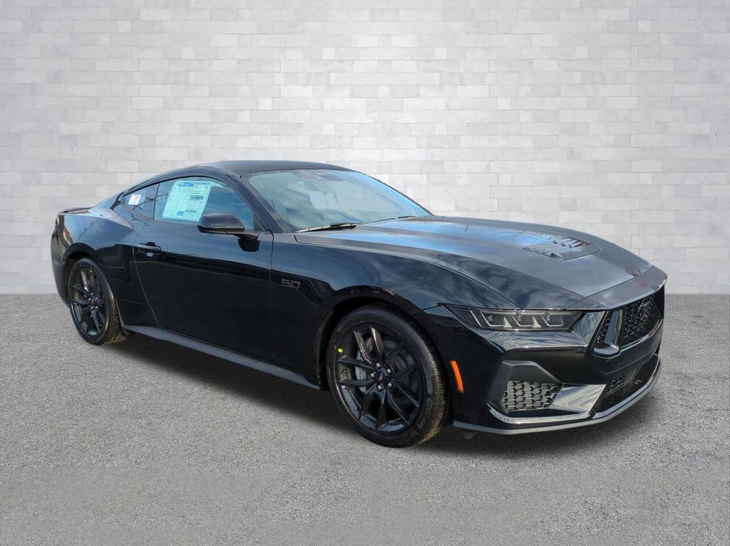 2026 Shadow Black 2026 Ford Mustang GT RWD 5.0L V8 Ti-VCT ABS brakes, Alloy wheels, Compass, Electronic Stability Control, Front dual zone A/C, Illuminated entry, Low tire pressure warning, Remote keyless entry, Traction control. ABS brakes, Alloy wheels, Compass, Electronic Stability Control, Front dual zone A/C, Illuminated entry, Low tire pressure warning, Remote keyless entry, Traction control, 4-Wheel Disc Brakes, 6 Speakers, Air Conditioning, AM/FM radio, AM/FM Stereo, Auto High-beam Headlights, Automatic temperature control, Brake assist, Bumpers: body-color, Cloth Bucket Seats, Delay-off headlights, Driver door bin, Driver vanity mirror, Dual front impact airbags, Dual front side impact airbags, Emergency communication system: 911 Assist, Exterior Parking Camera Rear, Four wheel independent suspension, Front anti-roll bar, Front Bucket Seats, Front Center Armrest, Front reading lights, Fully automatic headlights, Knee airbag, Leather Shift Knob, Leather steering wheel, Occupant sensing airbag, Outside temperature display, Overhead airbag, Overhead console, Panic alarm, Passenger door bin, Passenger vanity mirror, Power door mirrors, Power steering, Power windows, Radio data system, Rain sensing wipers, Rear anti-roll bar, Rear Parking Sensors, Rear window defroster, Speed control, Speed-sensing steering, Speed-Sensitive Wipers, Split folding rear seat, Sport steering wheel, Steering wheel mounted audio controls, SYNC 4, Tachometer, Telescoping steering wheel, Tilt steering wheel, Trip computer, Variably intermittent wipers, Voltmeter, and Wheels: 8" x 8.5" Ebony Black Painted Aluminum Courtesy Ford and Lincoln of Rome 101 Hwy 411 E Rome, Ga 30161 ROMEFORDLINC.COM 706.235.4453.